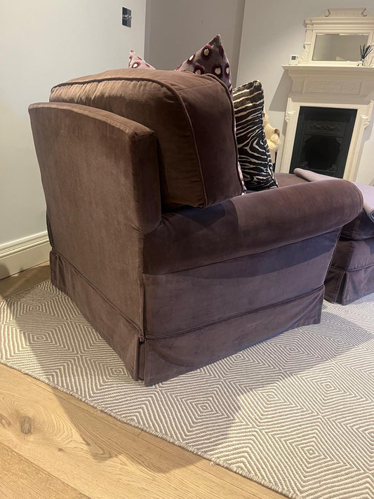 VELVET CHAIR AND FOOTSTOOL