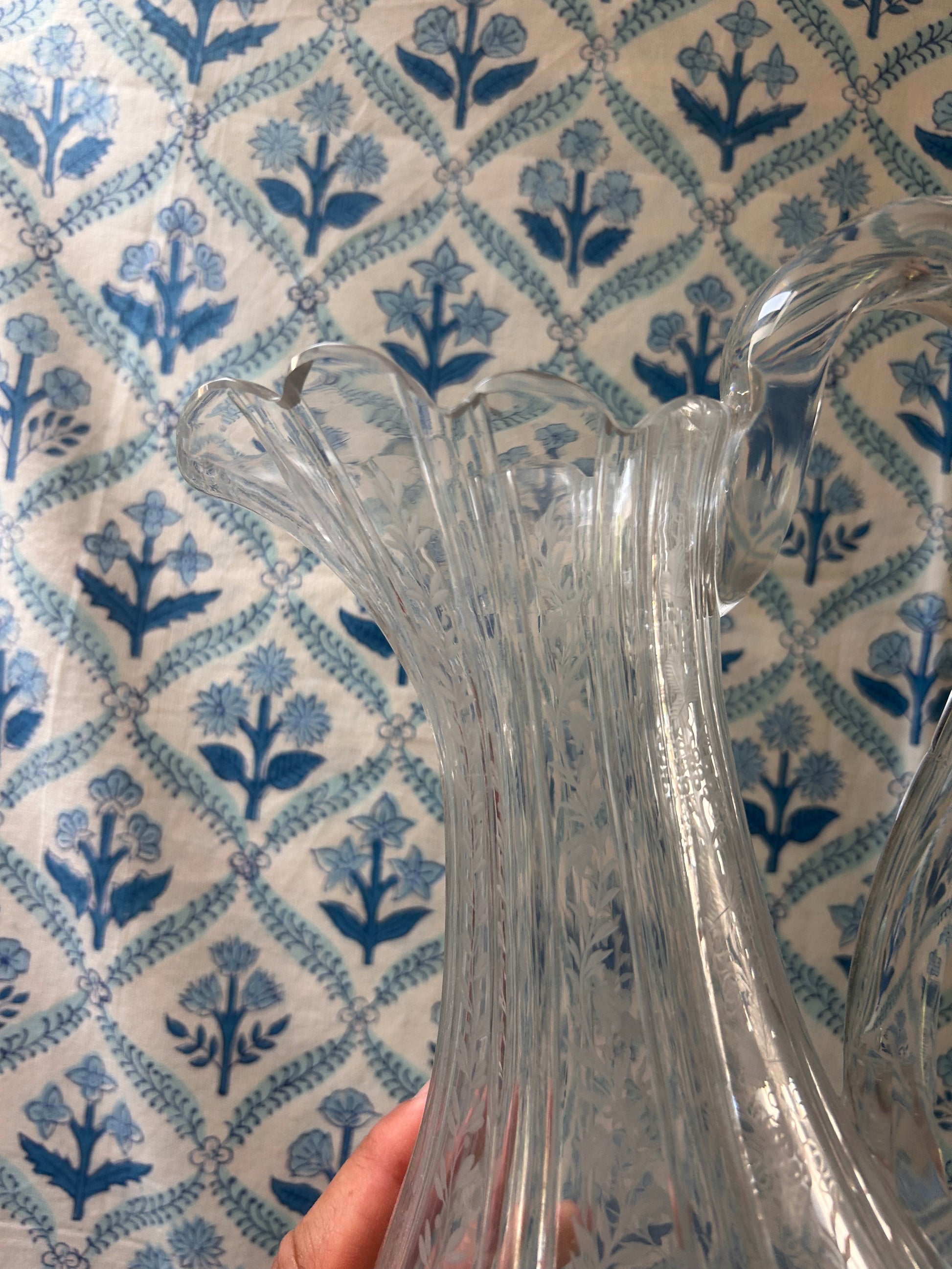 This beautiful antique jug is a real stunner and in perfect condition. It is engraved all over the height is 33 cm tall fabulous for water or red wine even. It’s an absolutely beautiful piece of art.