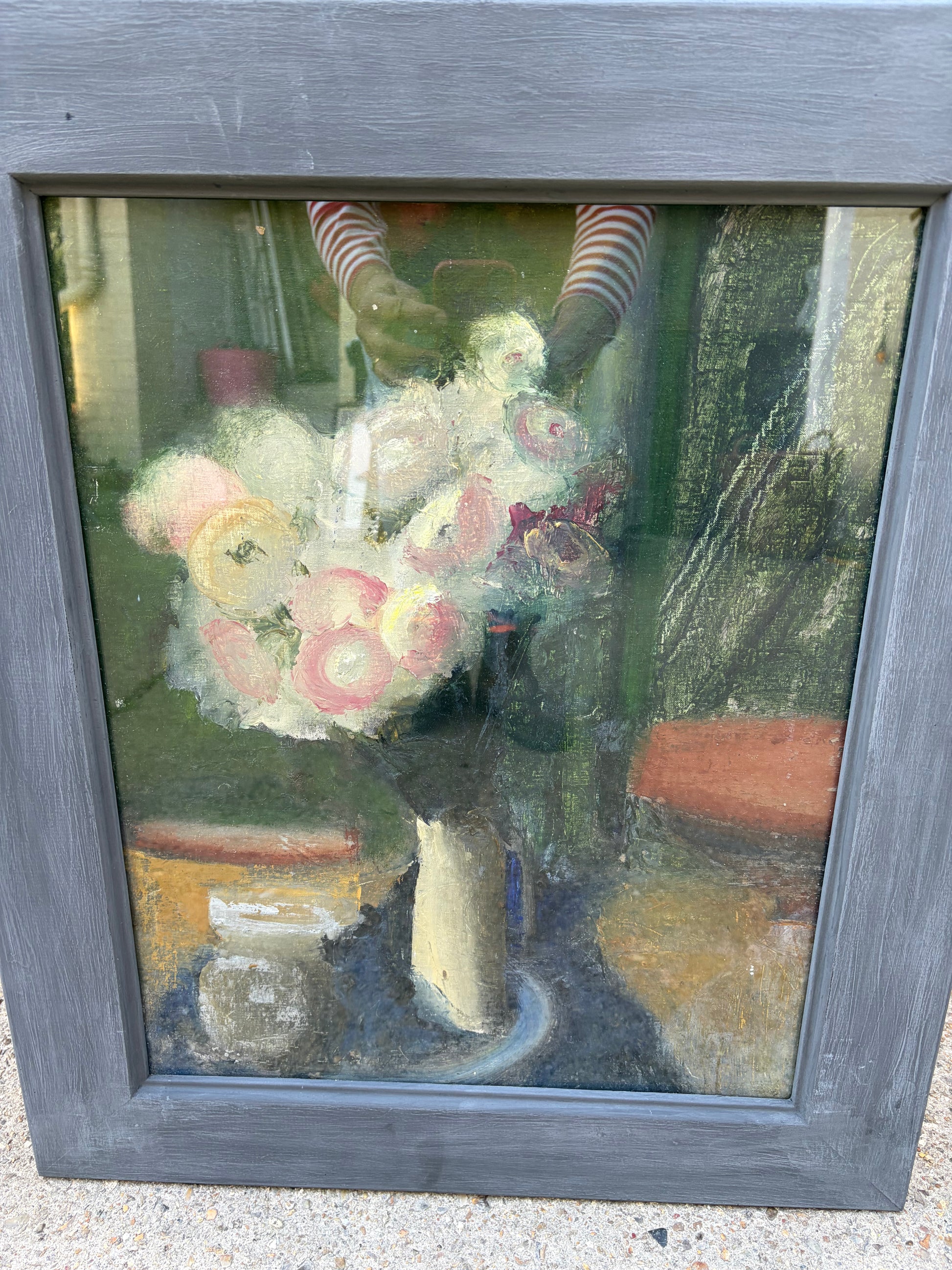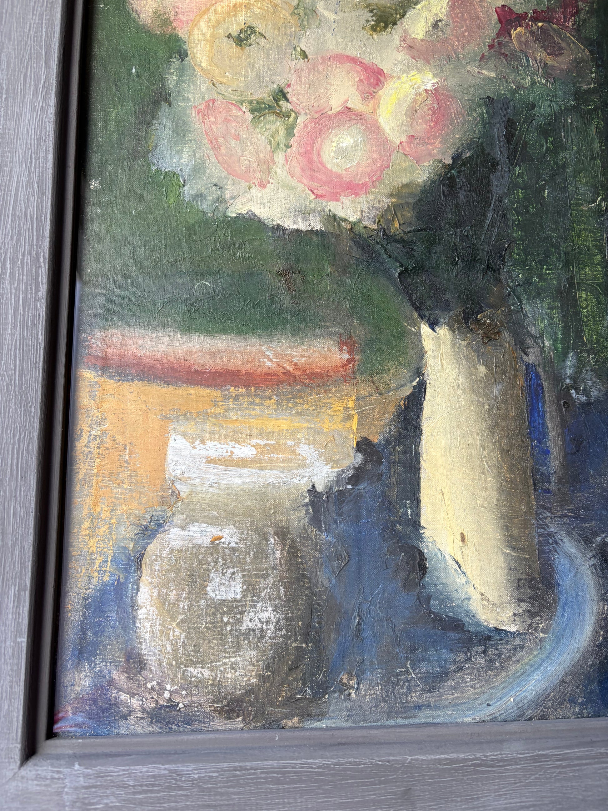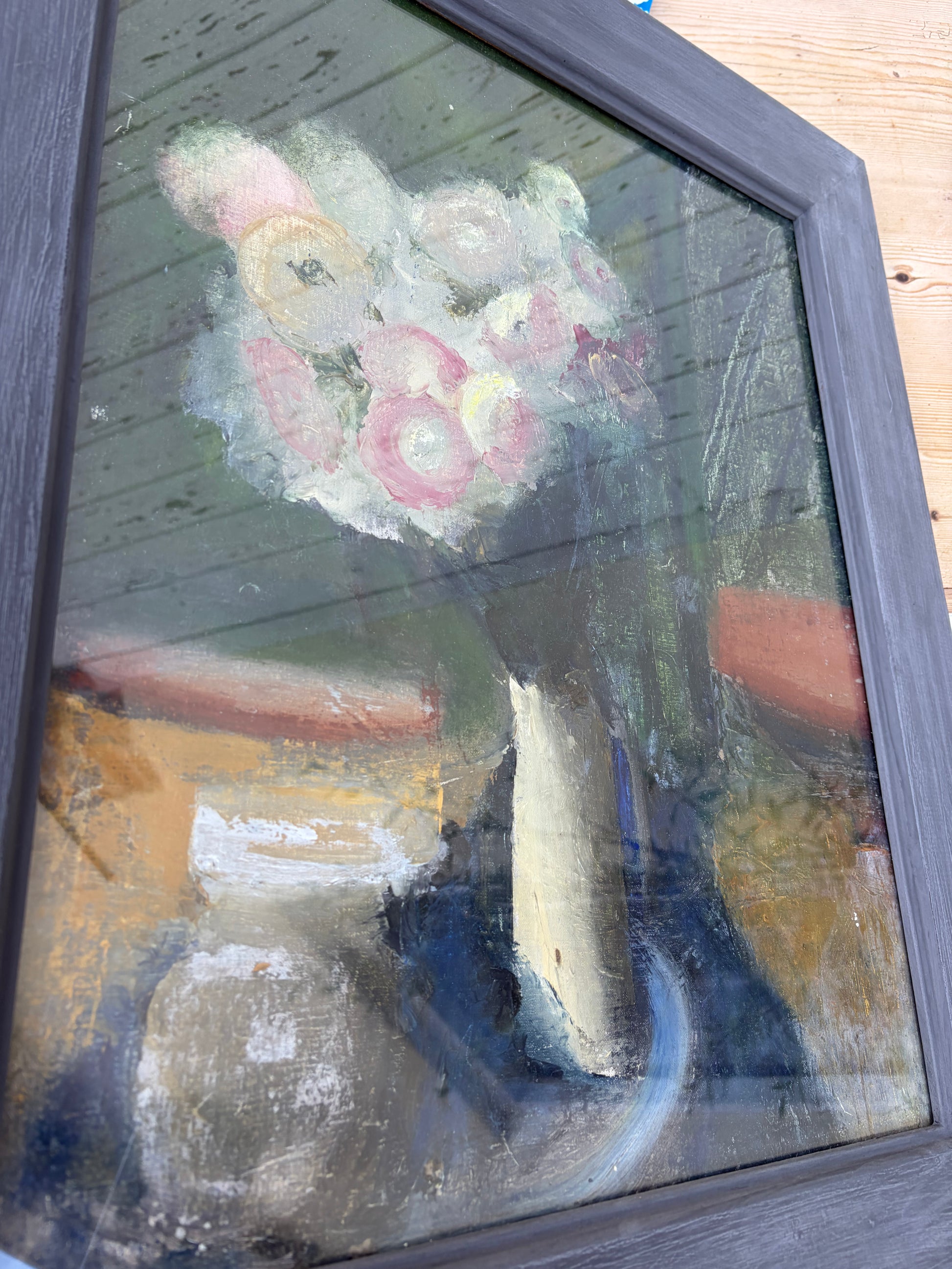 Audrey Lewis Hopkins 1914 to 2011 this is a glazed and framed oil on canvas on board still Life study painting of a vase of flowers. The painting itself measures 41 x 51 cm.
