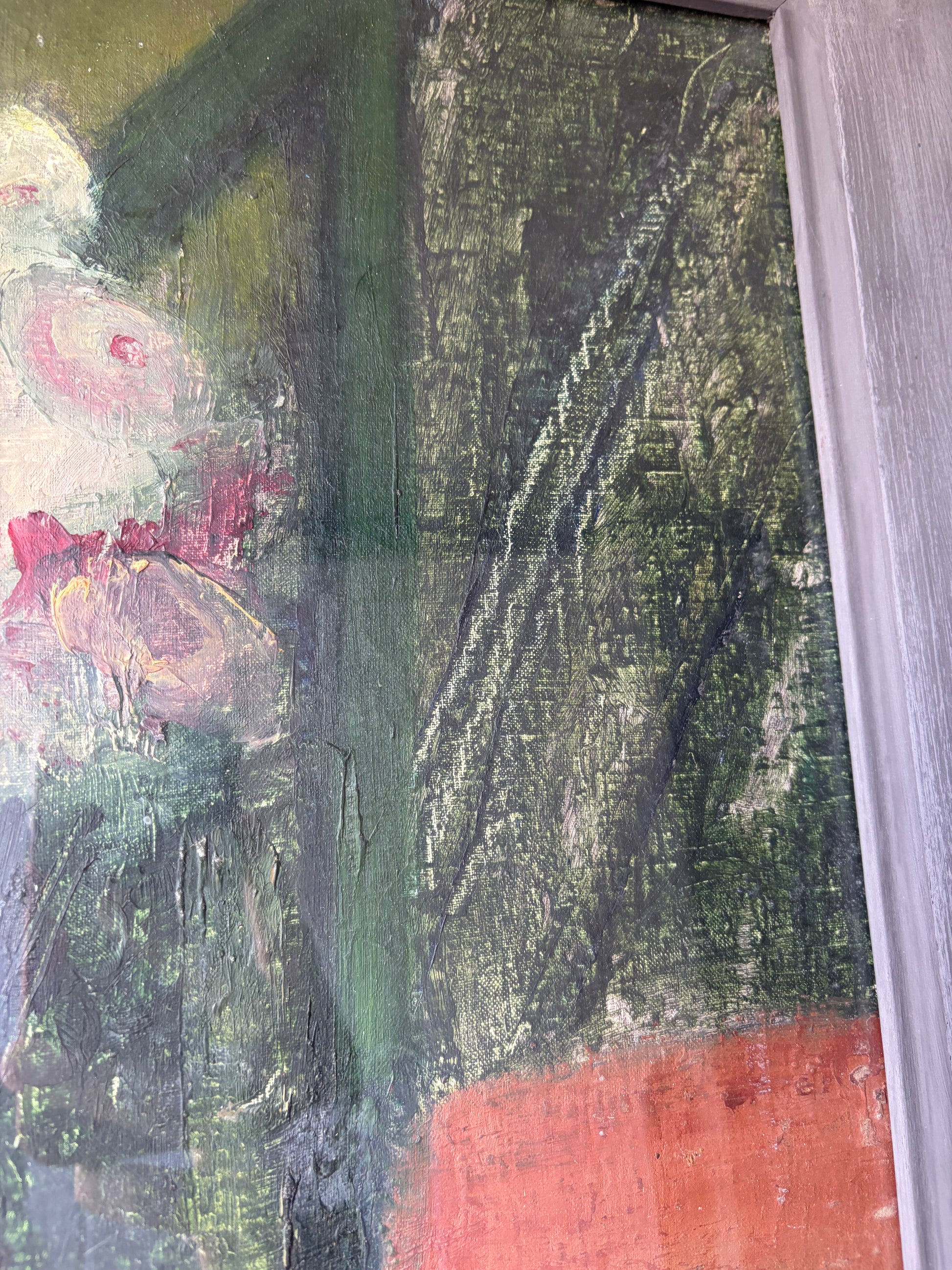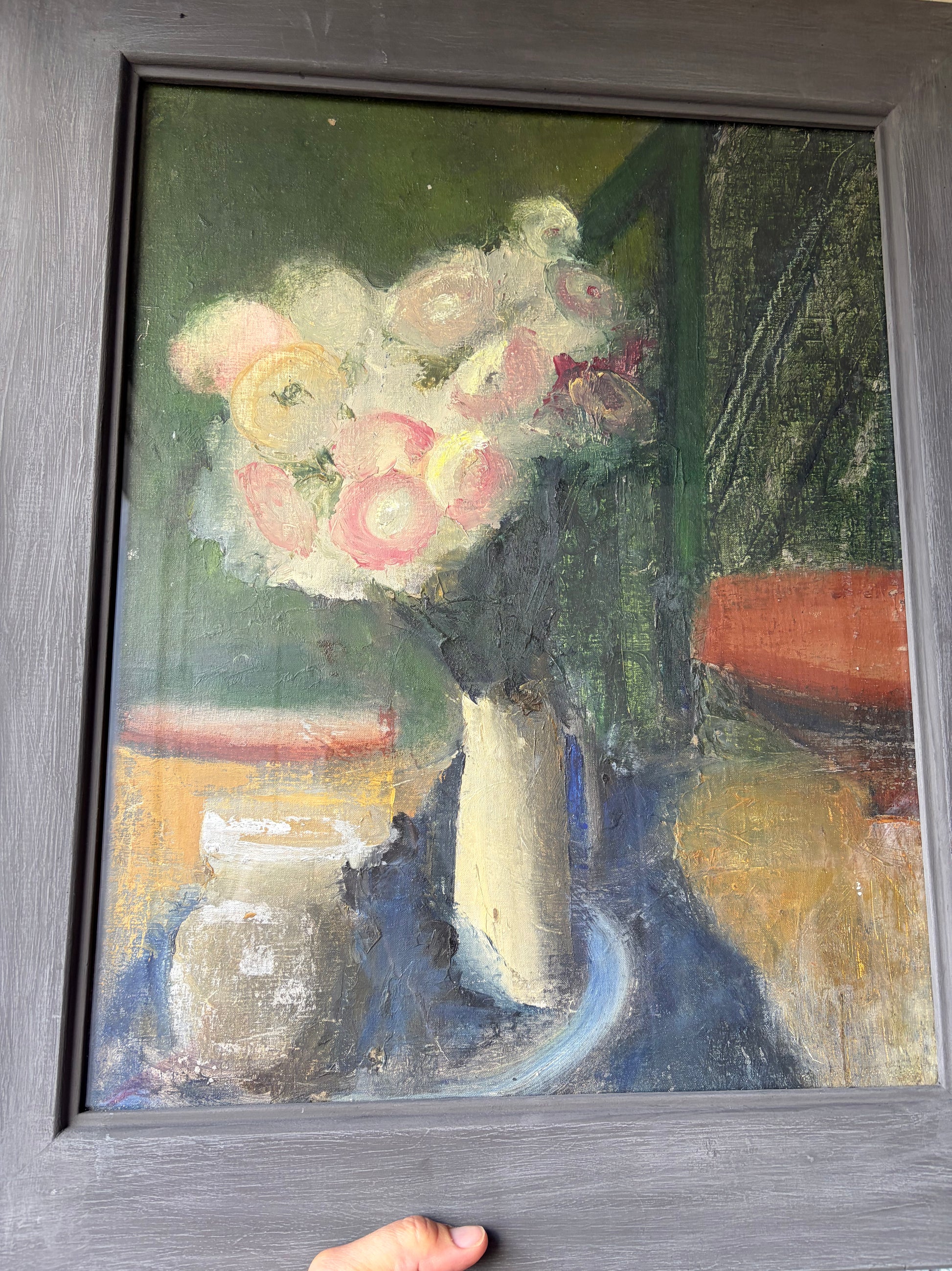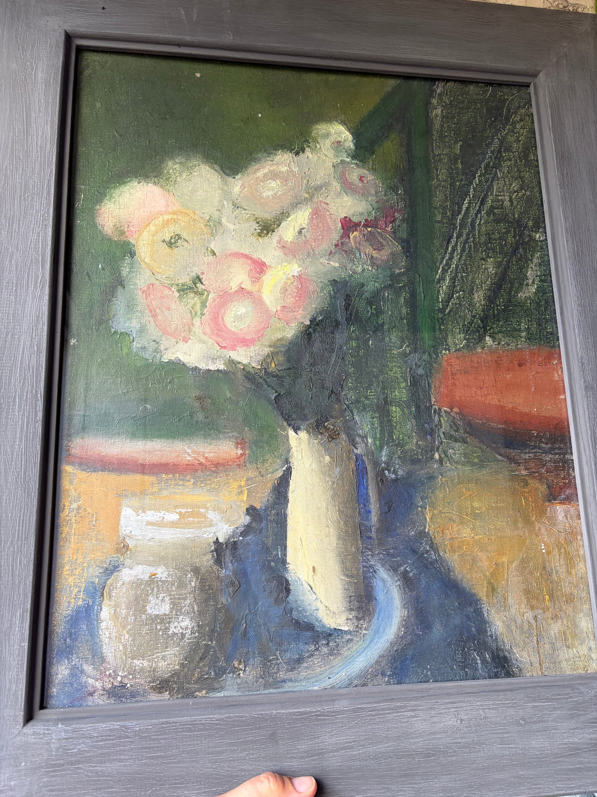 Audrey Lewis Hopkins 1914 to 2011 this is a glazed and framed oil on canvas on board still Life study painting of a vase of flowers. The painting itself measures 41 x 51 cm.