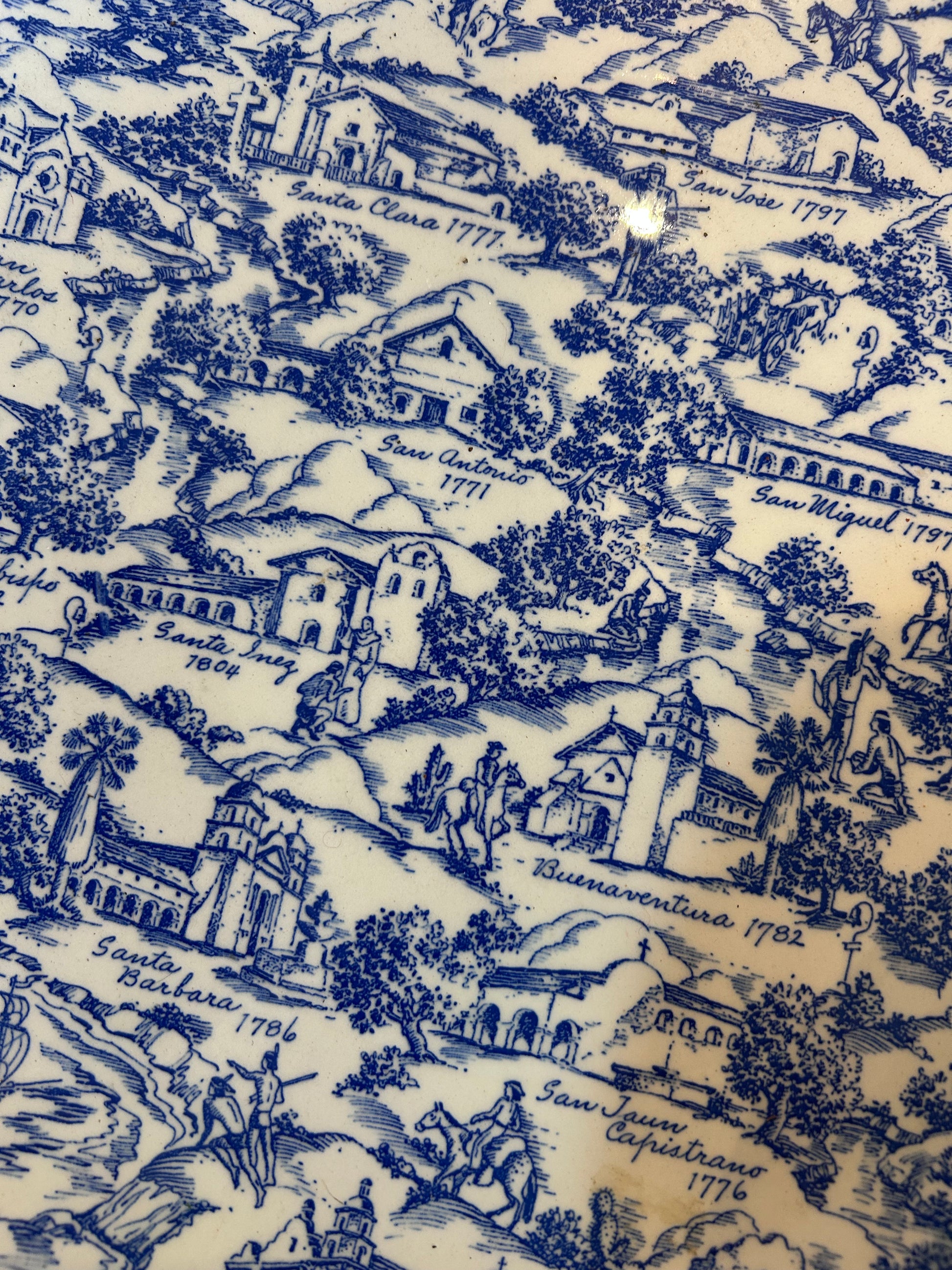 Selection of seven beautiful blue and white plates- The largest one is 40 cm diameter
