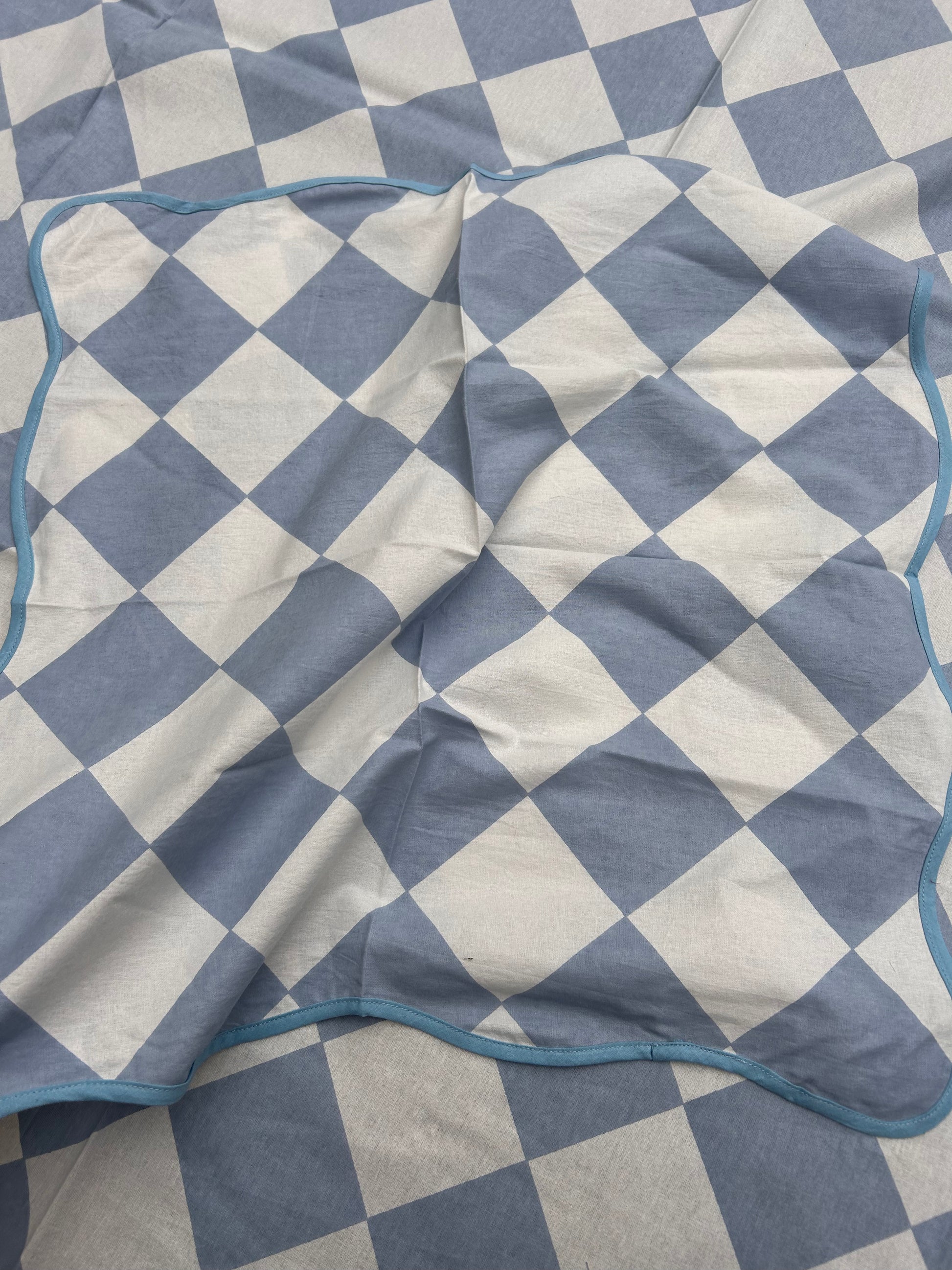BLUE AND WHITE TABLECLOTH LARGER