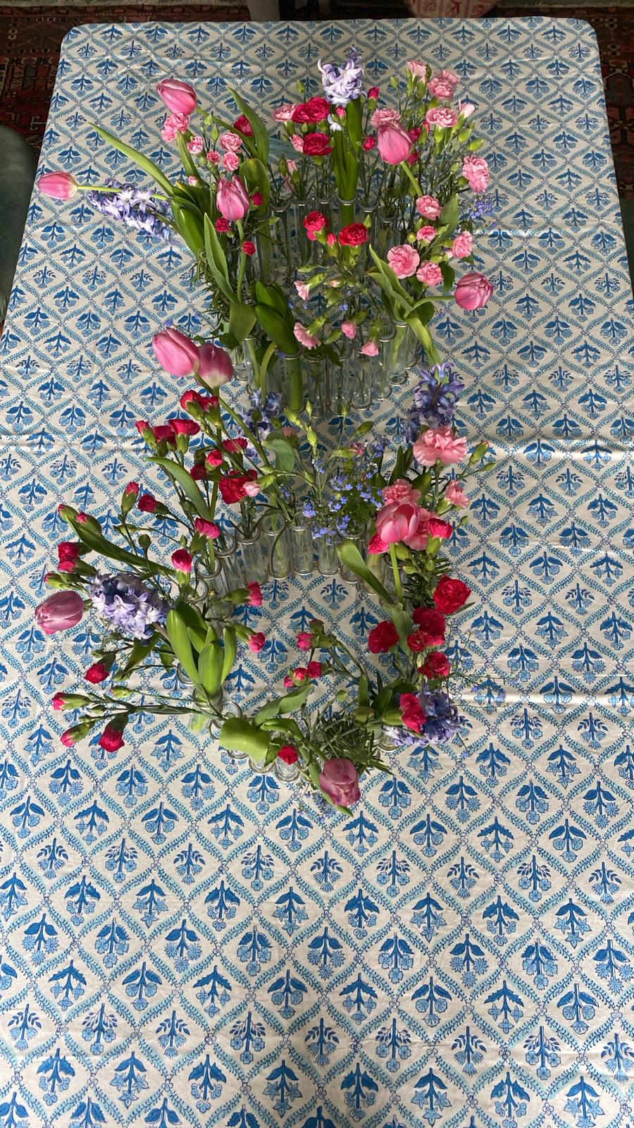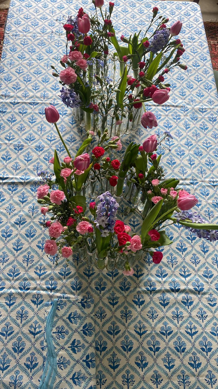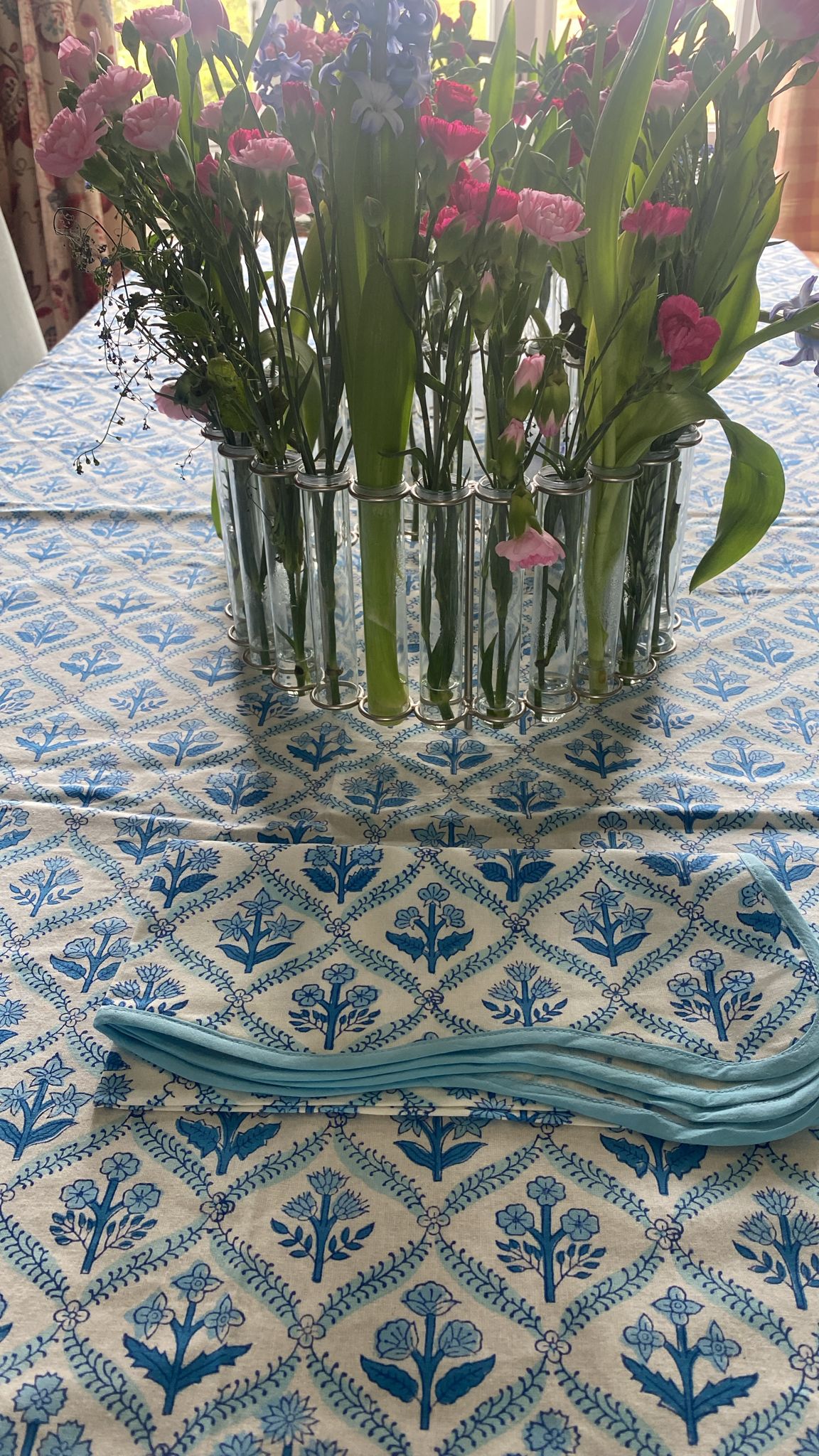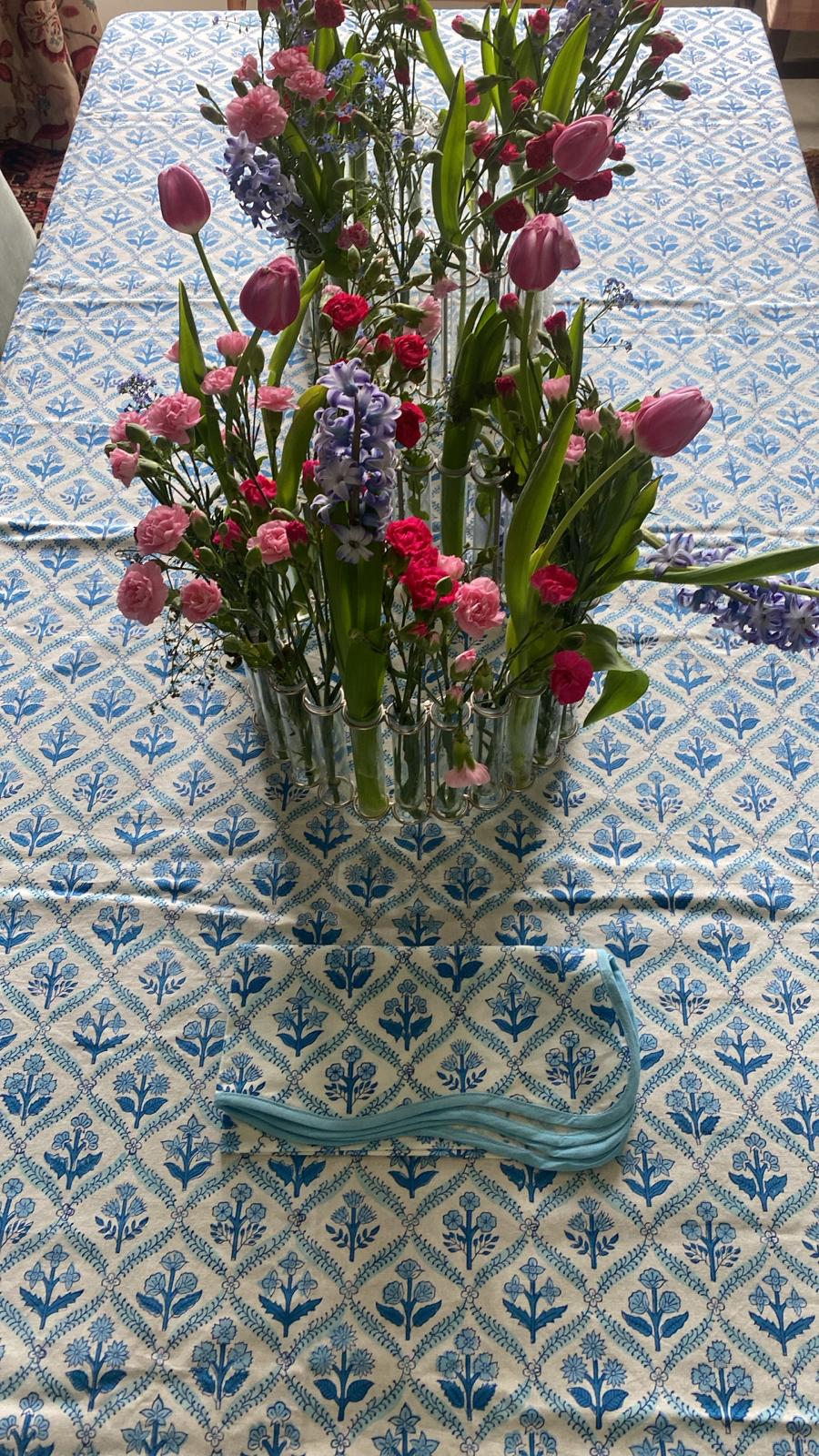 Hand block printed blue floral tablecloths measuring 150 cm x 300 cm