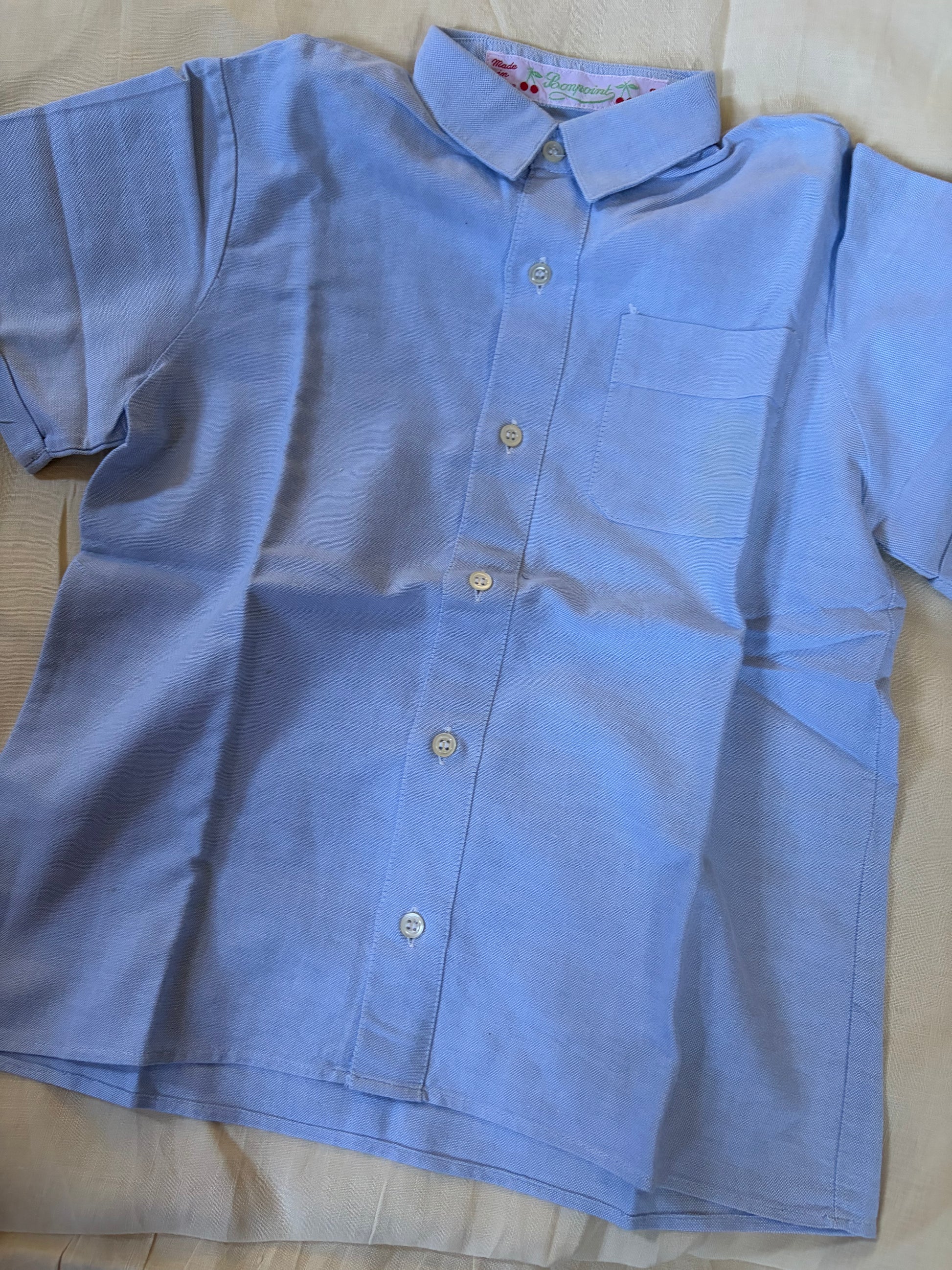Cotton short sleeved blue shirt says age 8 (I think younger)