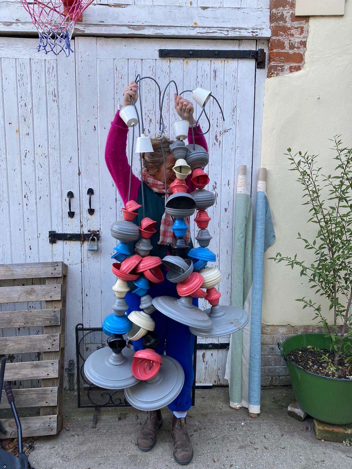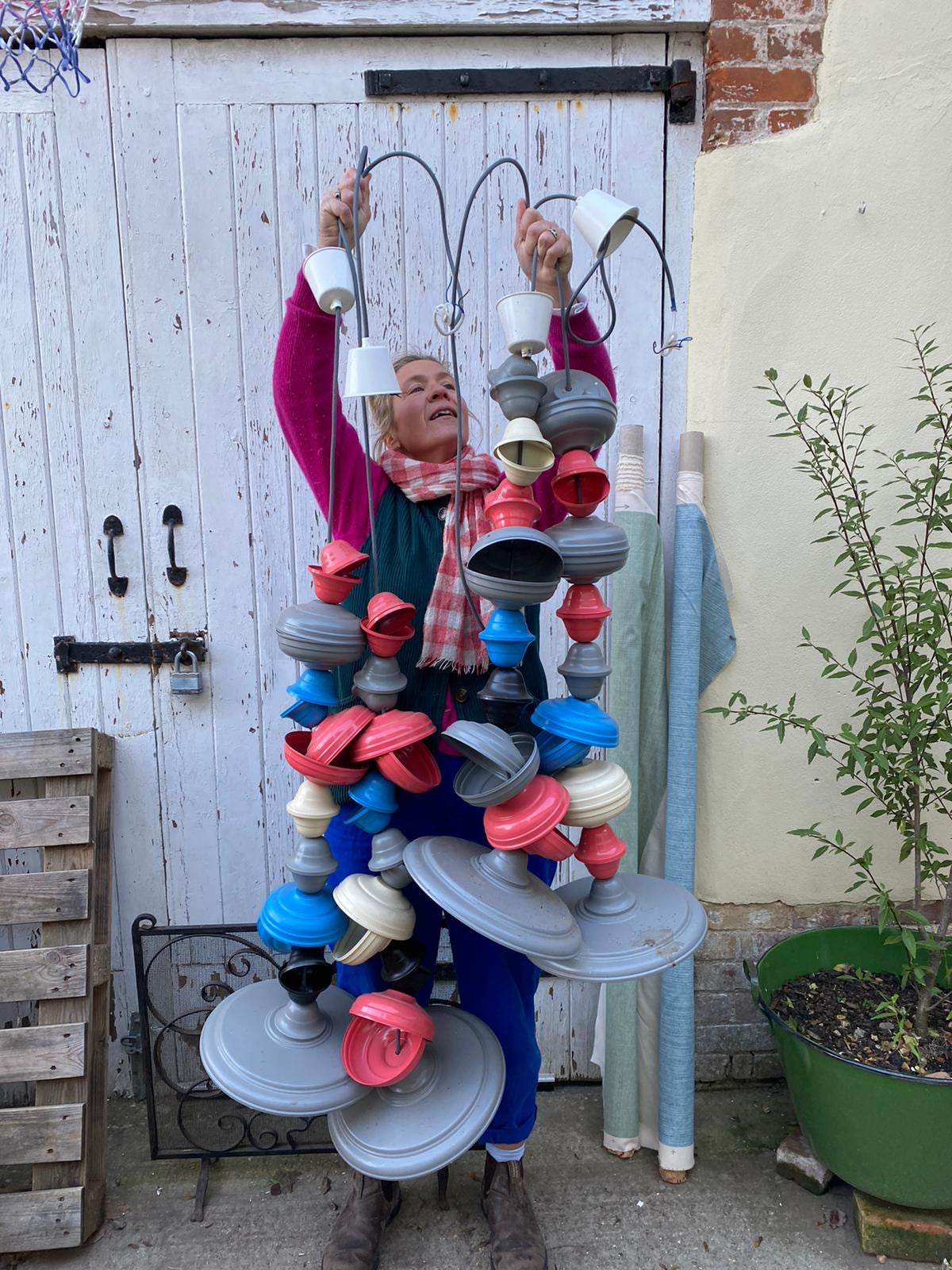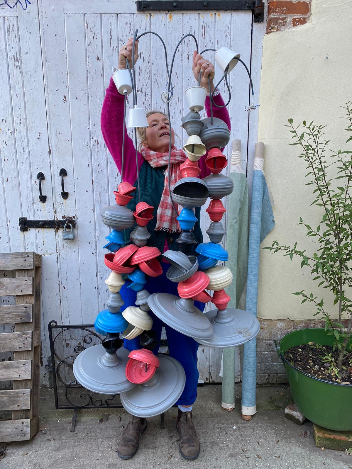 Each about a metre long- 4 Dangling metal ceiling lamps. These have come out of an old barn and would look amazing if you have a large Playroom/barn to decorate