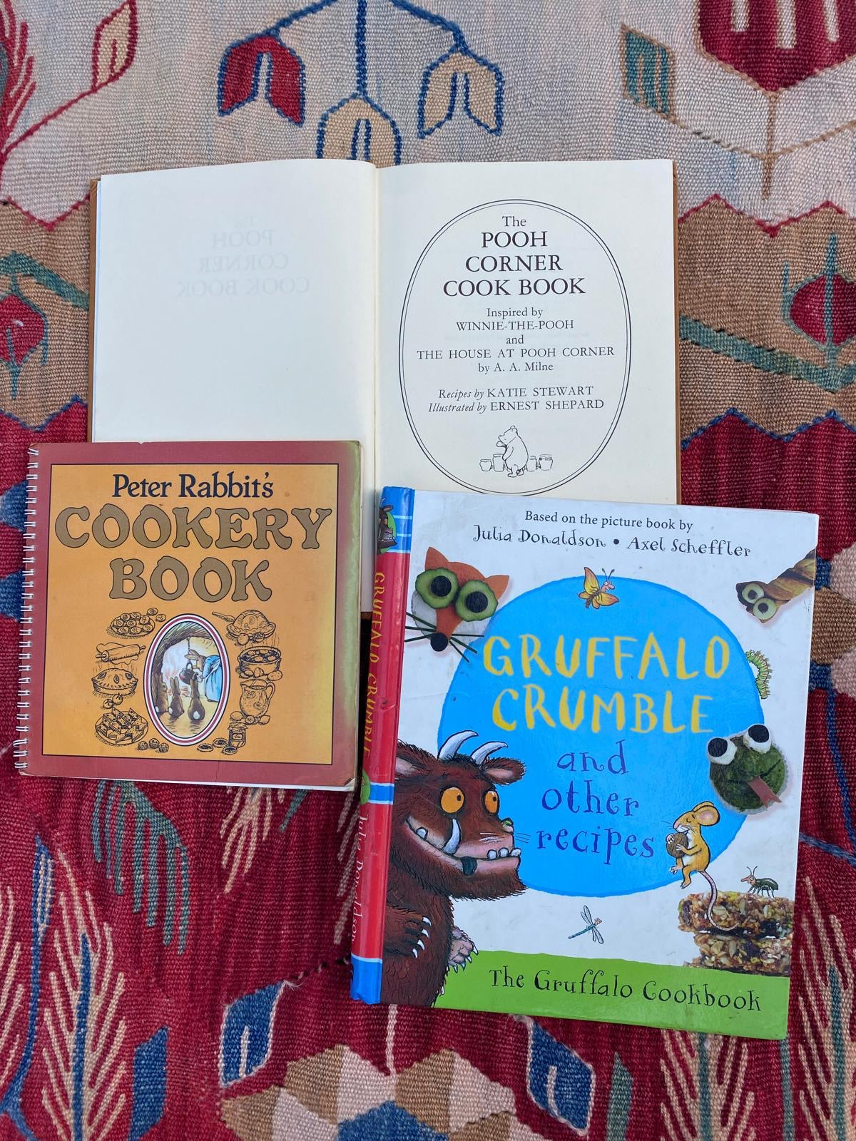 Winnie the Pooh, Peter Rabbit and the Gruffalo all share their knowledge of cookery! Three children’s cookery books