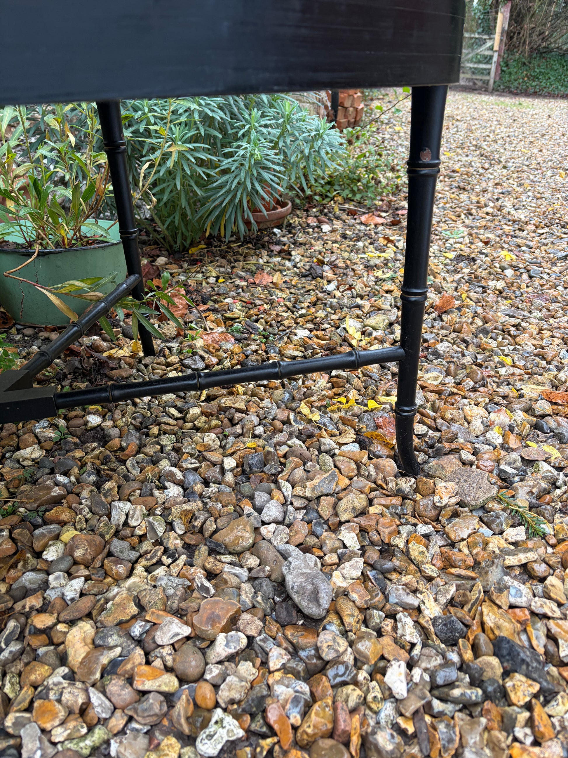 This is beautiful bamboo legged sturdy coffee table with an early hand painted Antique papier-mâché tray. The bottom half I believe is later especially made for the top part it measures 80 cm long by 59 cm wide and the height is 49 cm