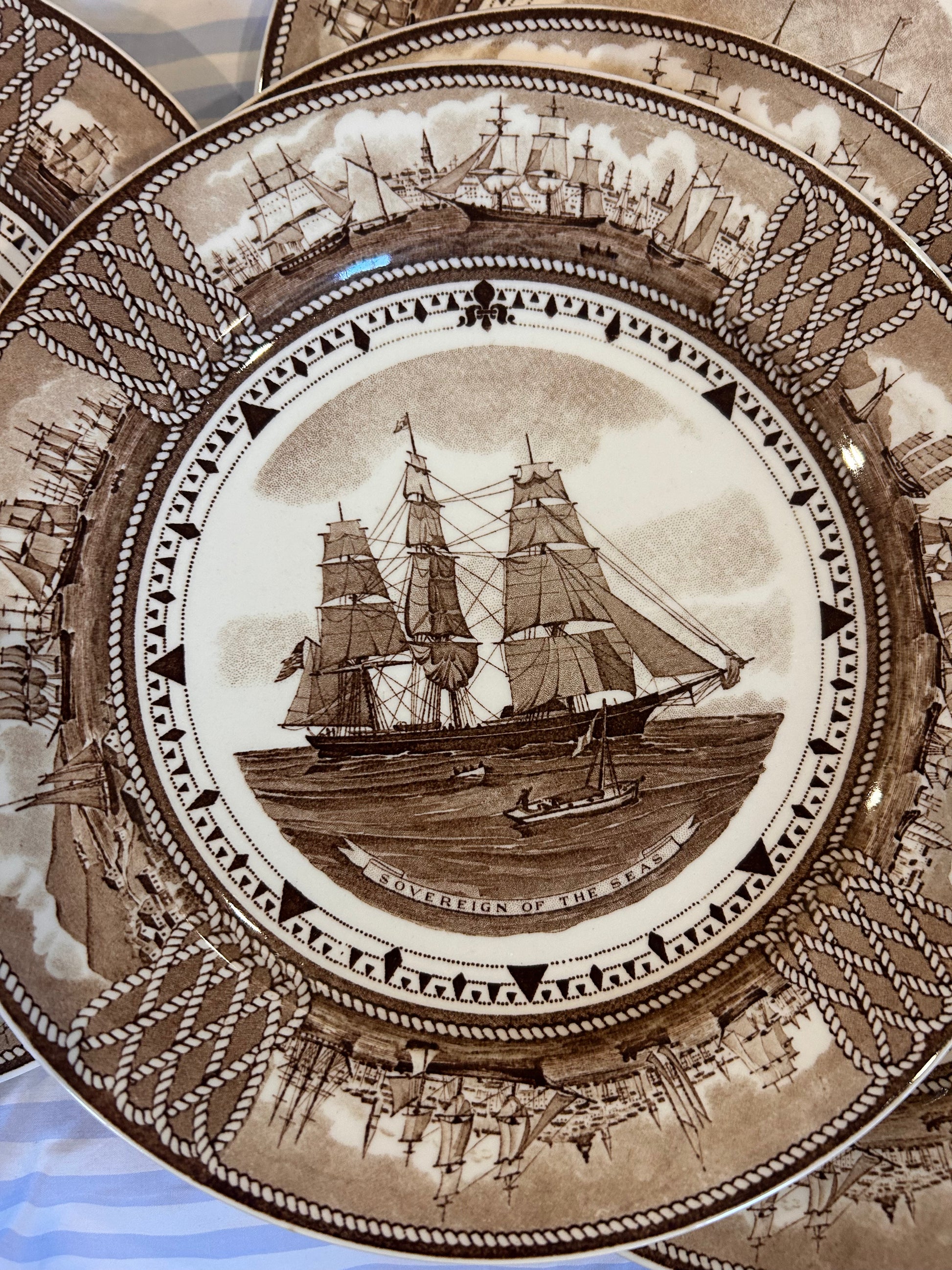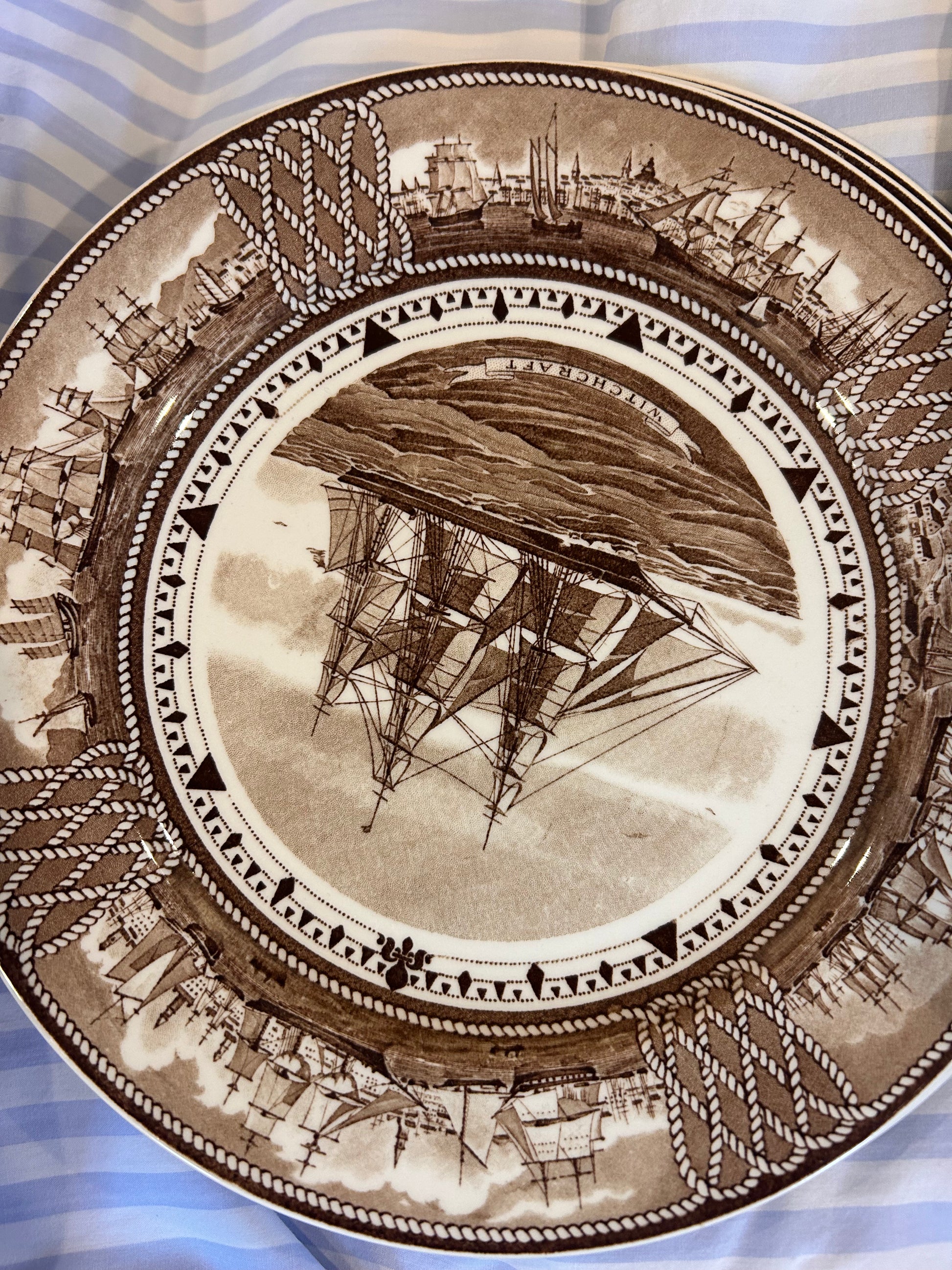 Fabulous plates all 23 cm diameter gorgeous for display… Eight different ships in full sale and the borders decorated with sailors knots £80 the set