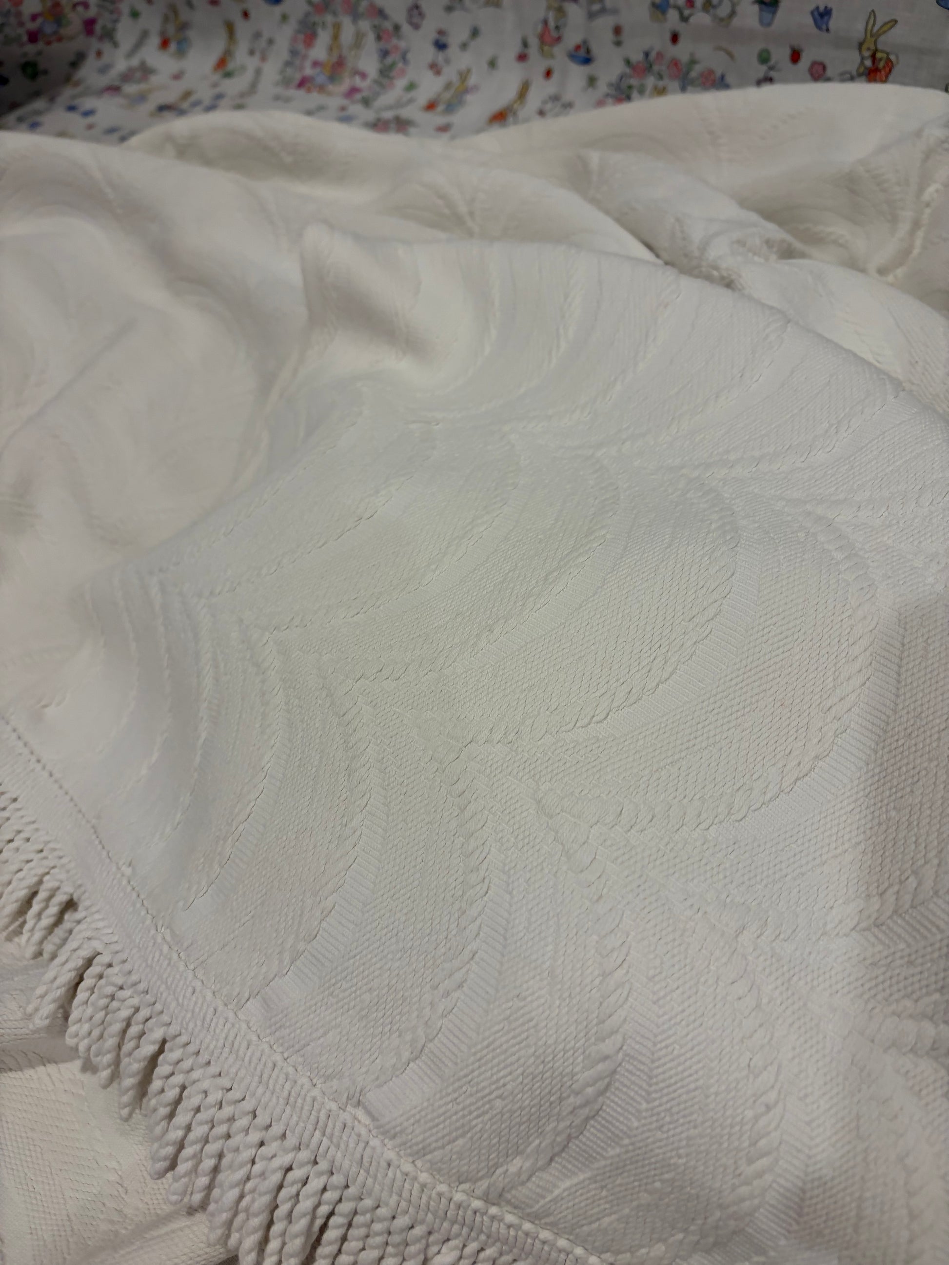 Thick fringed heavy cotton cream throw for a bed £20