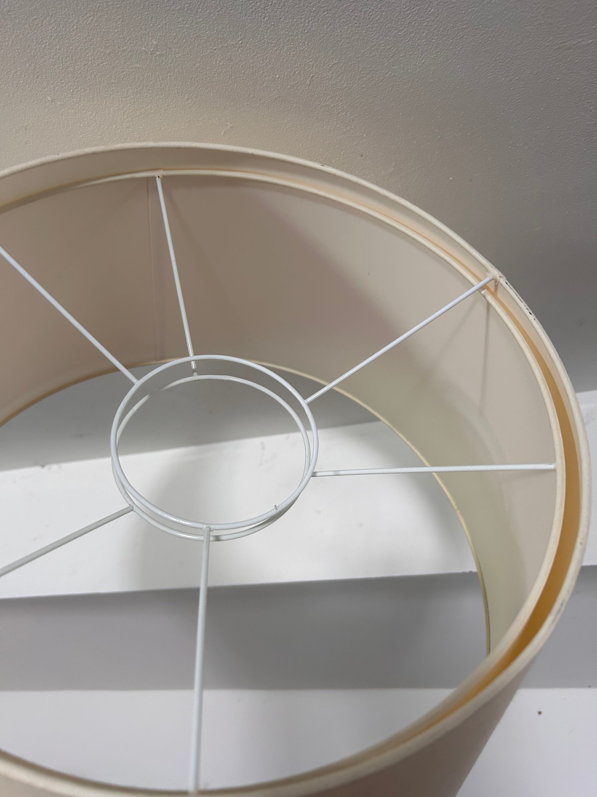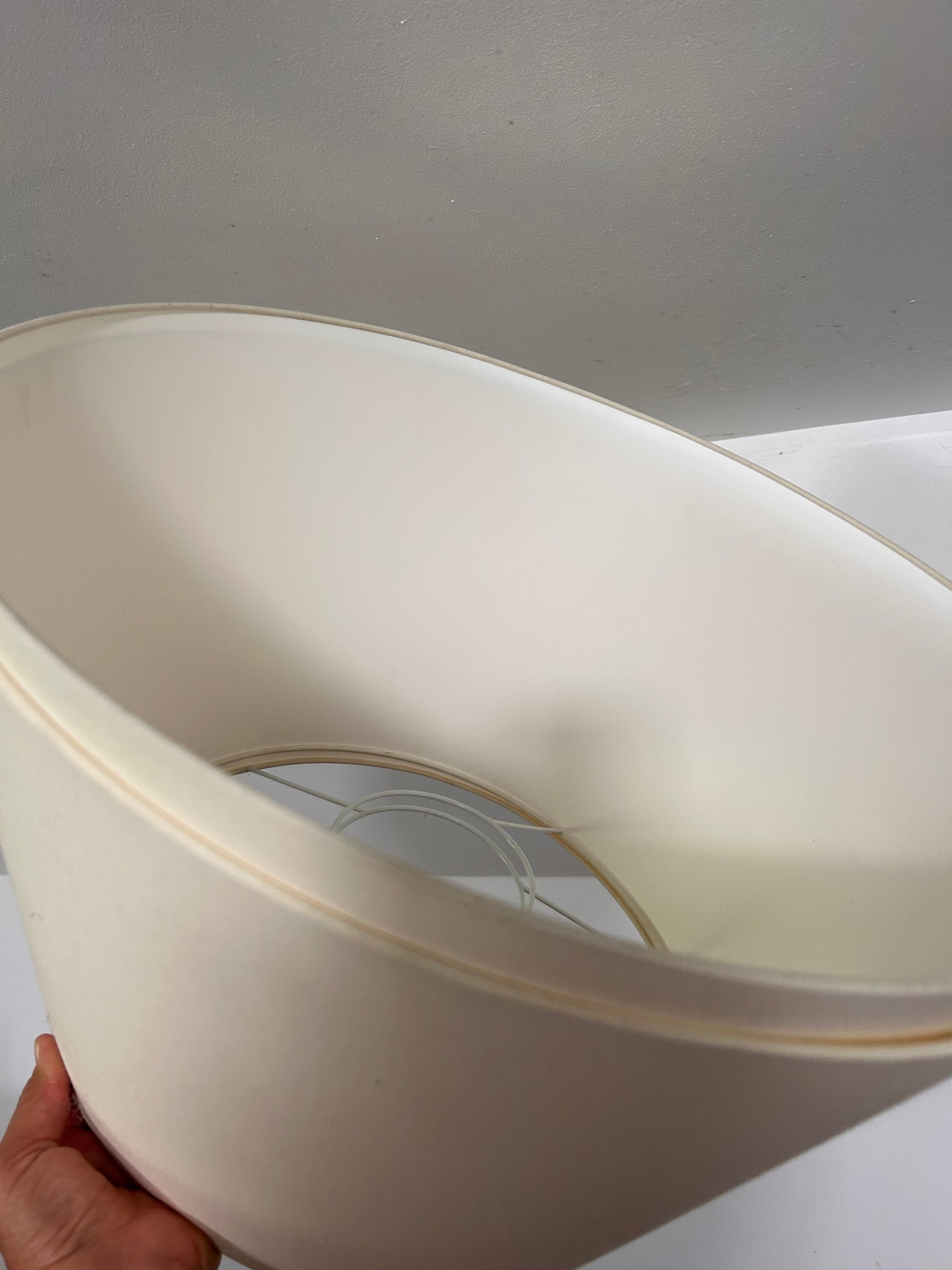 Huge excellent quality pair of cream silk? Lampshades 29 x 51 cm wide.