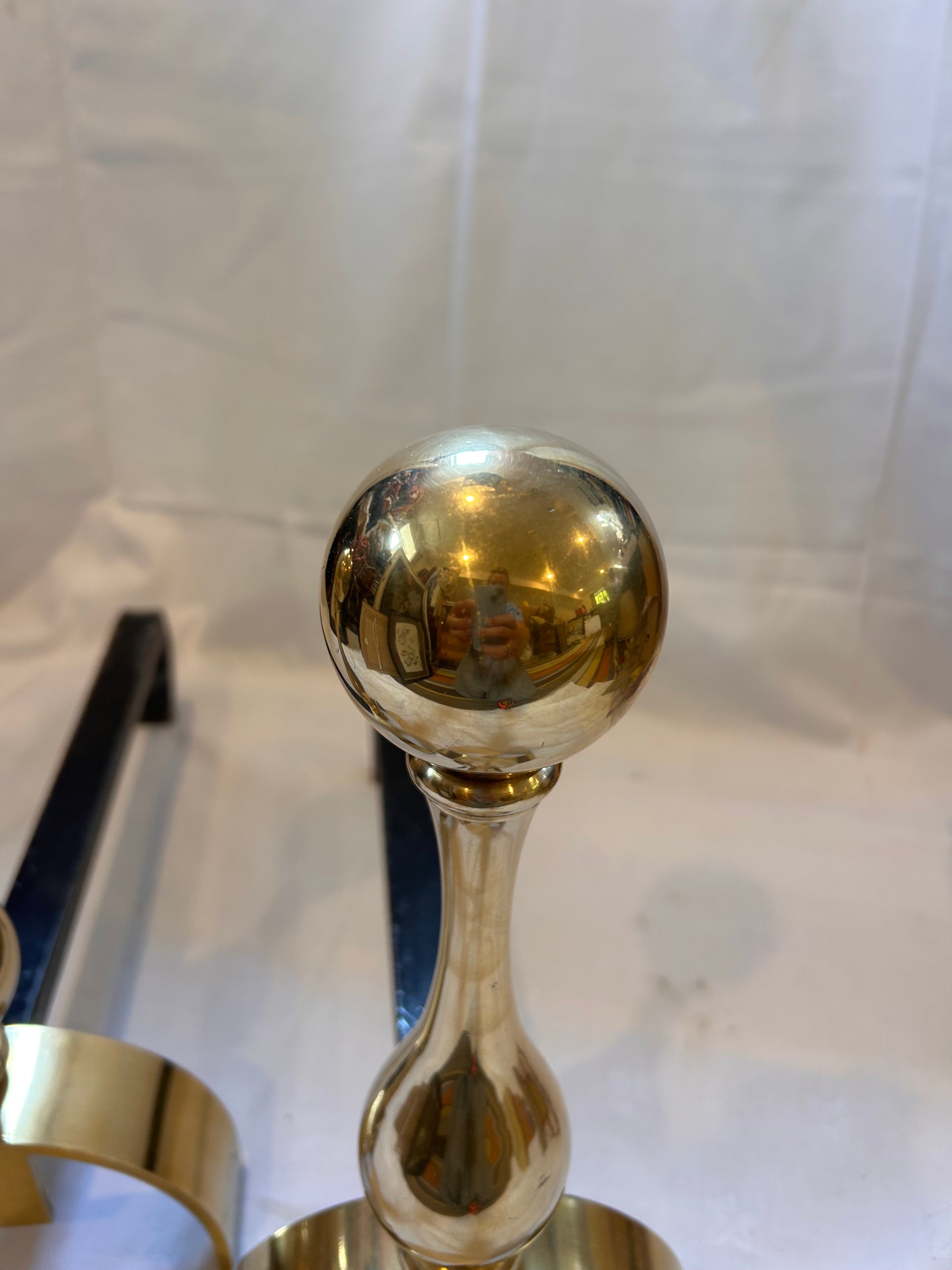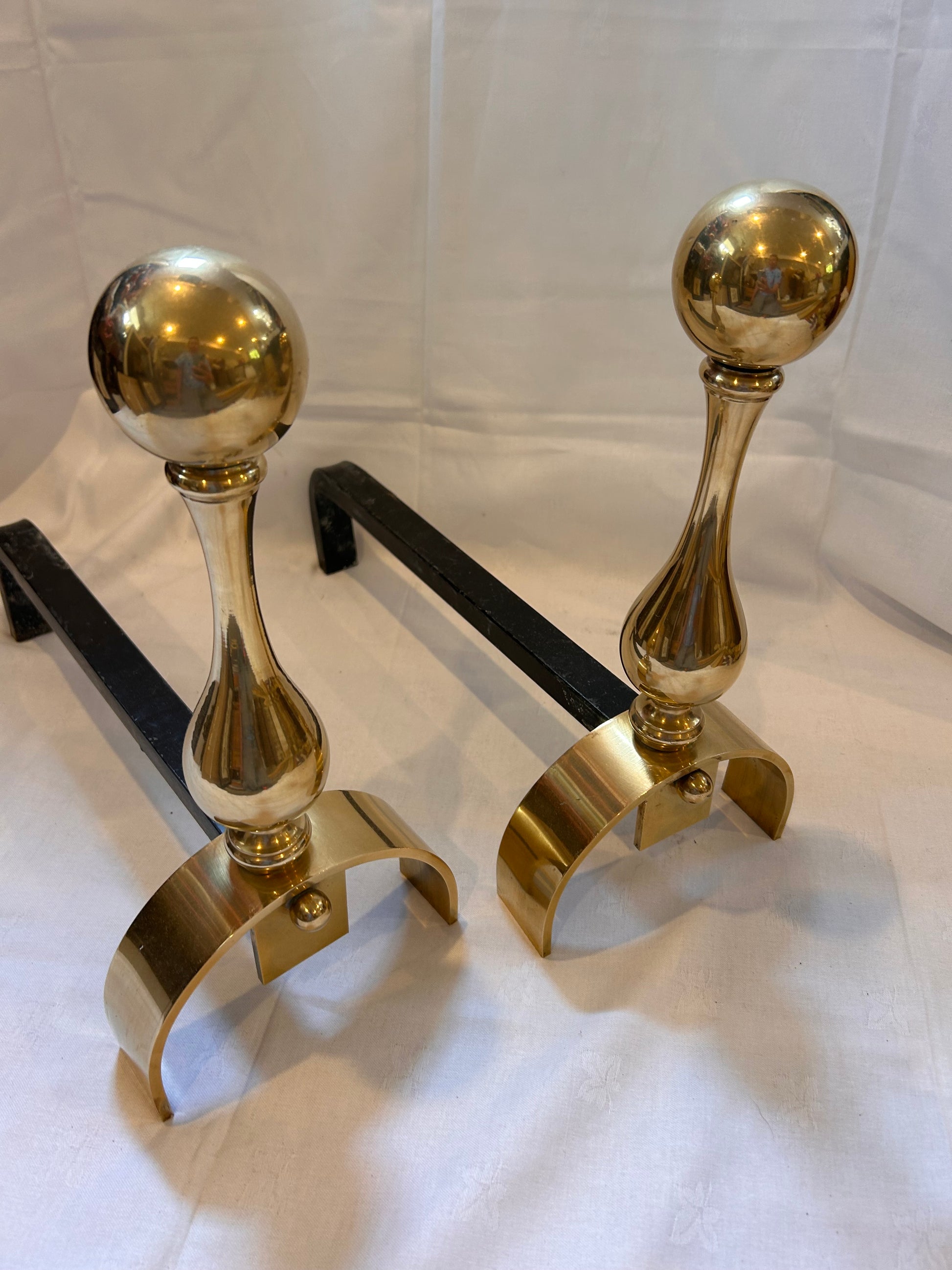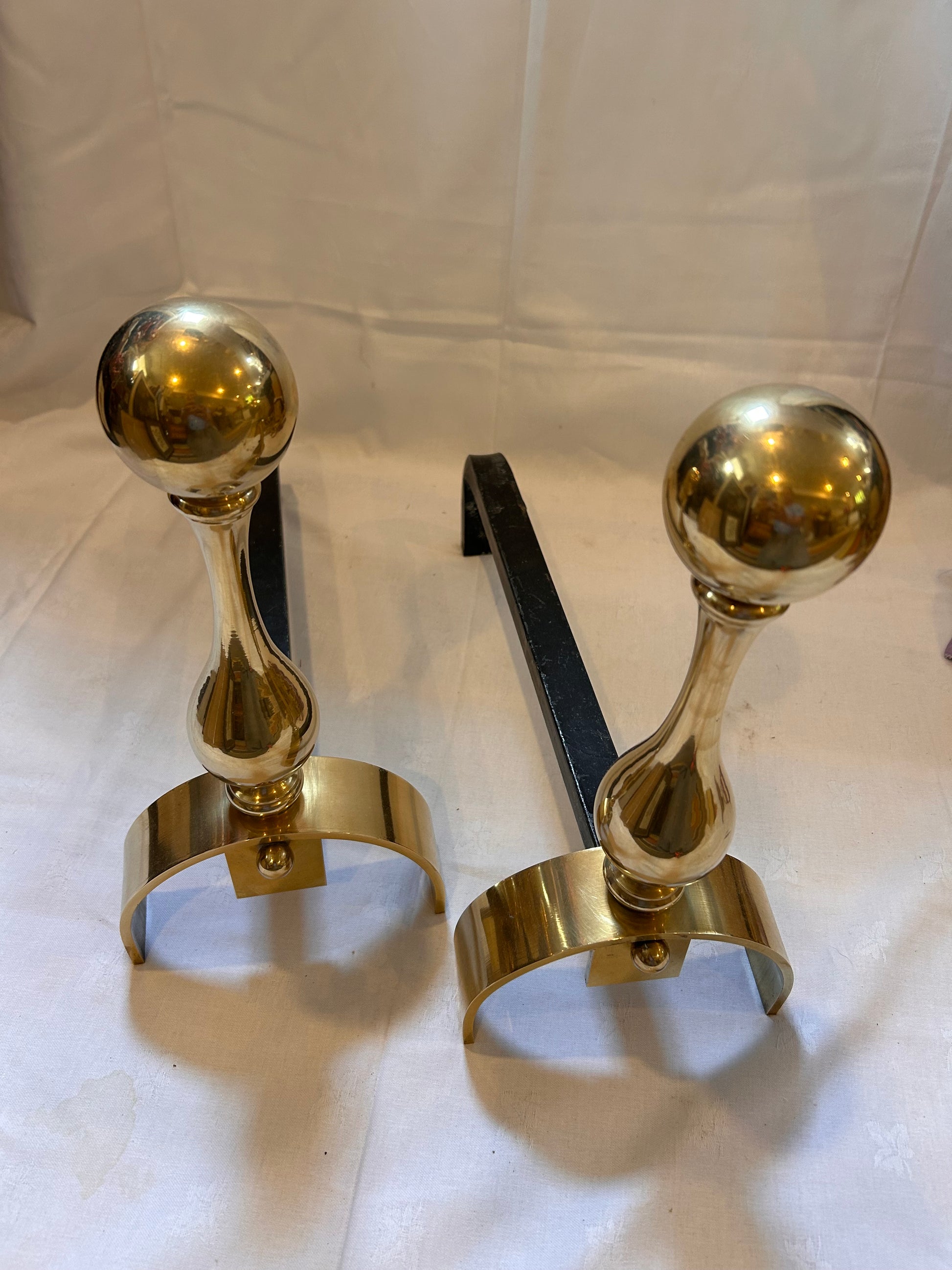 45 cm long 40 cm tall, a pair of brass fire dogs