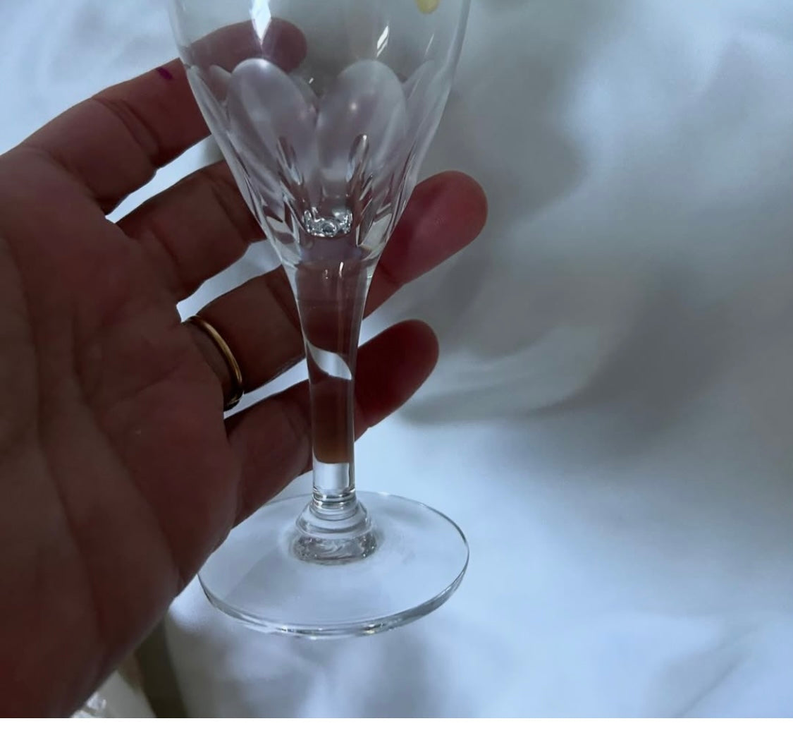 A pair of crystal wine glasses, 15 cm tall