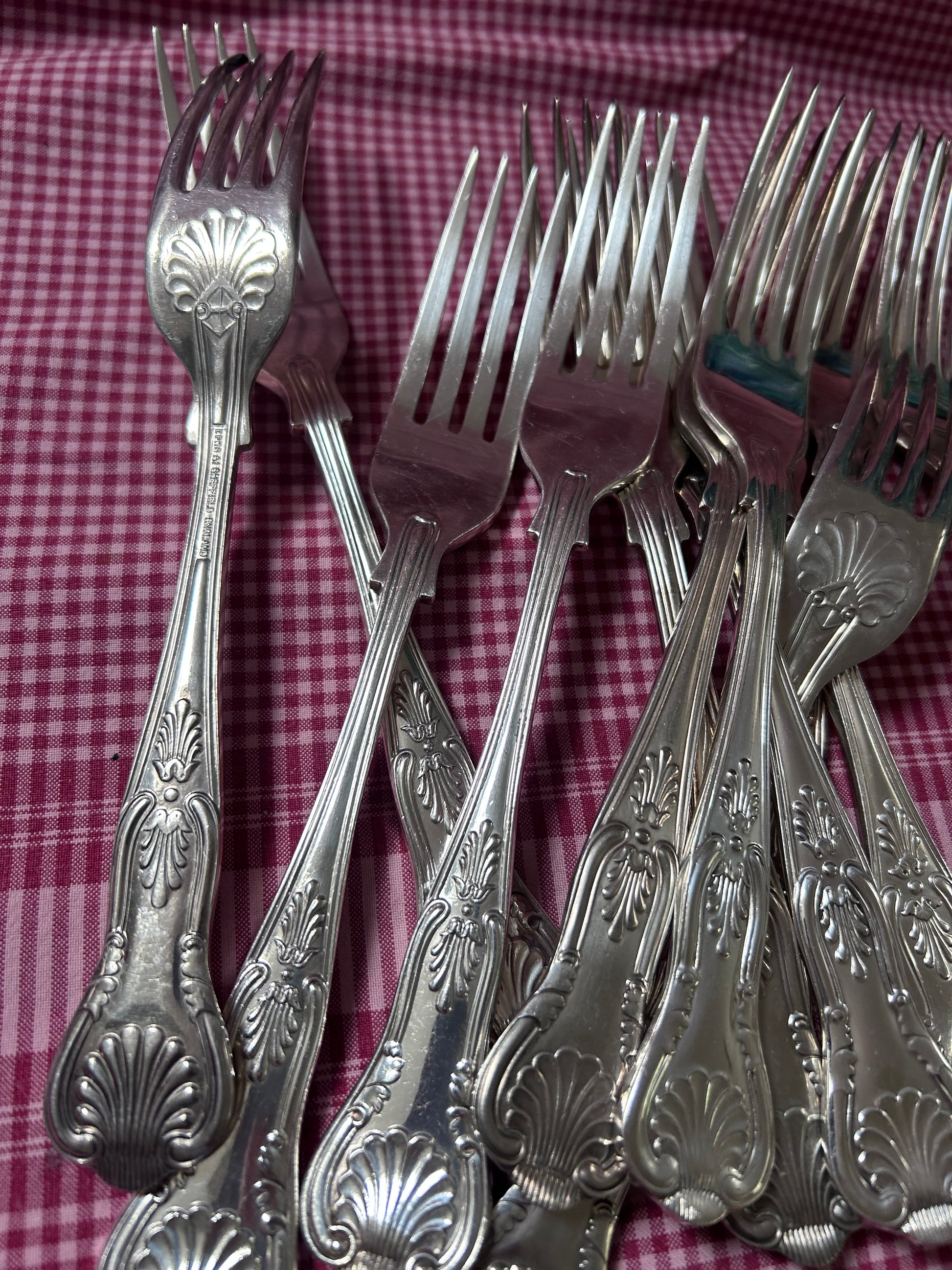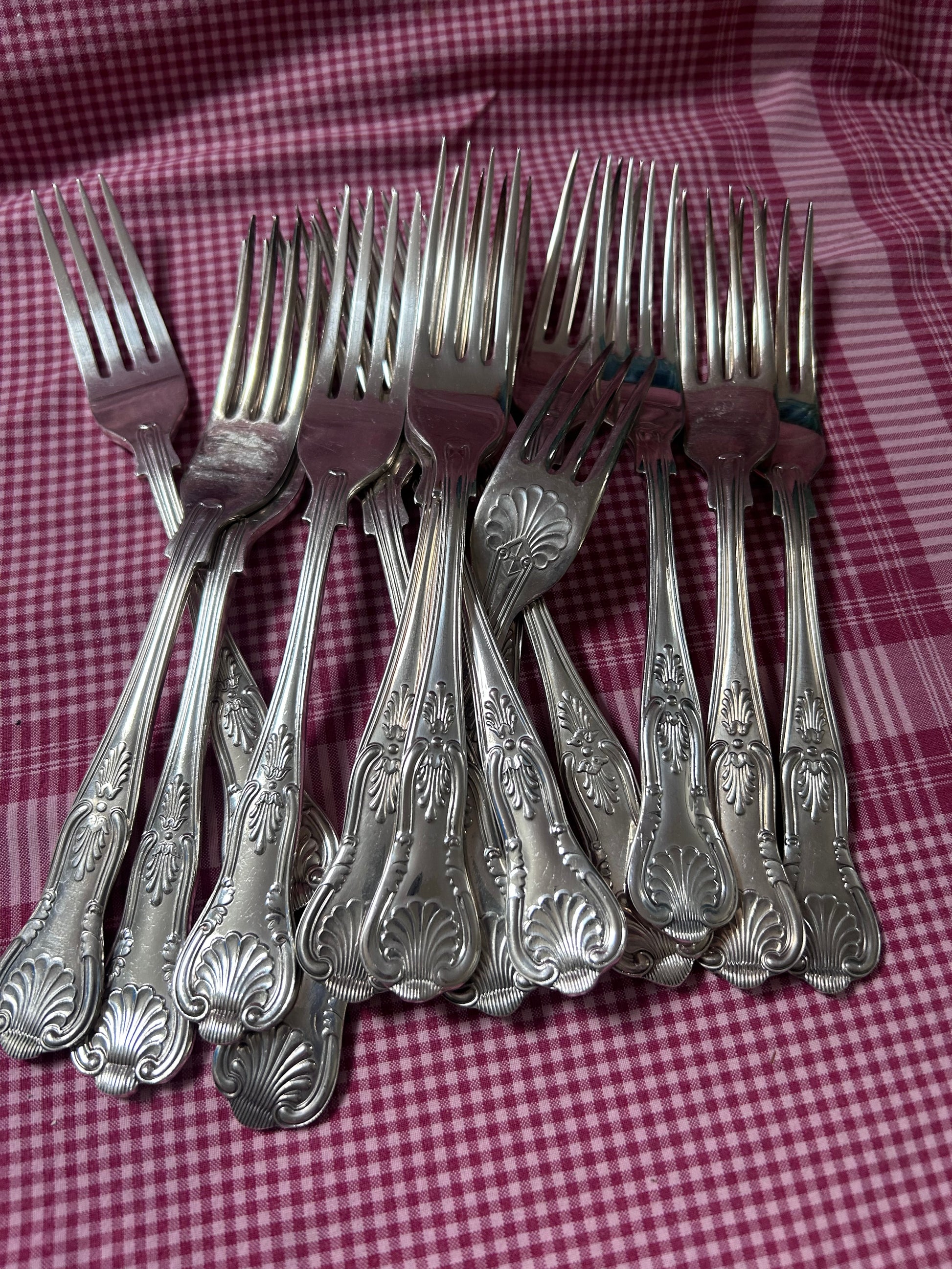 A set of 14 large forks extremely good quality Sheffield stainless steel with a classic pattern