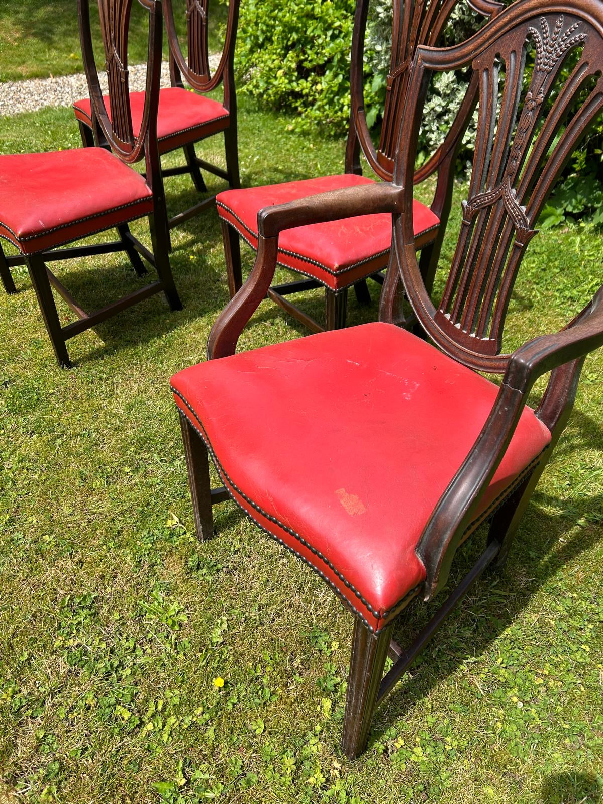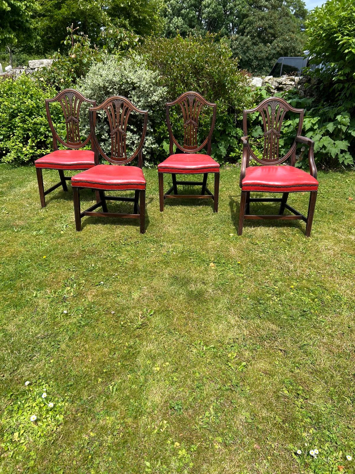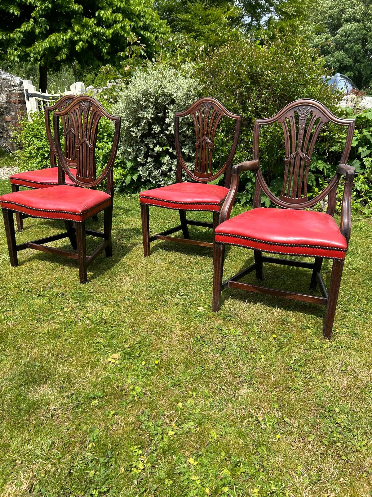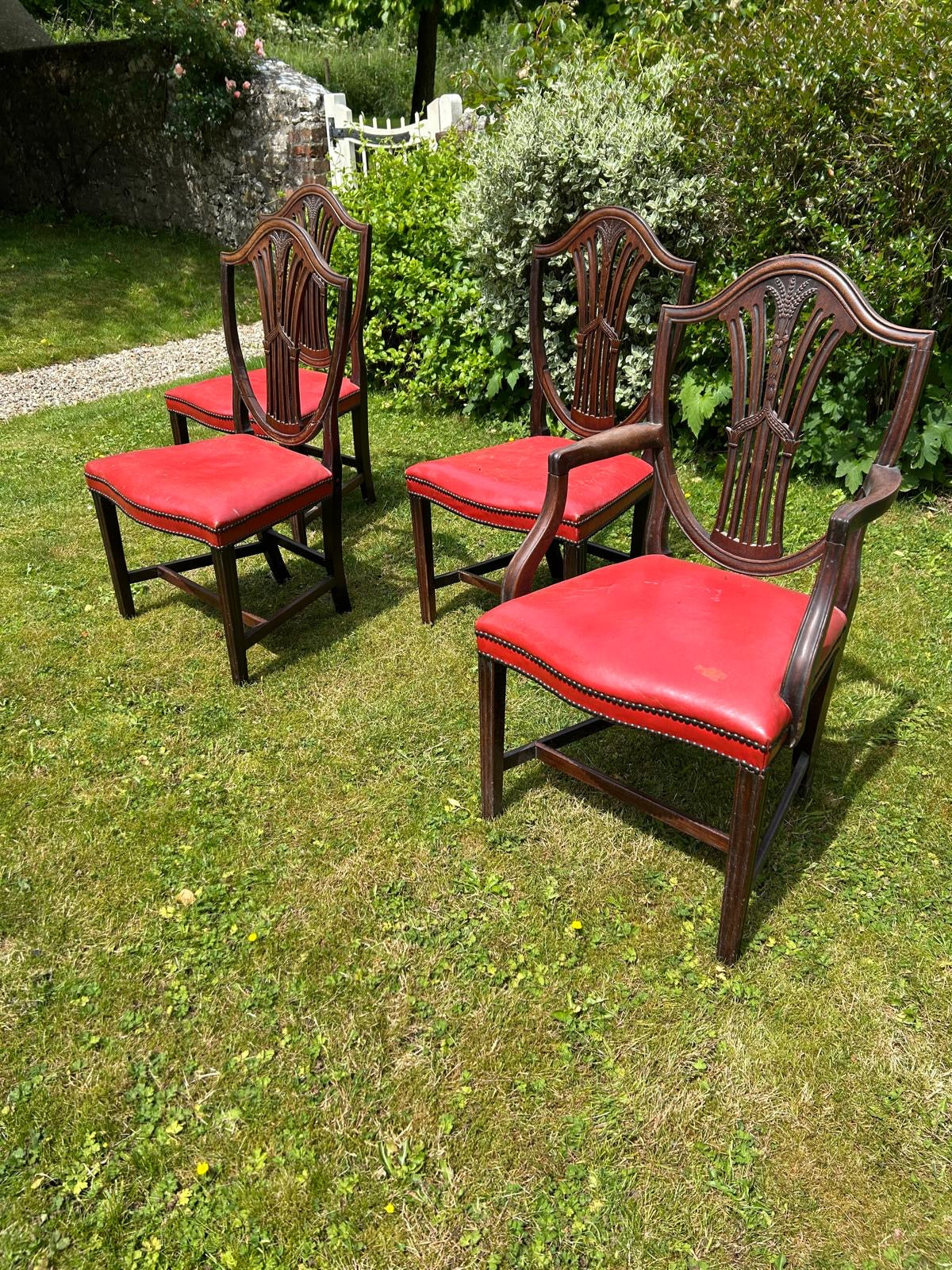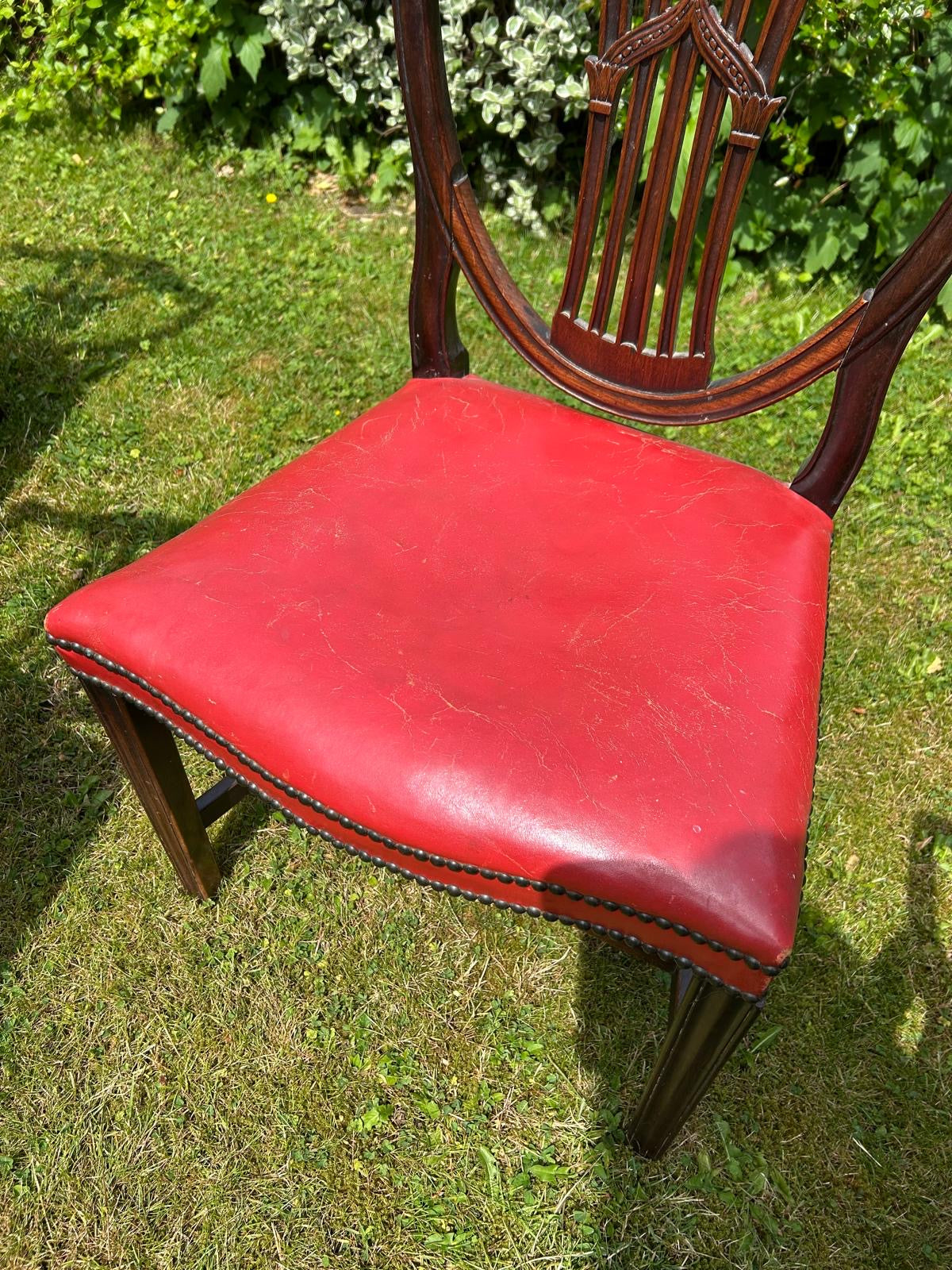 Red leather seats, 4 Antique chairs