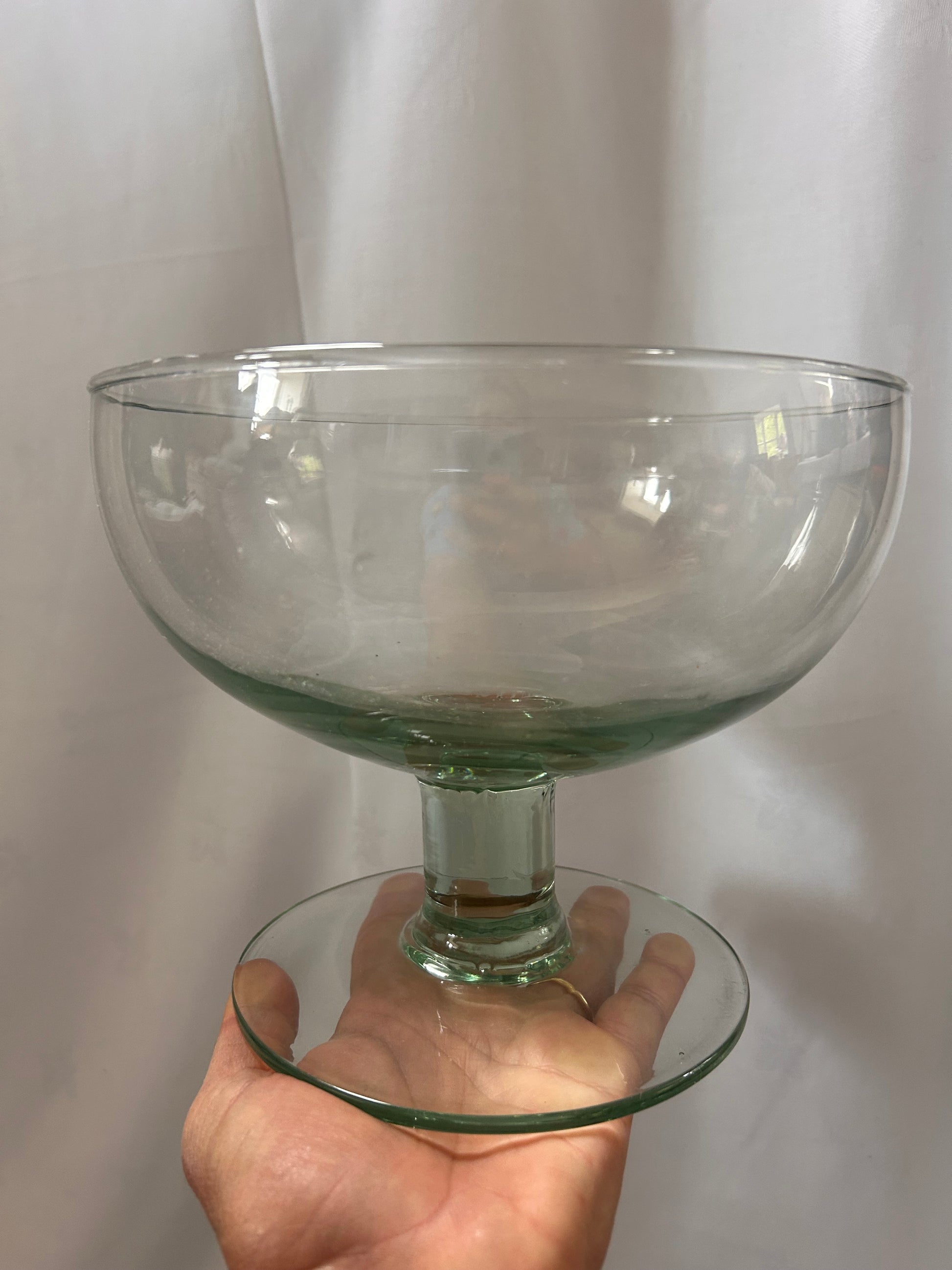 18 cm tall 21 cm wide, a glass bowl on a pedestal