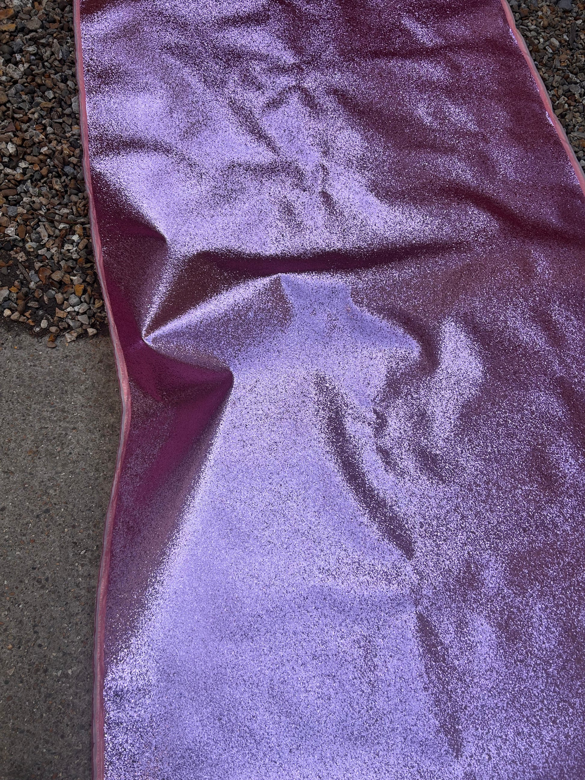 This is absolutely fantastic and I wish I had a festival or party to go to so I could drape myself in this glittery material! This could be useful to anybody working in the theatre/ Or upholstering something totally whacky! Over 10 m of shimmering pink glitter backed on strong cotton canvas