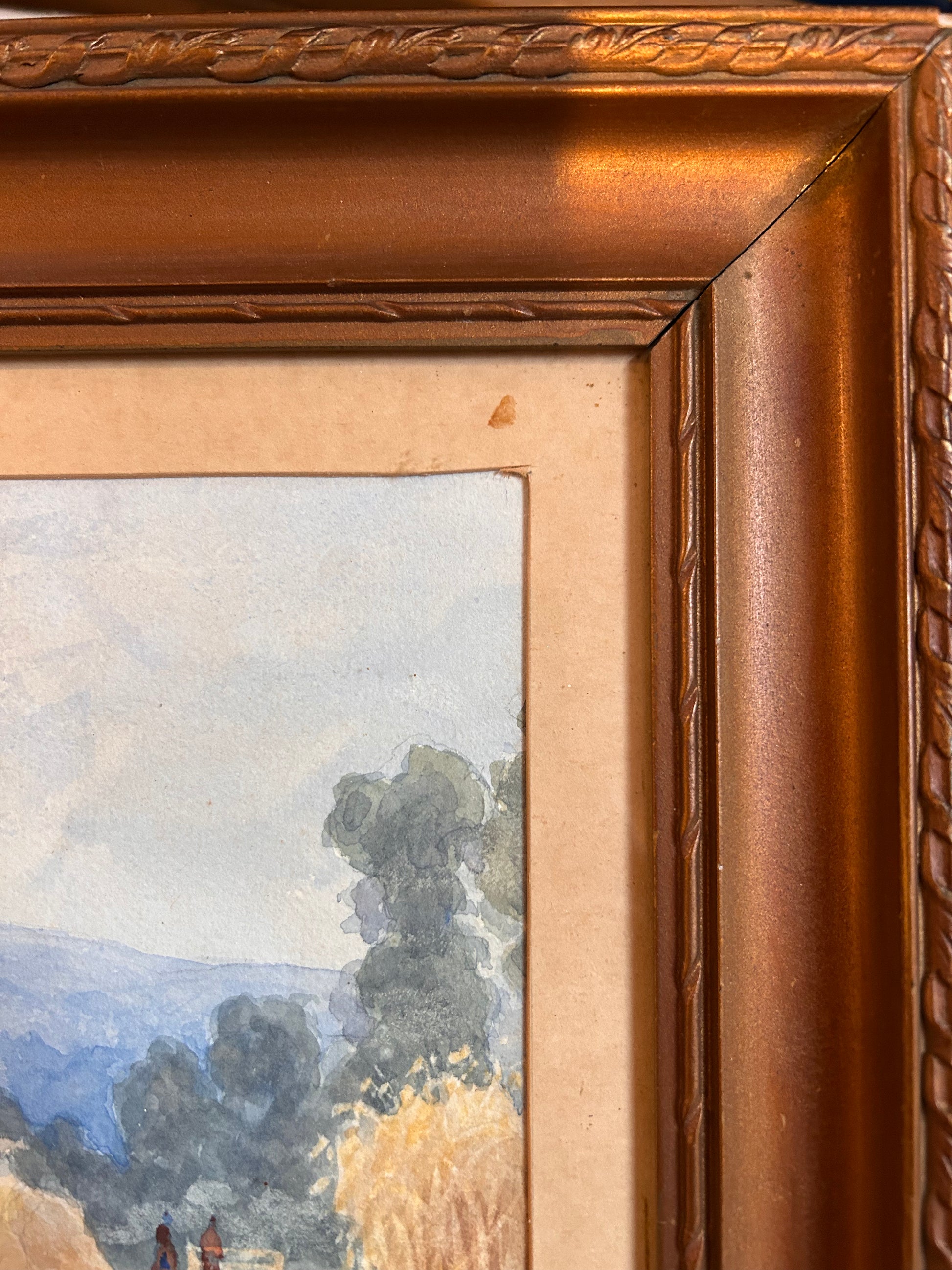 A beautiful watercolour of harvest time in a good frame measuring 44 x 34 cm £195
