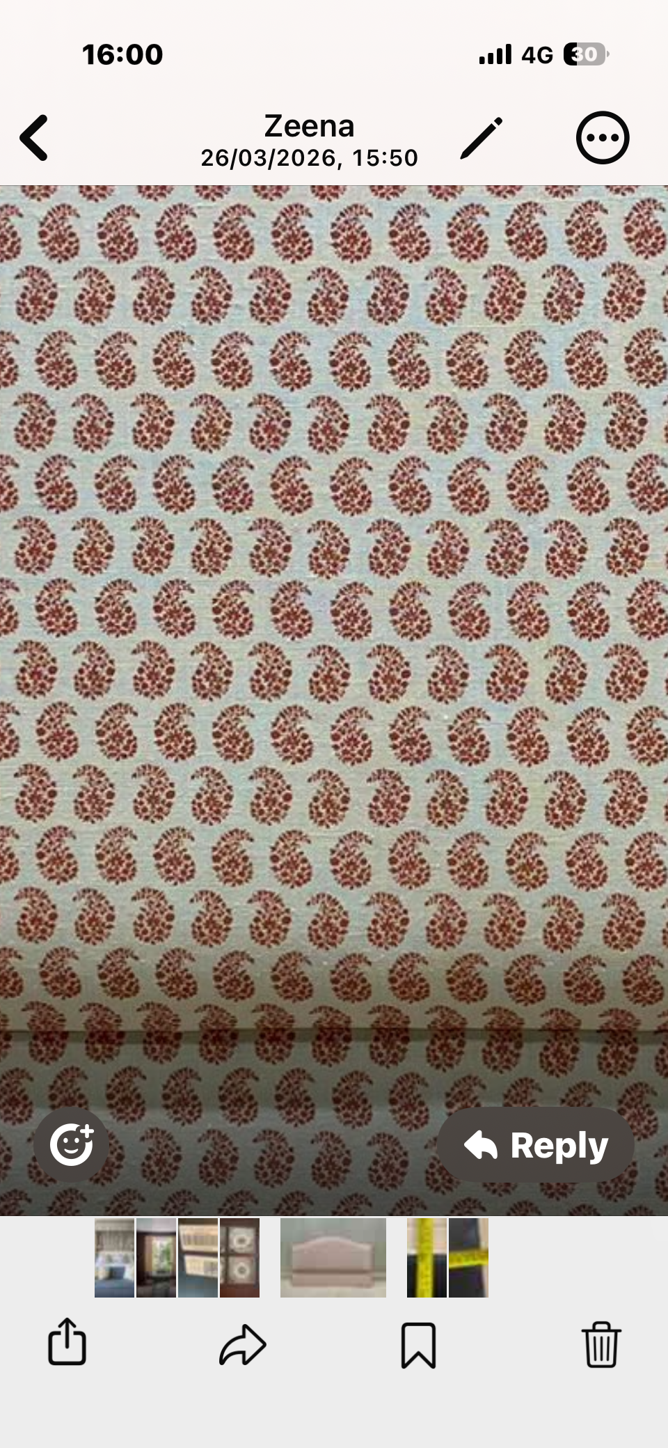 This is a king-size headboard 150 cm wide and it stands at the highest point at 93 cm tall. Very pretty hand block printed material in pristine condition. I also have the valance and a pair of curtains that match this headboard which will be coming up later today/