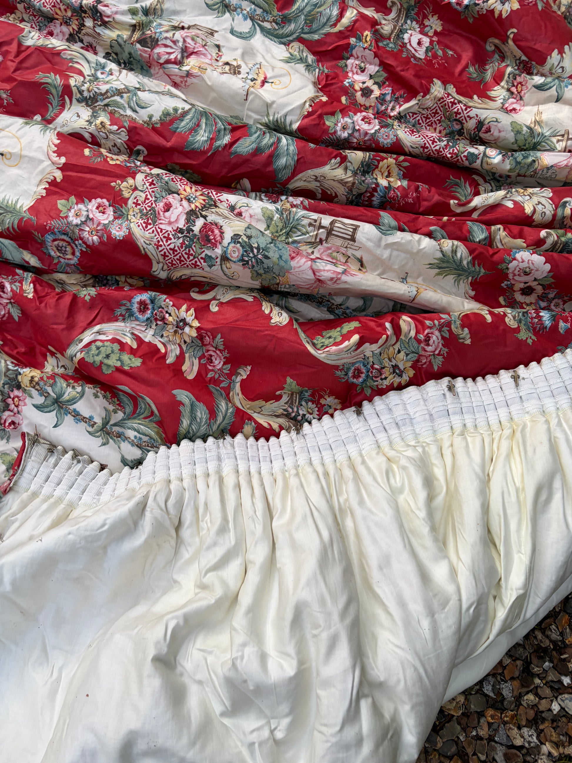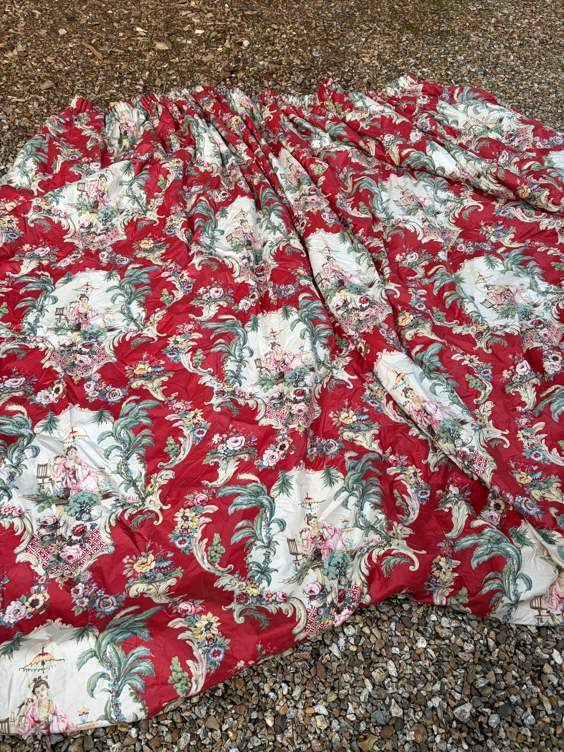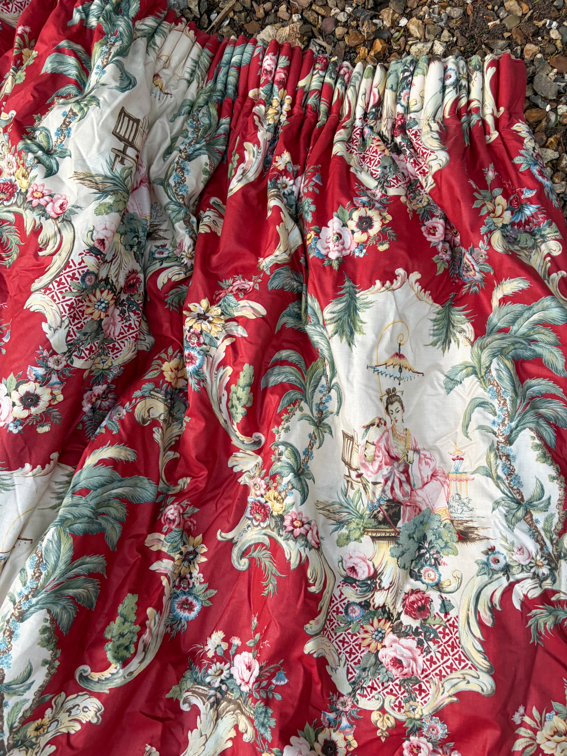 A pair of absolutely vast curtains. Jean Monro. Cotton material, still full of life not faded at all These are enormous! The drop is 265 cm And the gathered top which can be loosened out, it is extremely tightly gathered -measures a whopping 230 cm (each curtain)