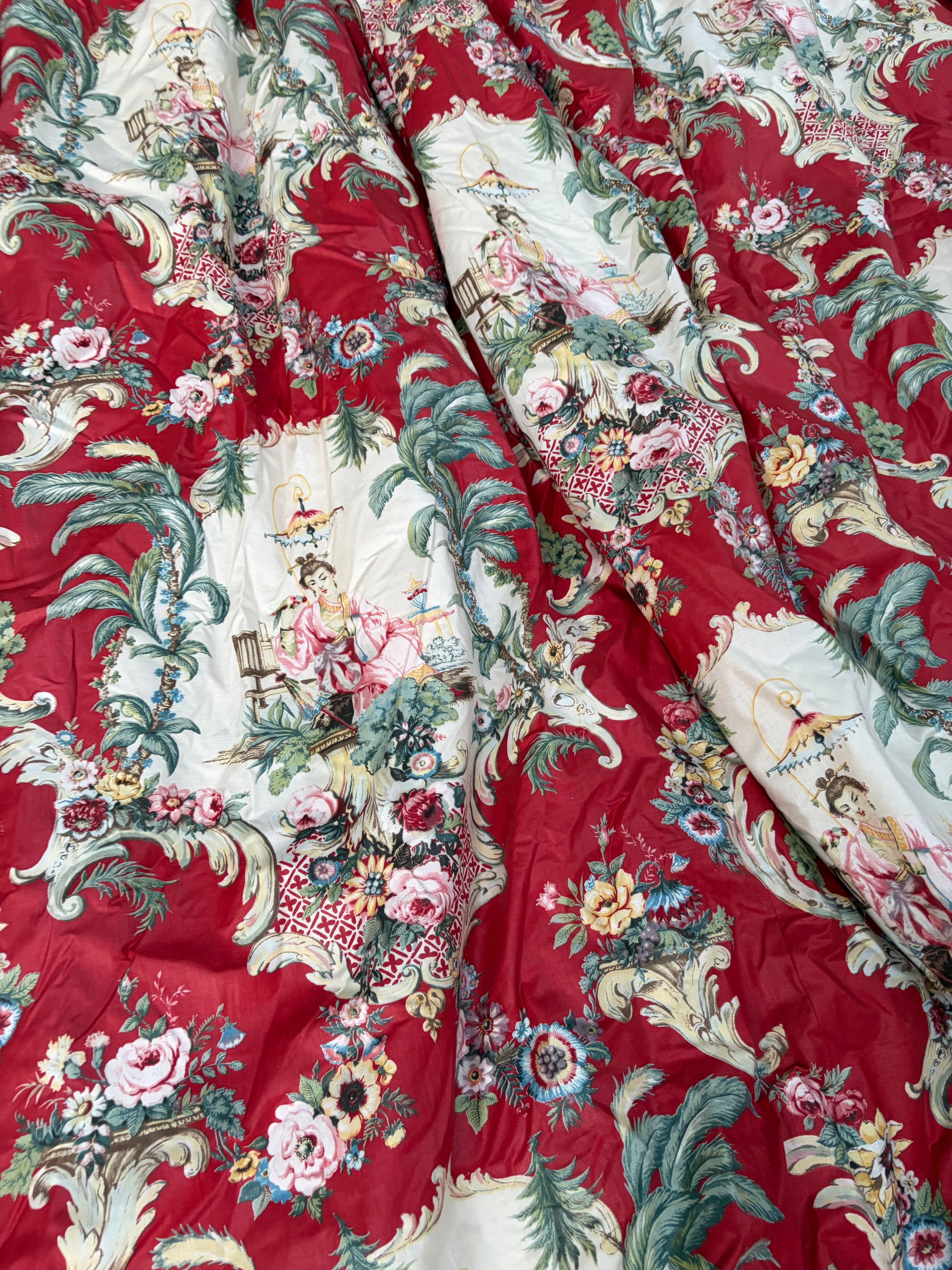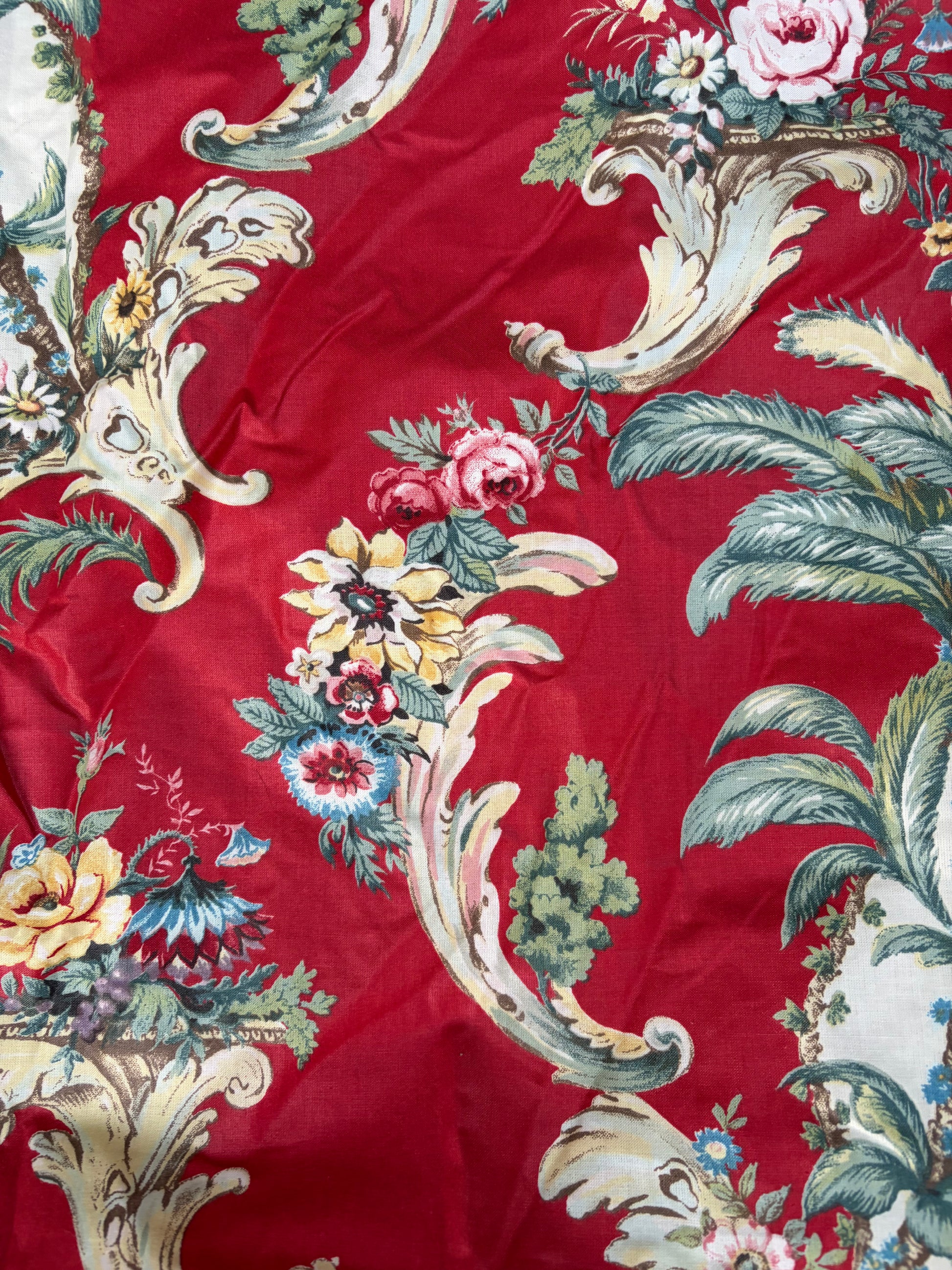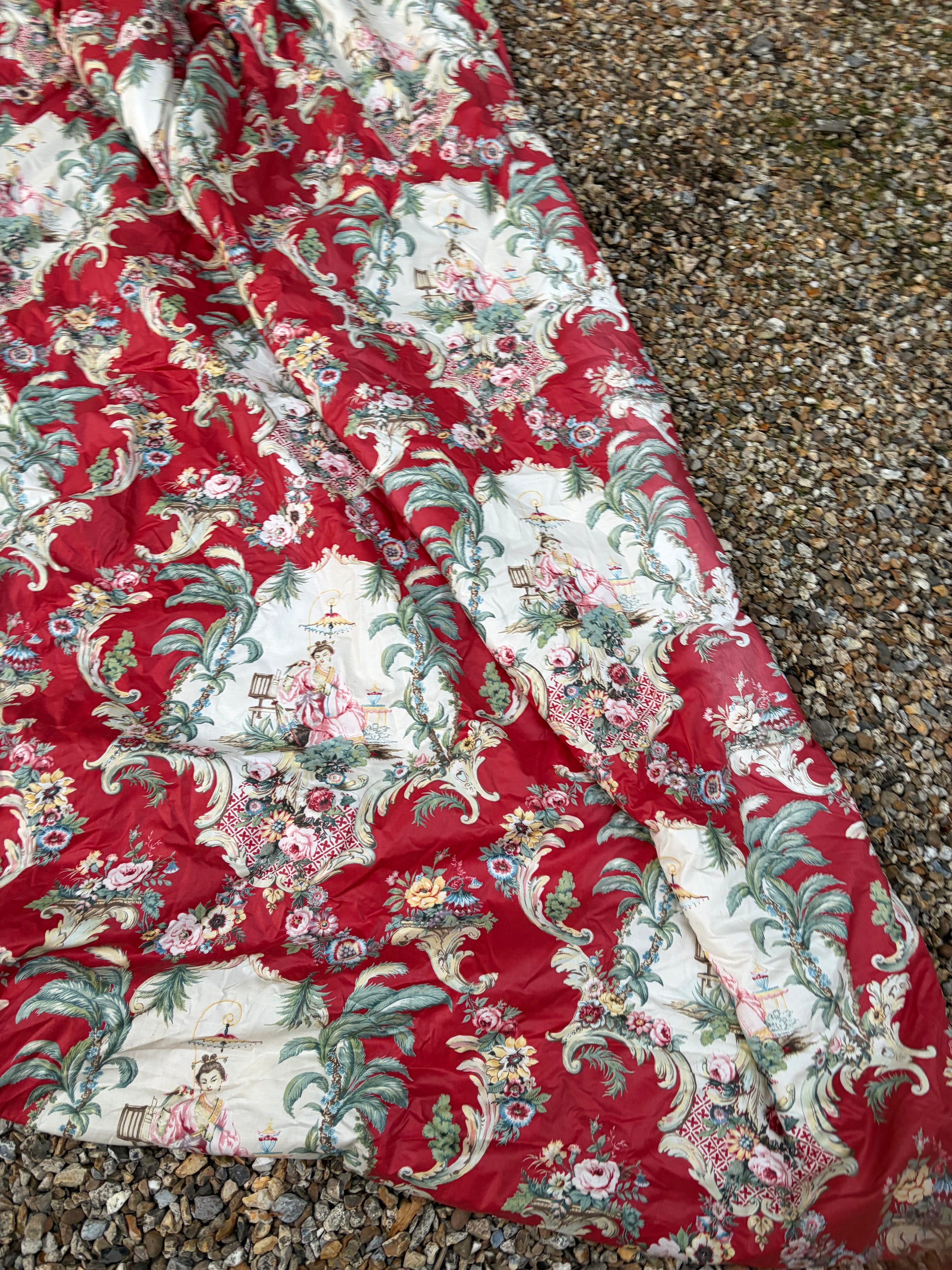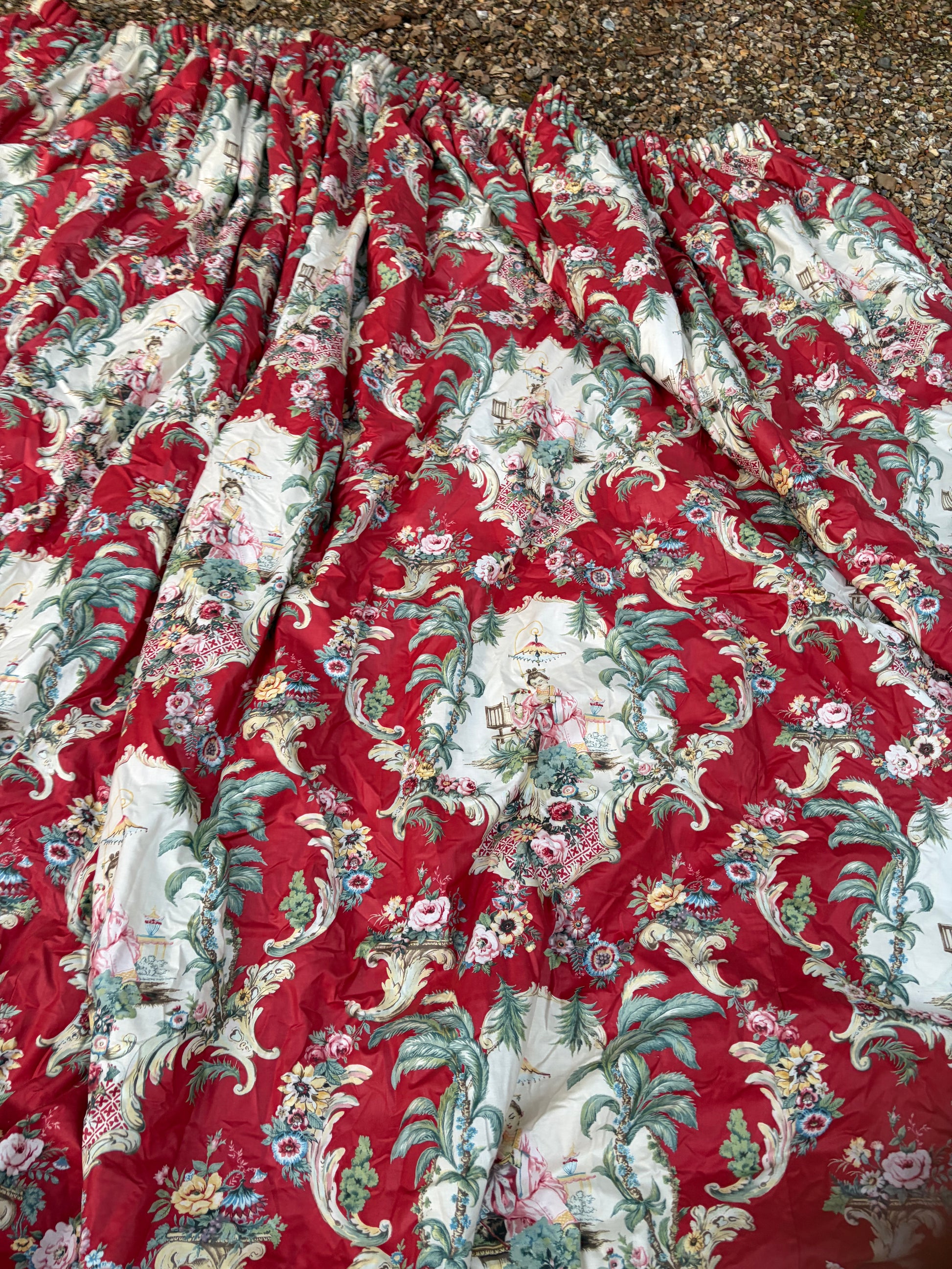 A pair of absolutely vast curtains. Jean Monro. Cotton material, still full of life not faded at all These are enormous! The drop is 265 cm And the gathered top which can be loosened out, it is extremely tightly gathered -measures a whopping 230 cm (each curtain)