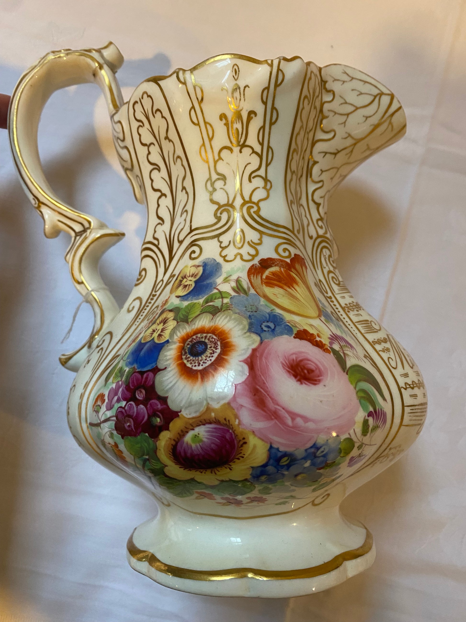 Such a pretty Victorian hand painted jug dating from 1800s.Decorative, especially when holding a bunch of flowers. 24 cm tall £75