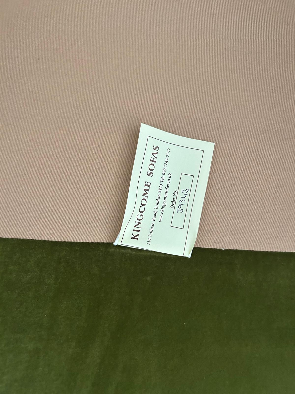 Kingcome Stratford Chair in GP&J Baker Kelway Velvet Olive. Walnut Turned Legs. Seat cushion 70% feather 30% downW85cm x D102cm x H89cm (original cost was £4,320 plus Fabric £585) selling for £2950 / quality and comfort!