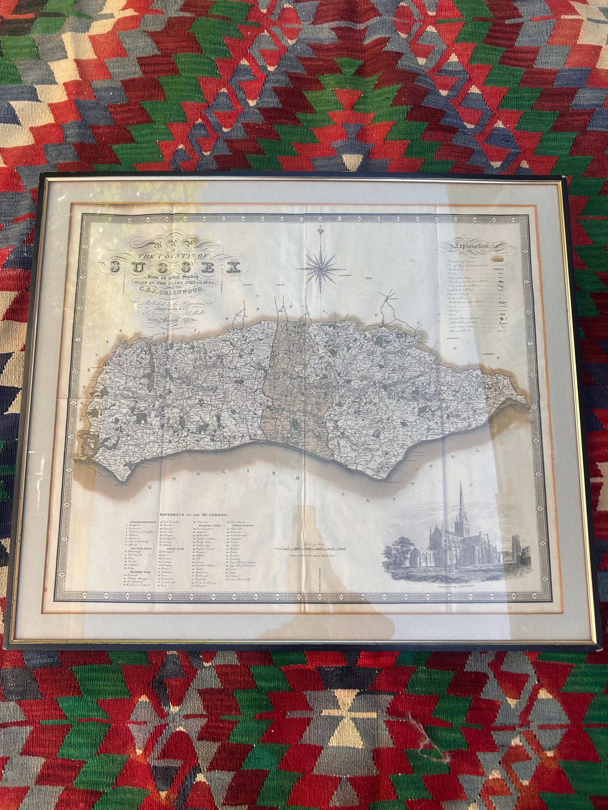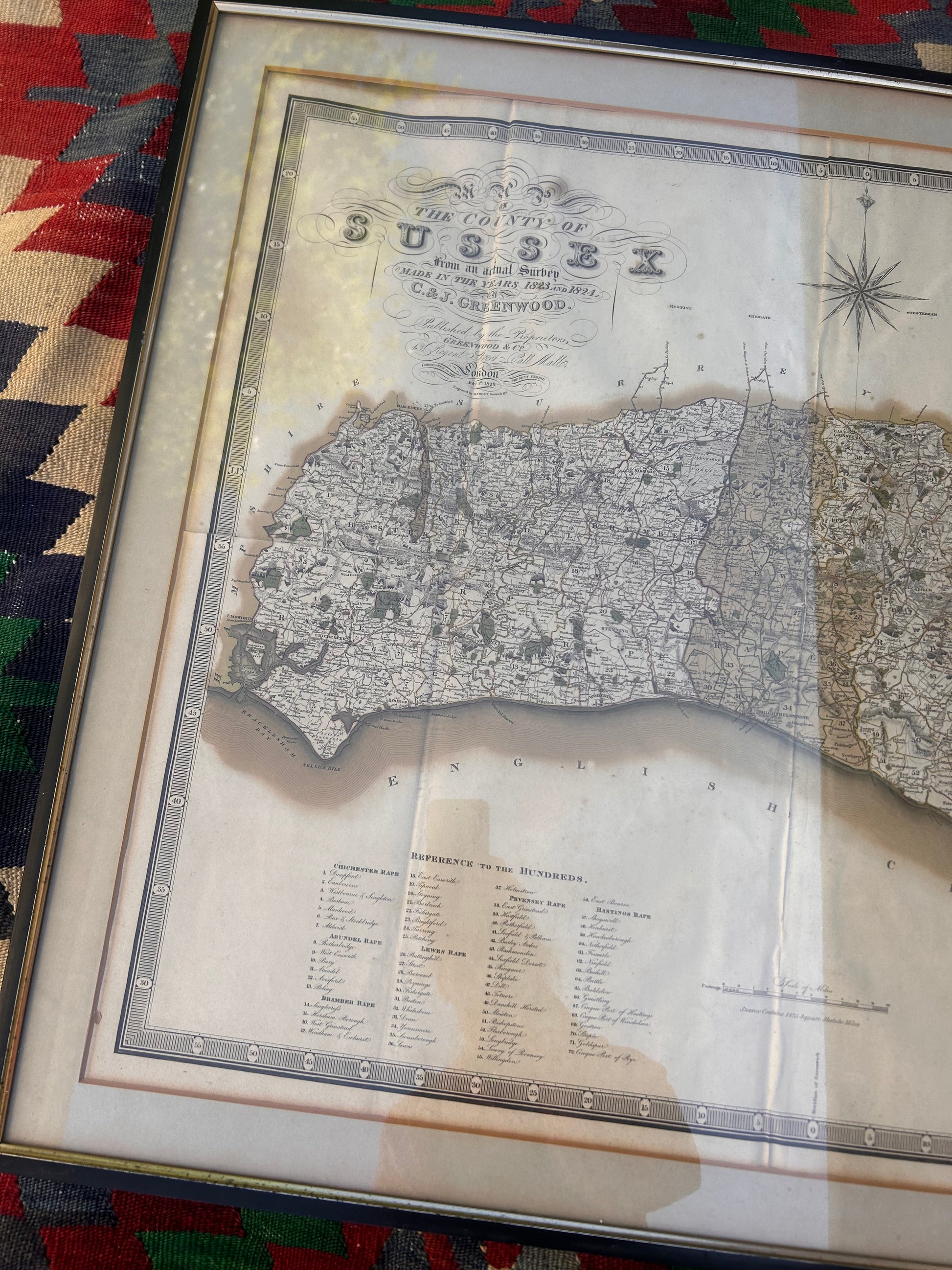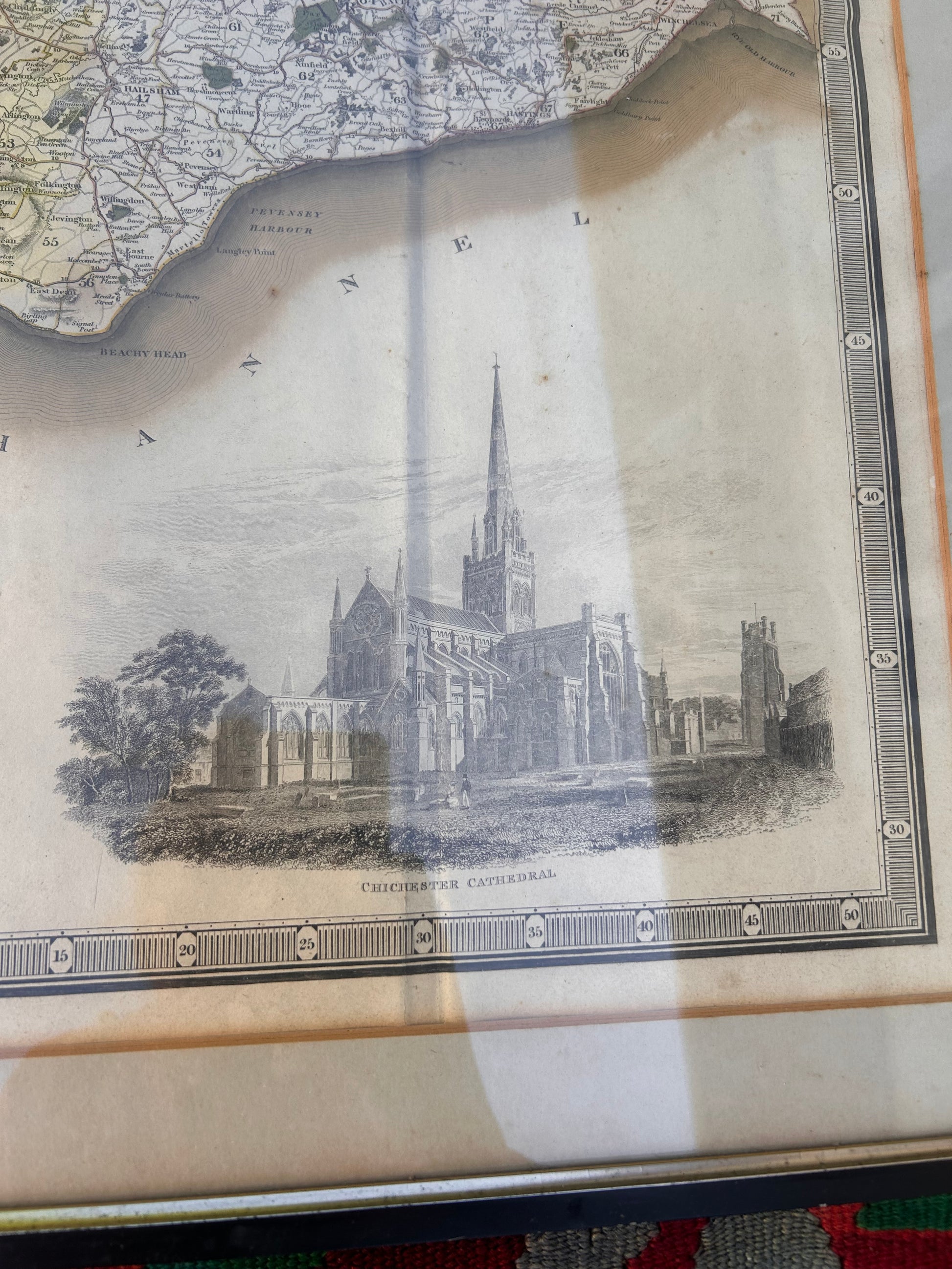 A very old map of Sussex. With details of Chichester Cathedral. It once came from a book but it’s been carefully mounted and frame 82 x 70 cm.