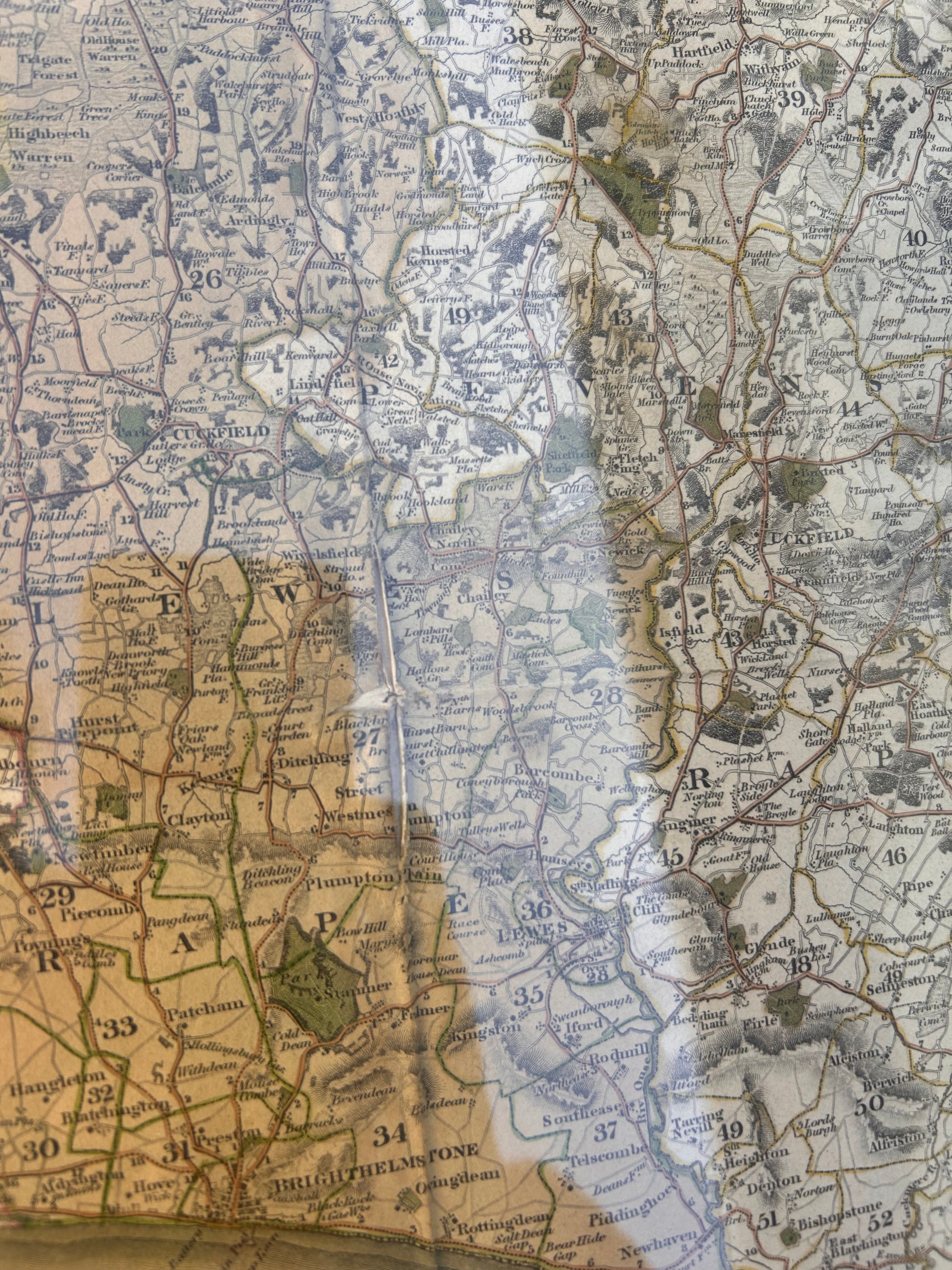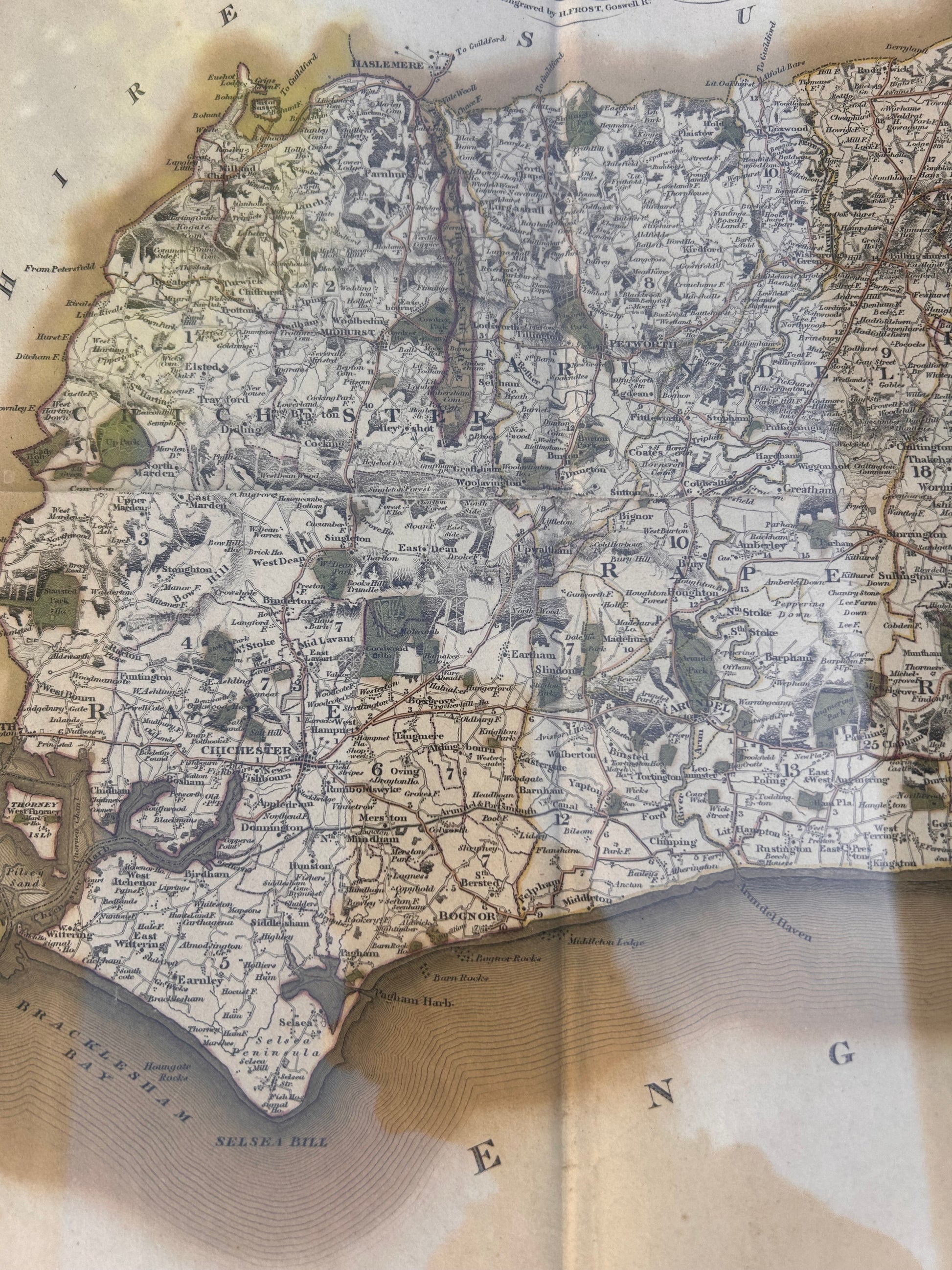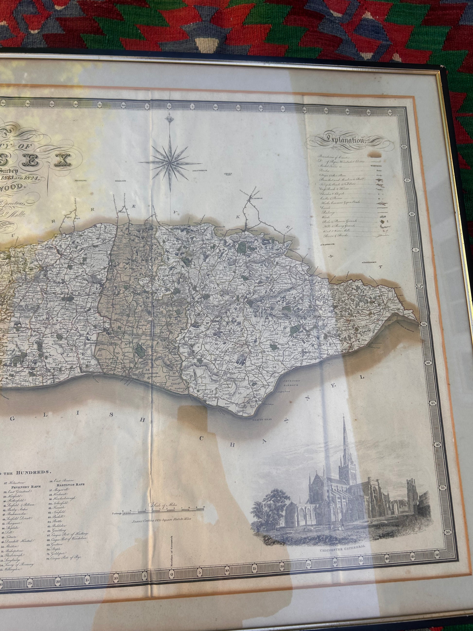 A very old map of Sussex. With details of Chichester Cathedral. It once came from a book but it’s been carefully mounted and frame 82 x 70 cm.