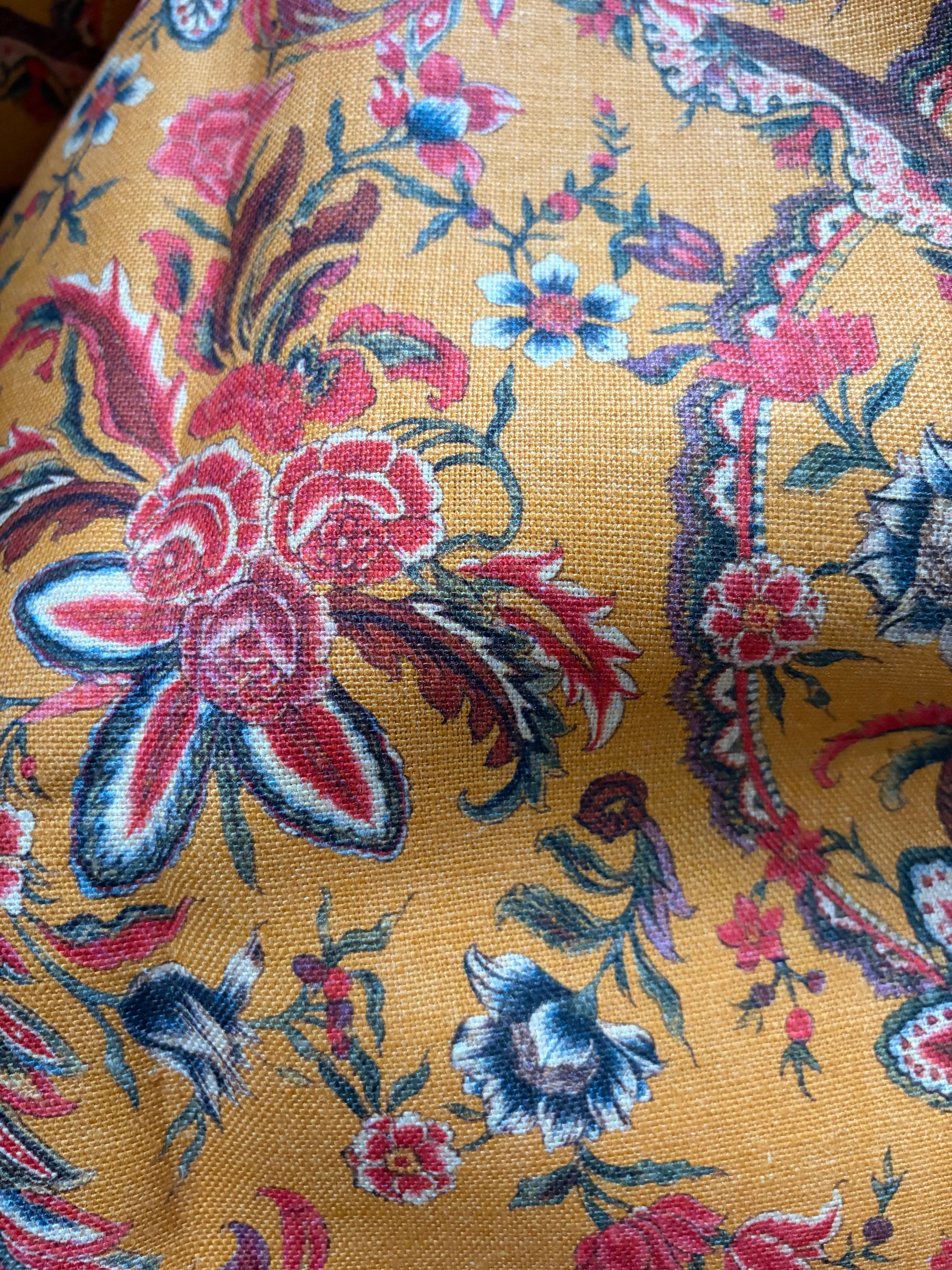 4m Enough of this beautiful heavy mind the gap Woodstock material to upholster a chair and light up a room! Very good quality linen