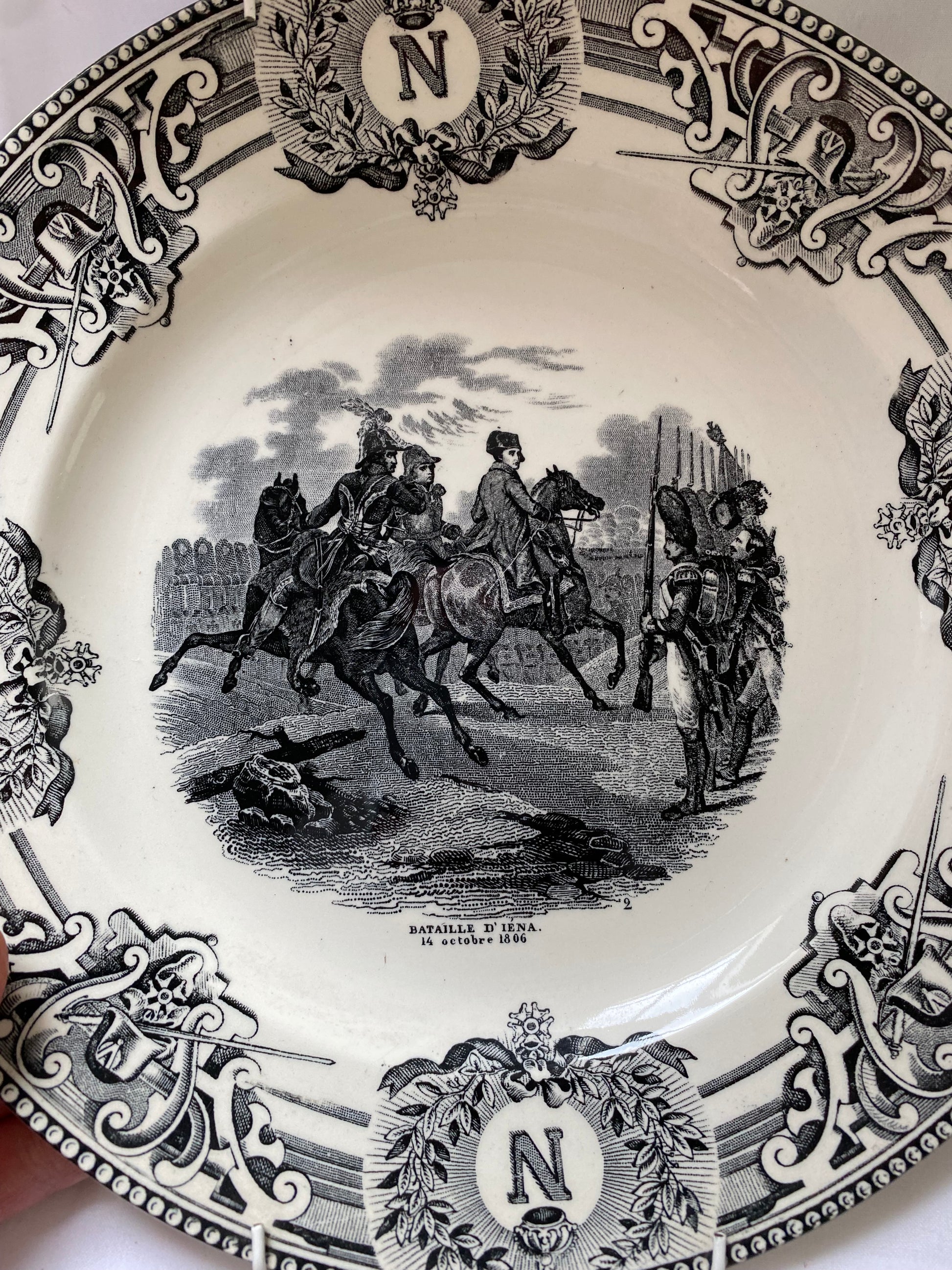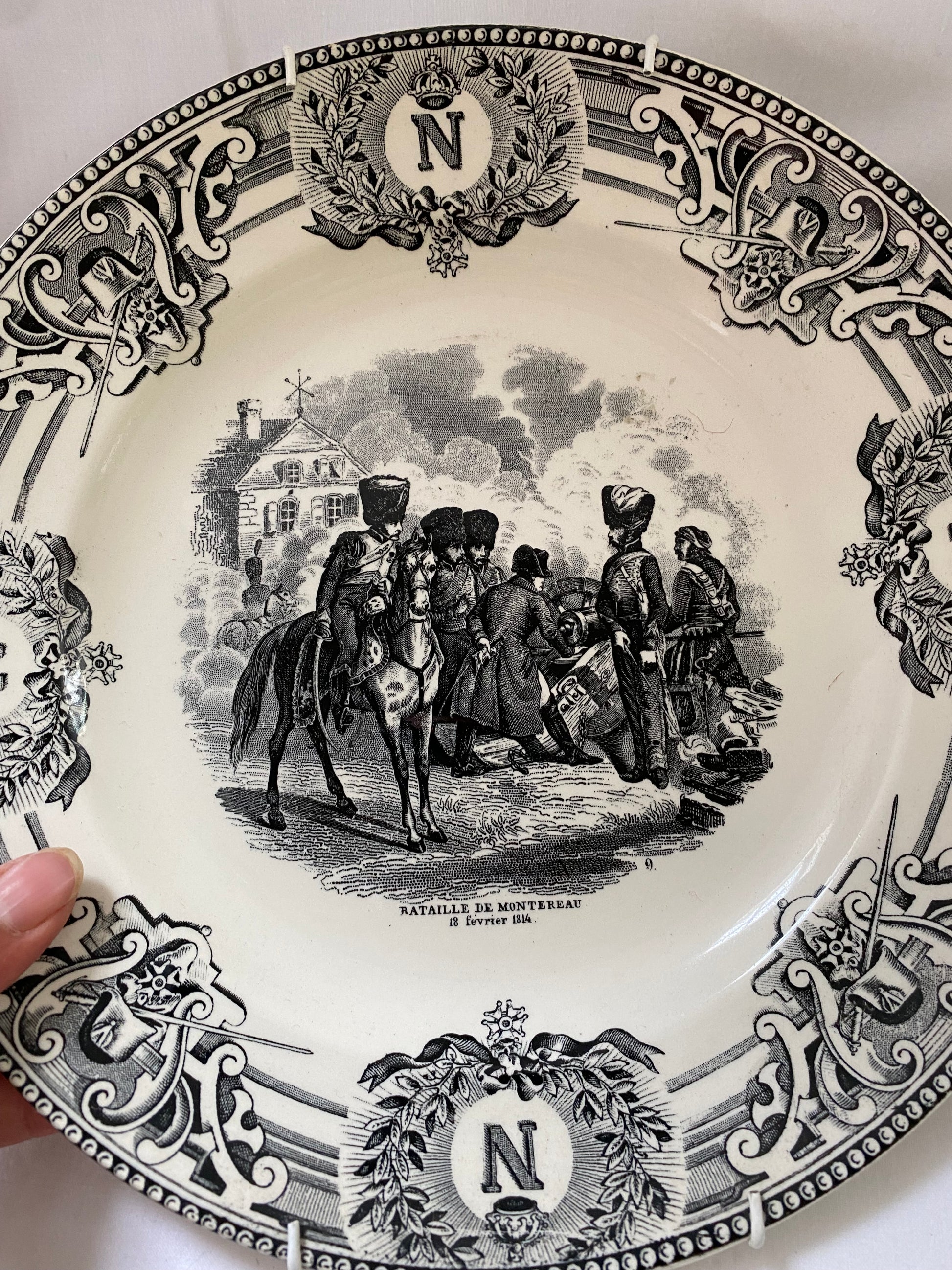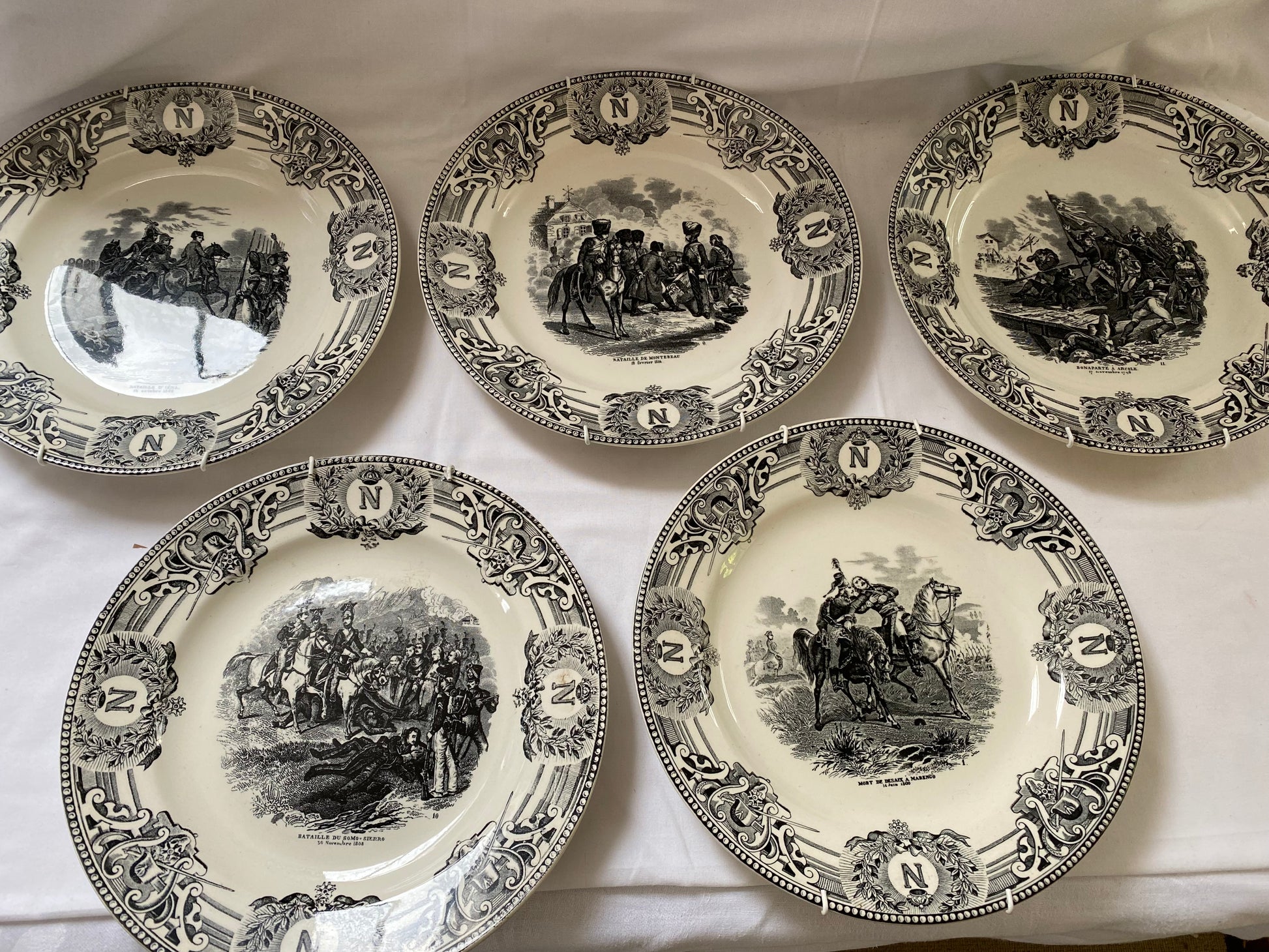 Five plates depicting Napoleons battles, 24 cm with wall mounts.