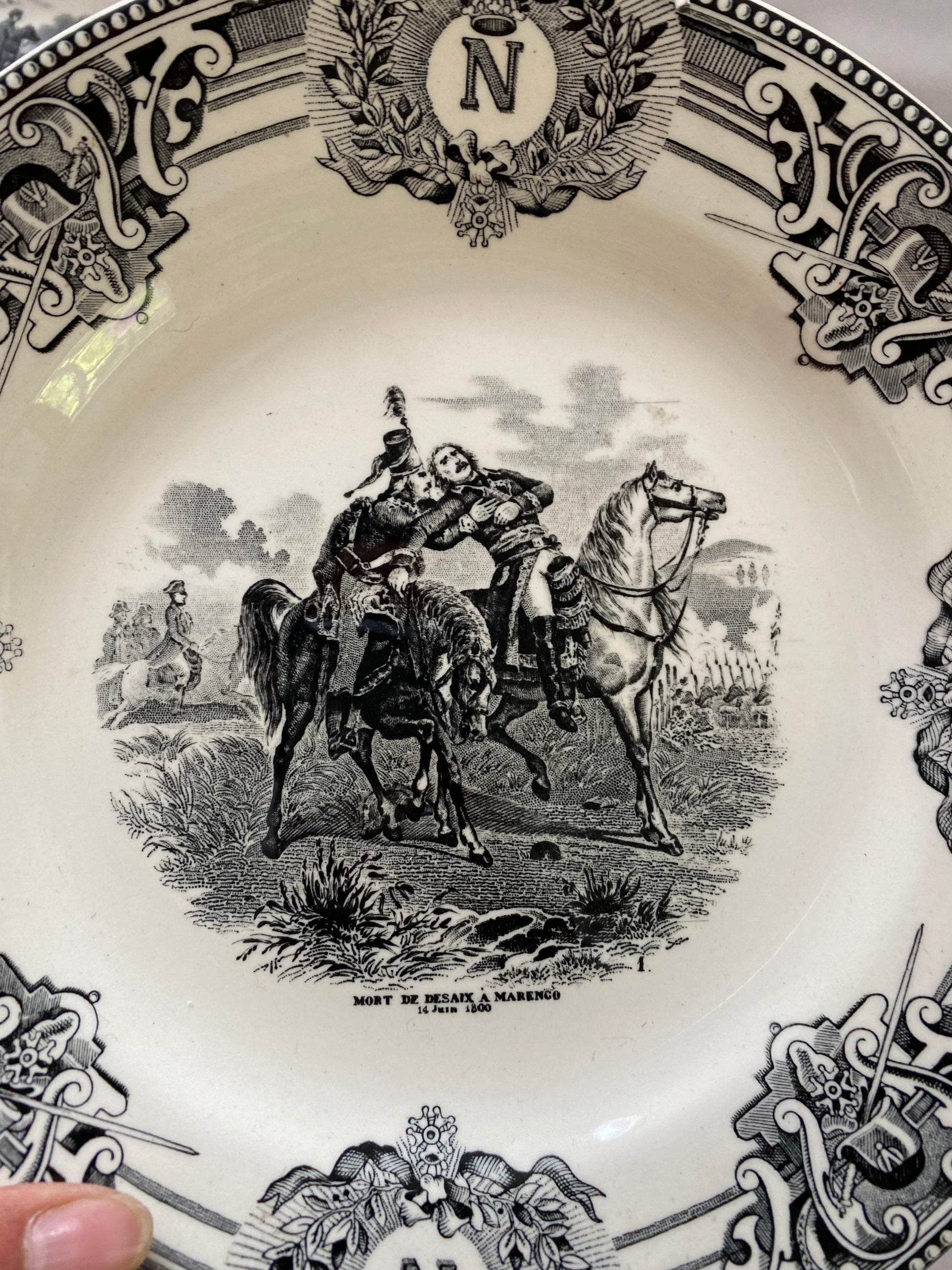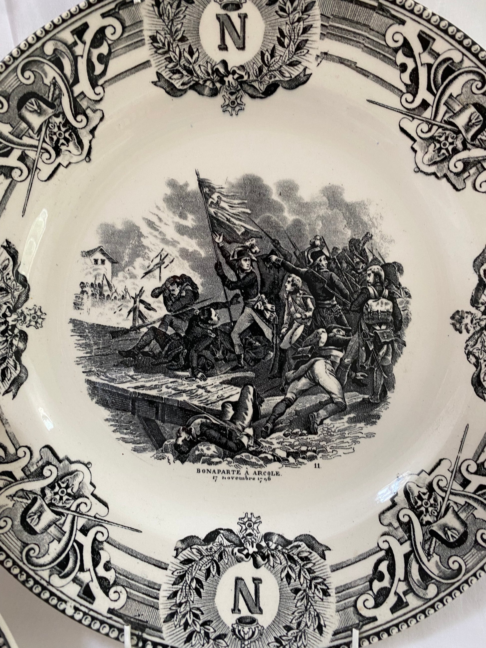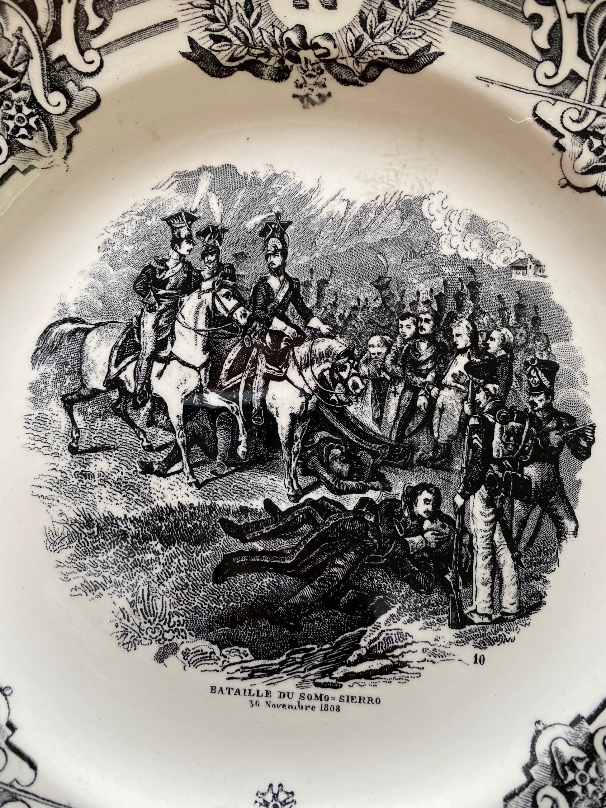 Five plates depicting Napoleons battles, 24 cm with wall mounts.