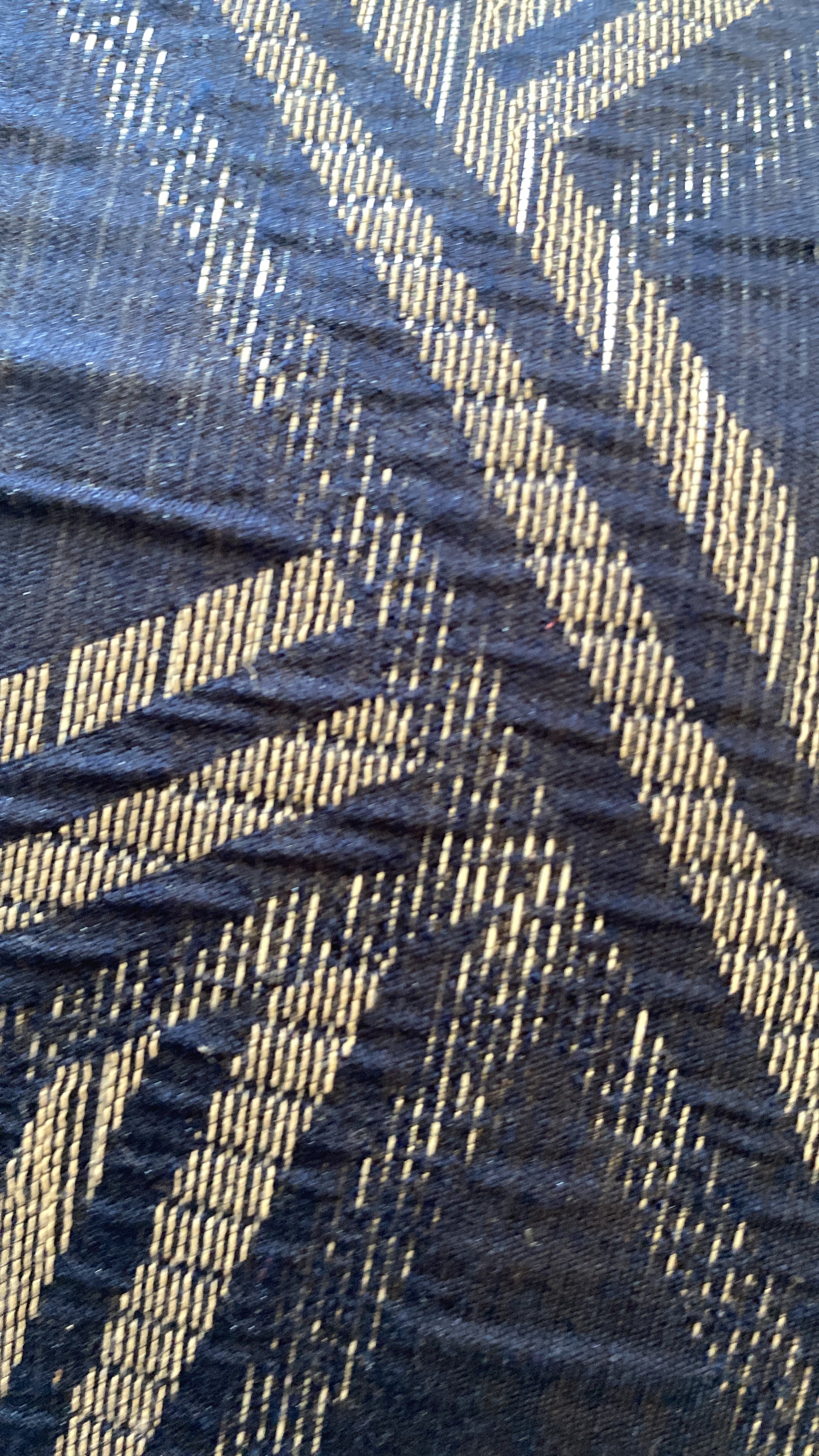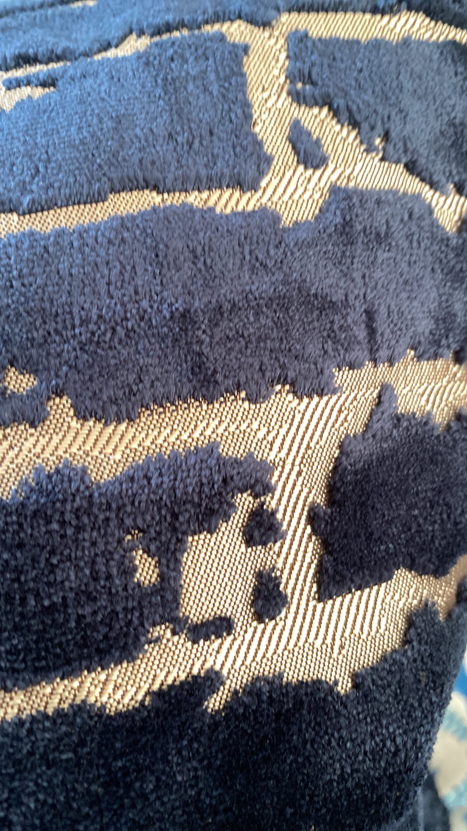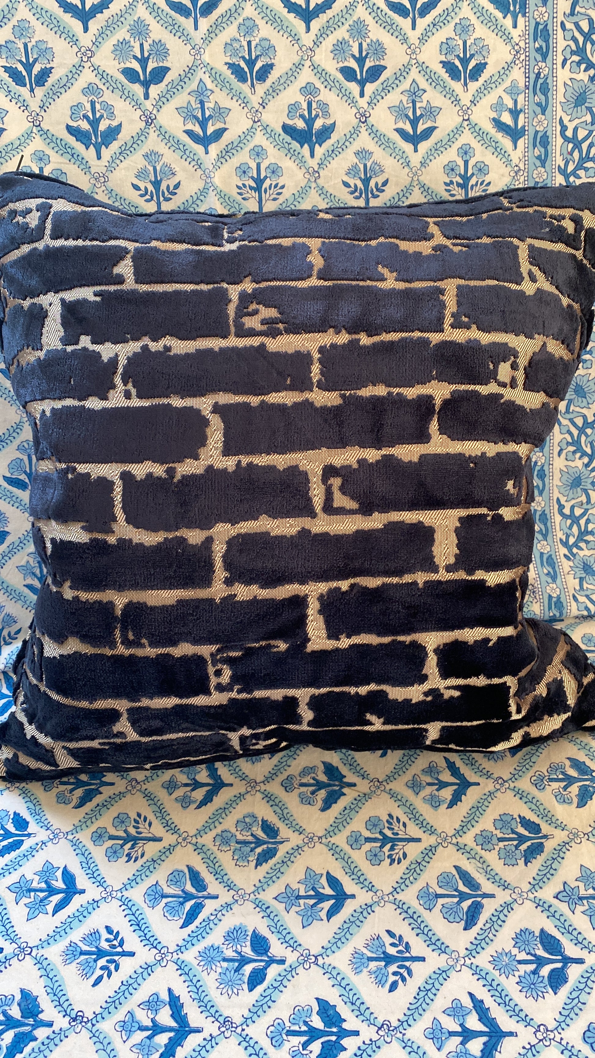 A pair of large navy blue and silver padded feather padded cushions. These are 45 cm²