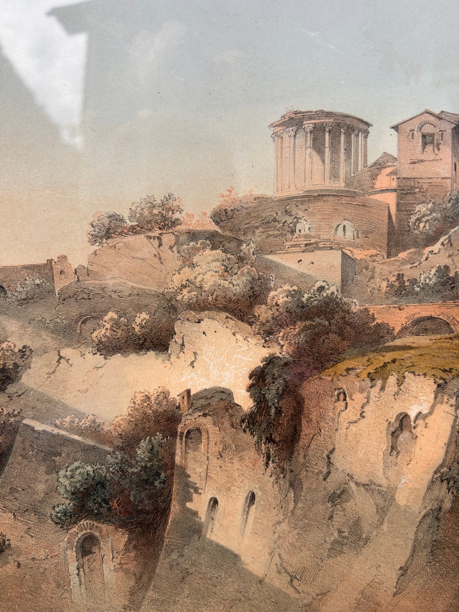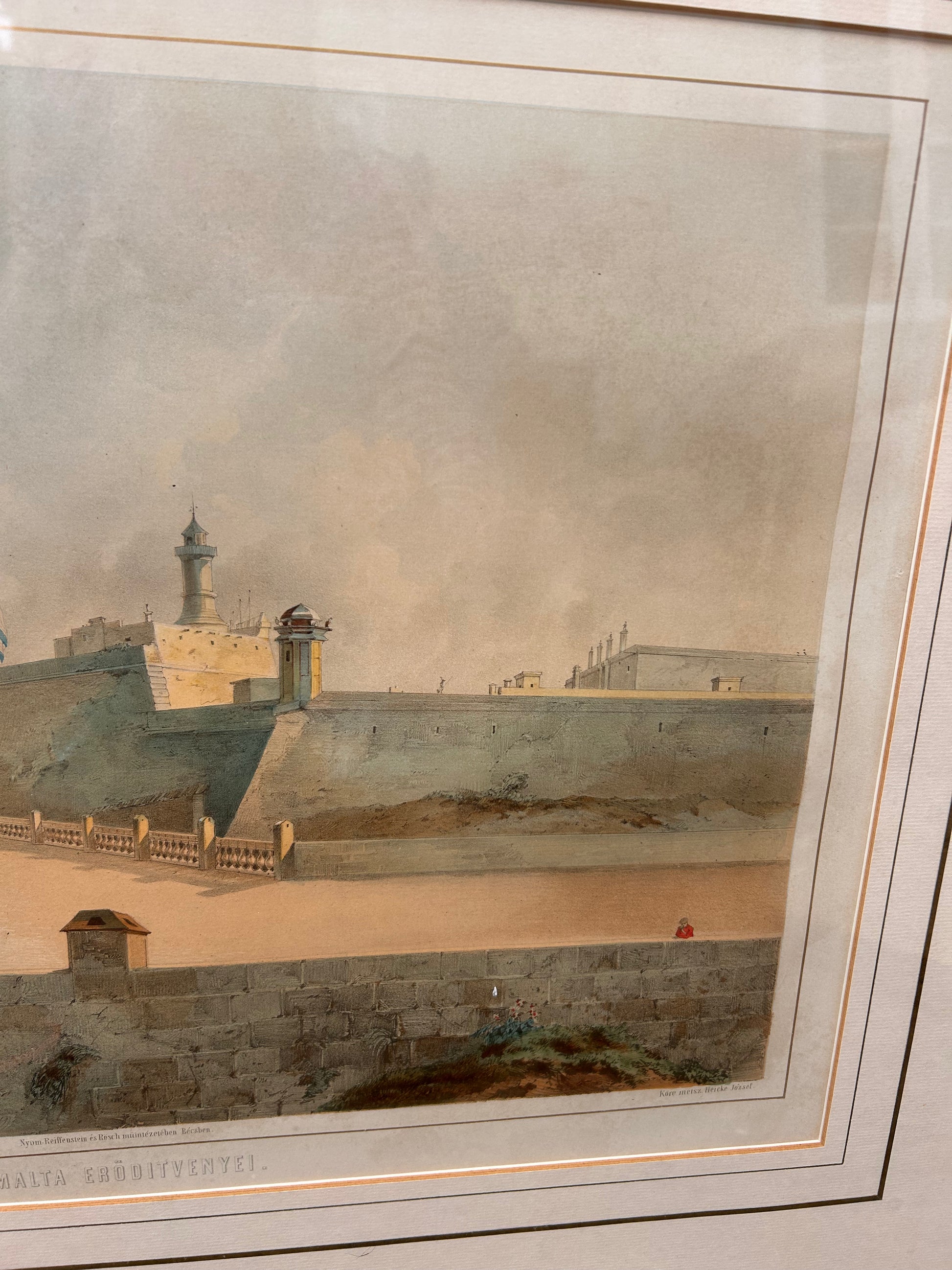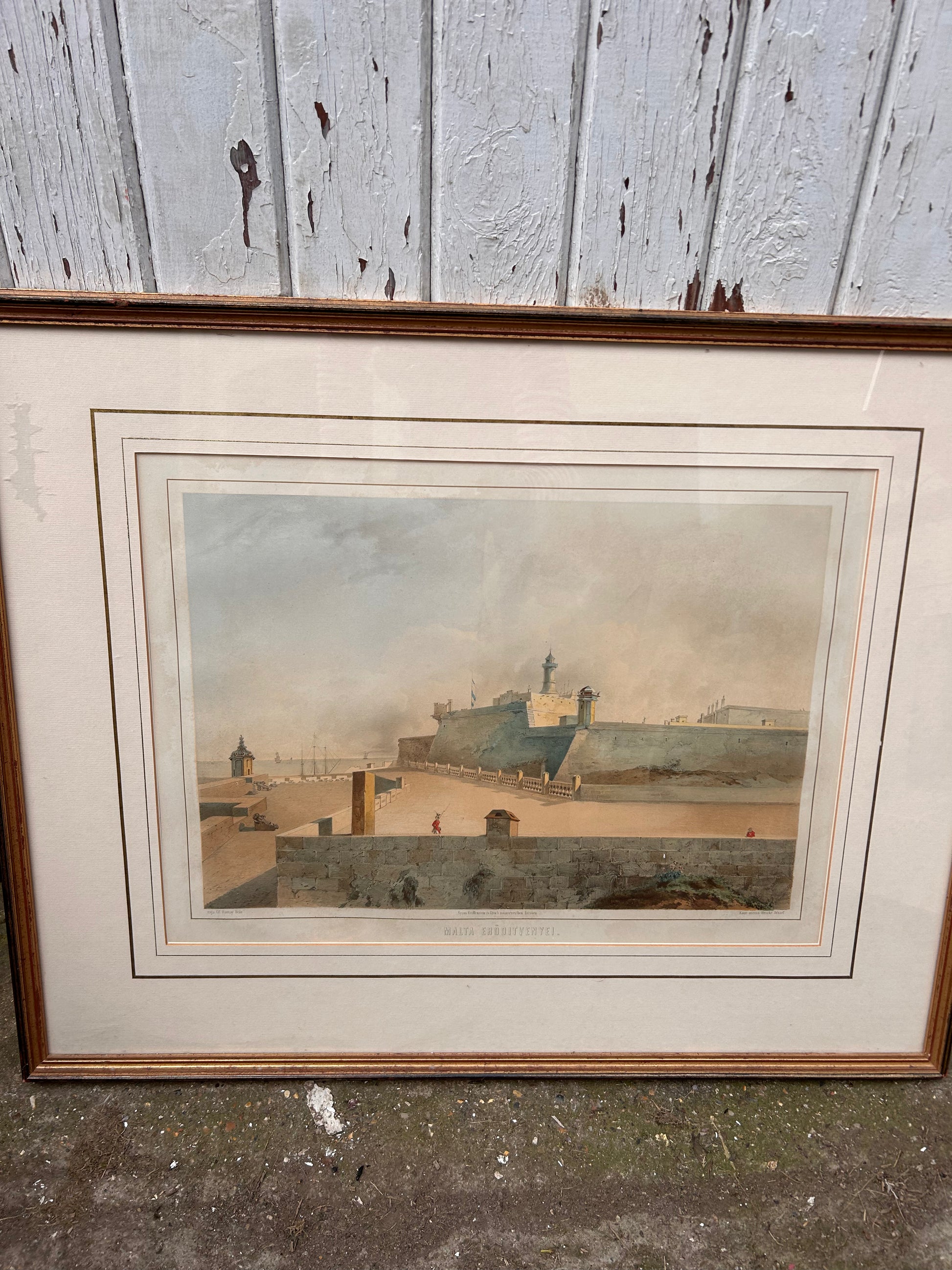 A lovely pair of prints which are in handsome frames. One is a Malta, the harbour 72 x 57 cm. The other one is Tivoli and this one is vertical rather than horizontal measuring 70 x 56 cm.