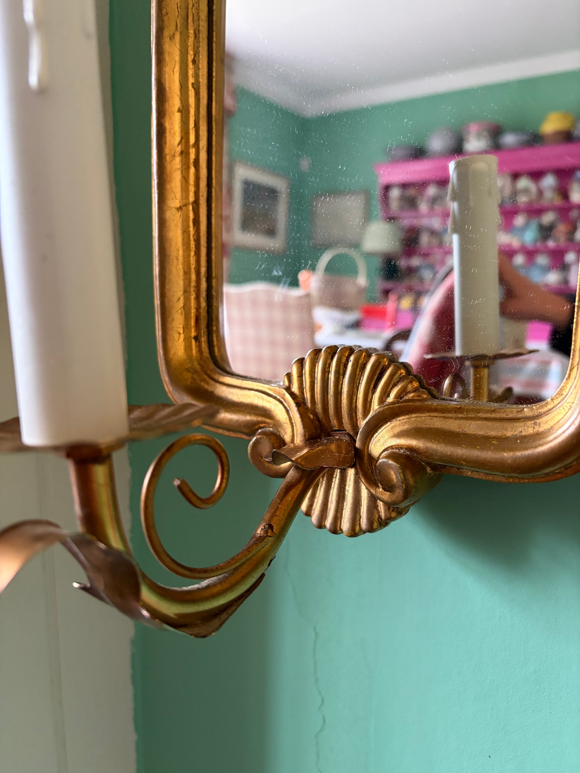 31 cm in length 20 cm wide and the projection from the wall is 19 cm - A pair of mirrored wall sconces which are wired up and ready to be attached to the wall. They are PAT tested