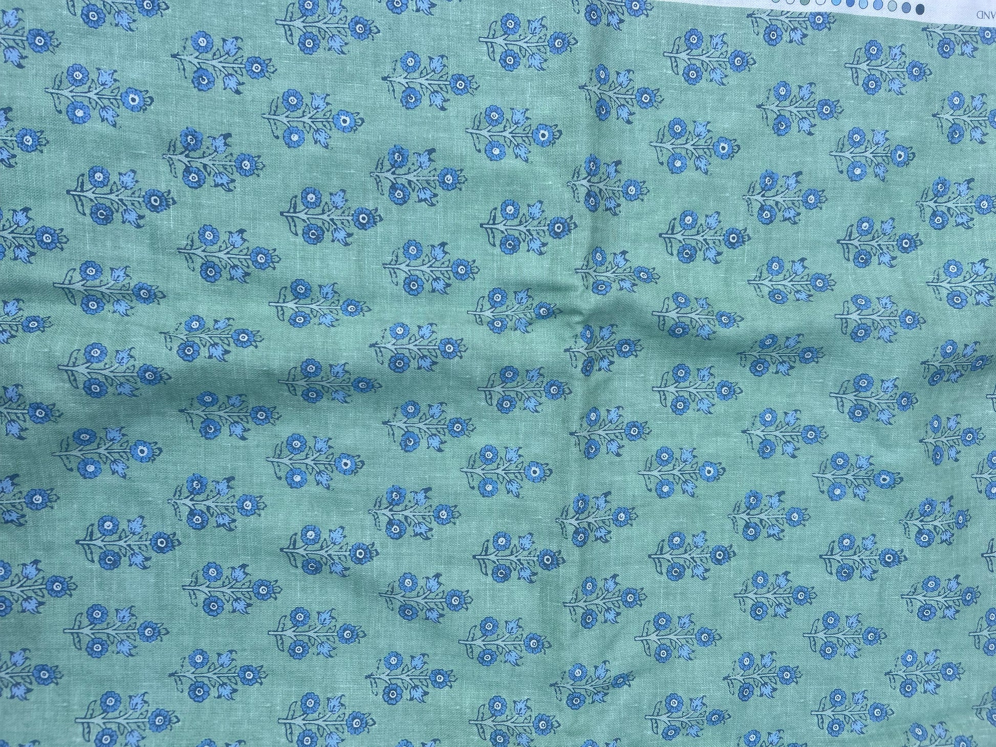 SEVEN m of heavy upholstery linen Poppy sprig in green and Blue from GP & J Baker £450