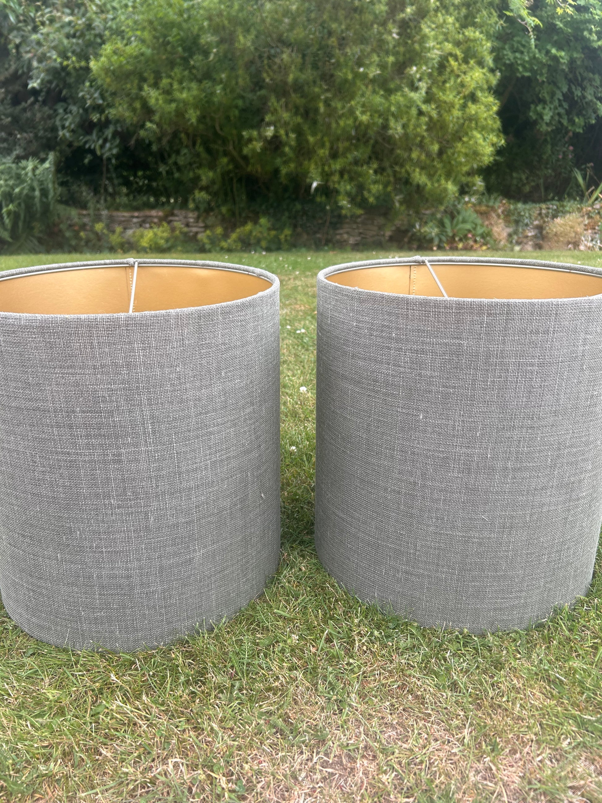 Fabulous heavyweight linen lampshades. Excellent quality the height is 38 cm and the width is 37 cm.