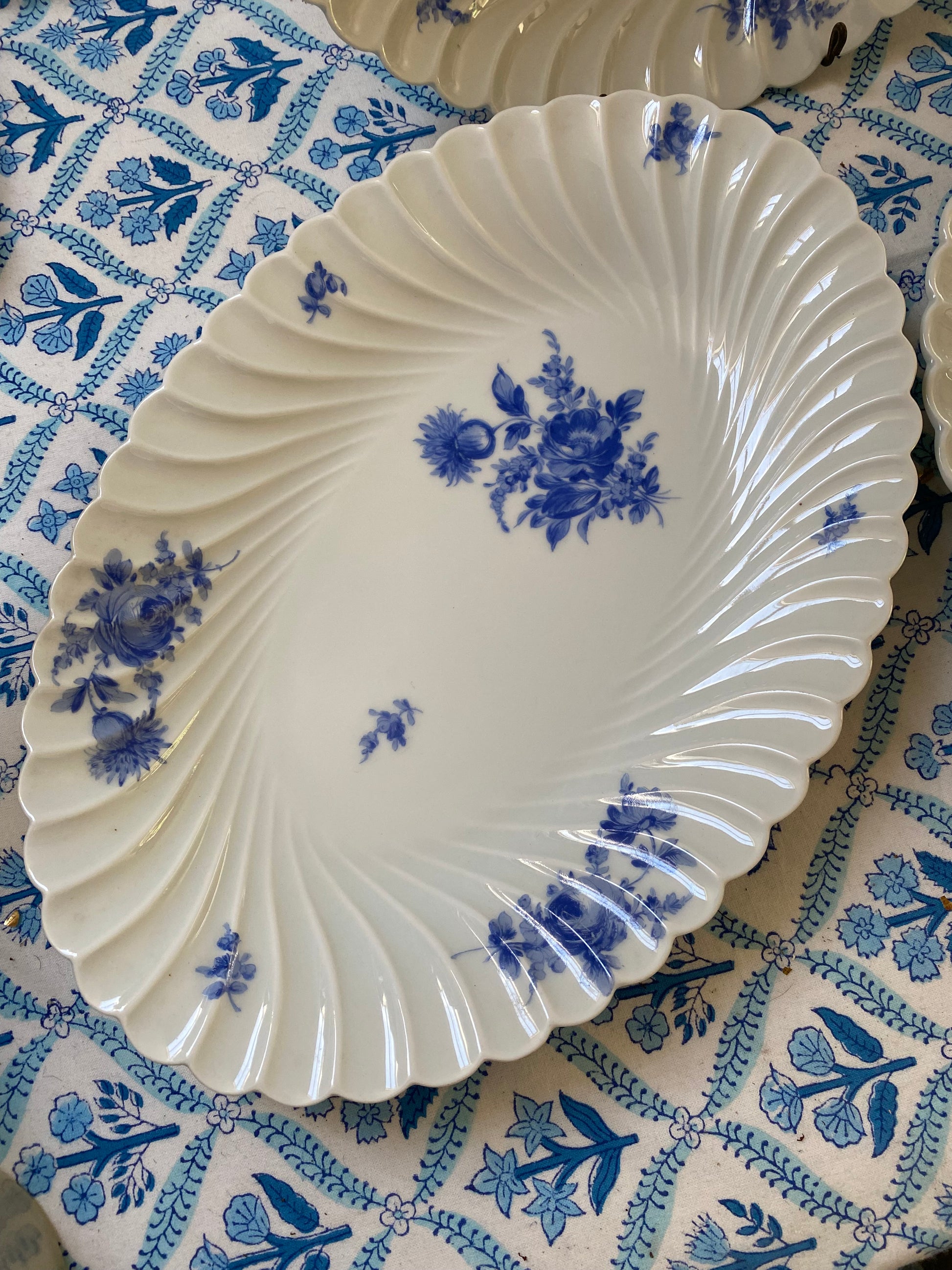 Three large Haviland France Limoges serving plates. Absolute pristine condition, the plate is 32 cm. The bowl is 32 cm with a depth of 5 cm and the oval is 35 cm with a depth of 4 cm. £50 for all 3