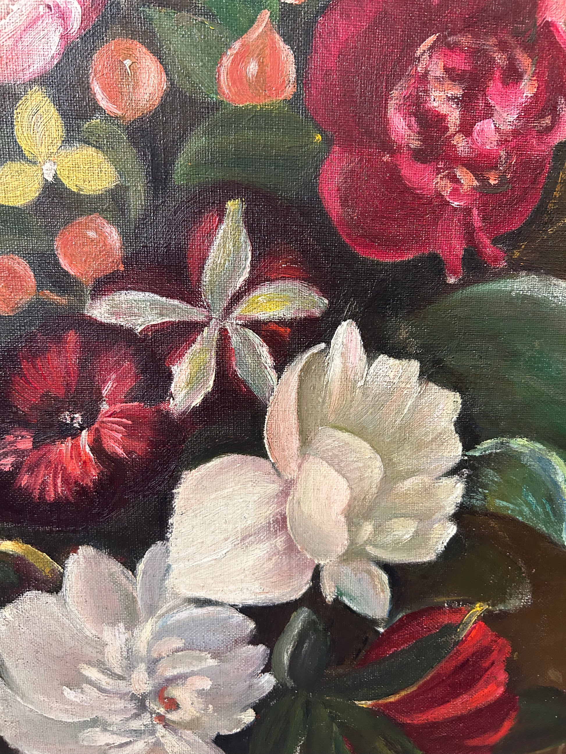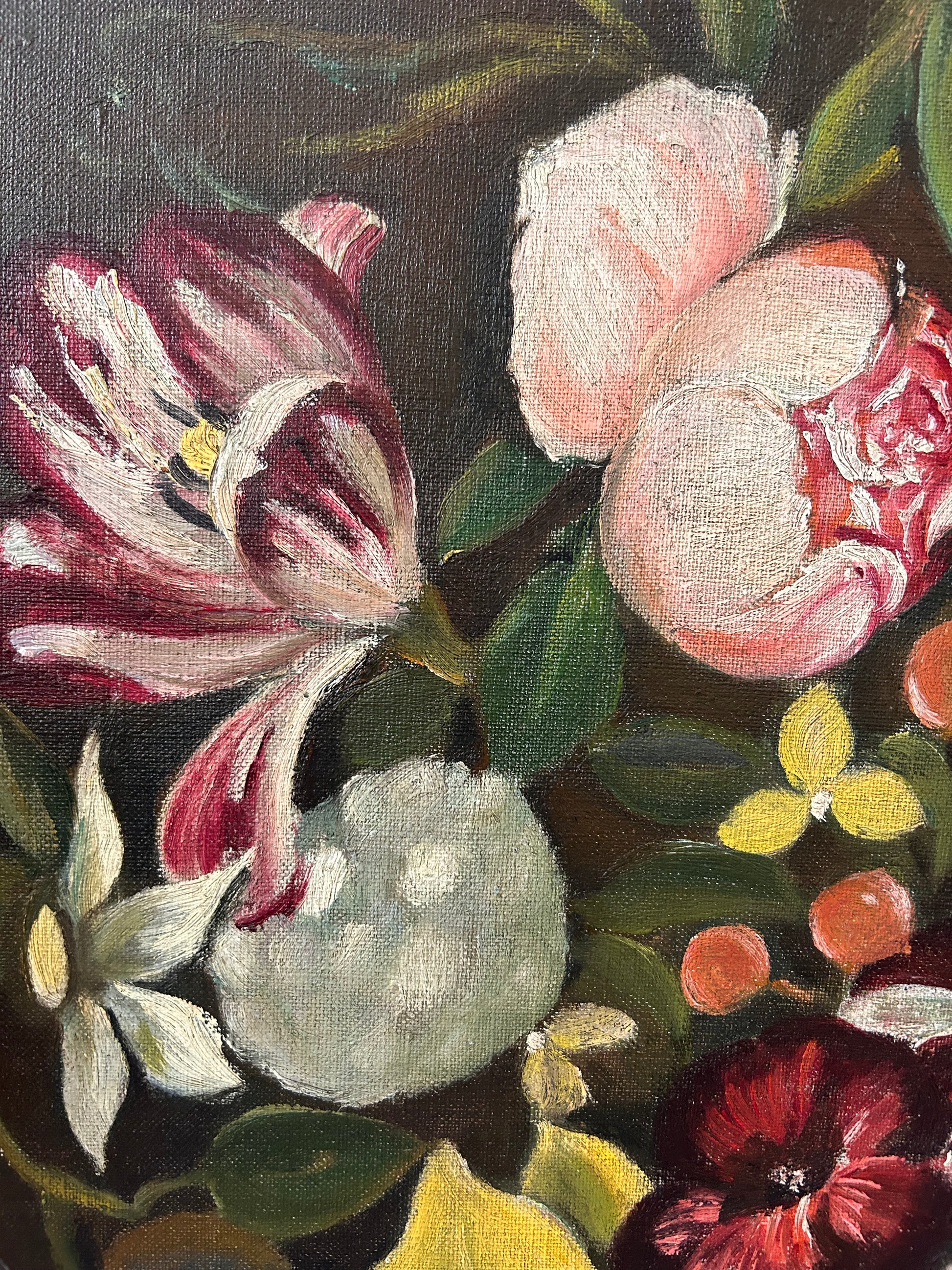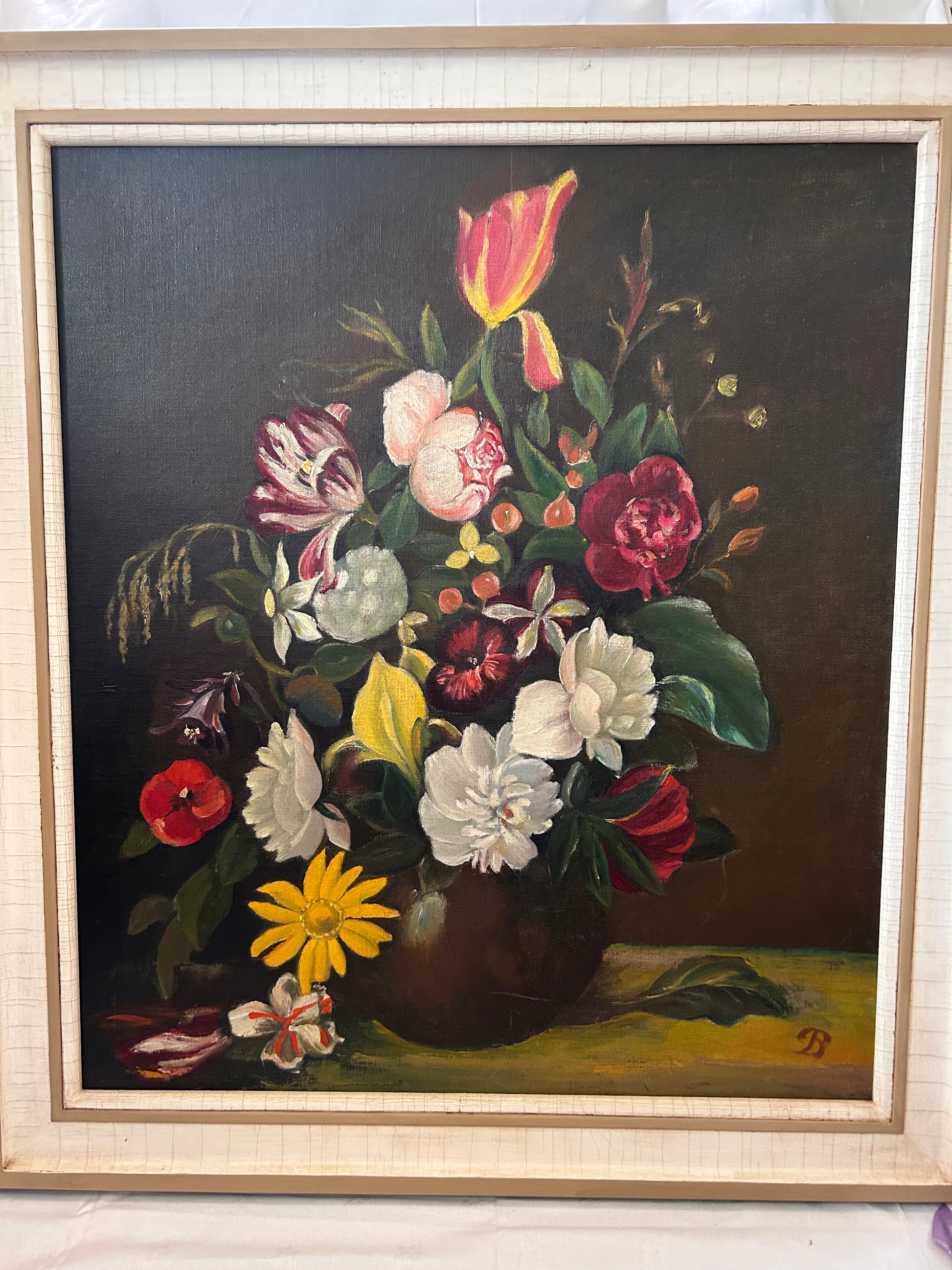 Beautifully framed still Life. It’s very large 84 cm x 95 cm. Oil on board.