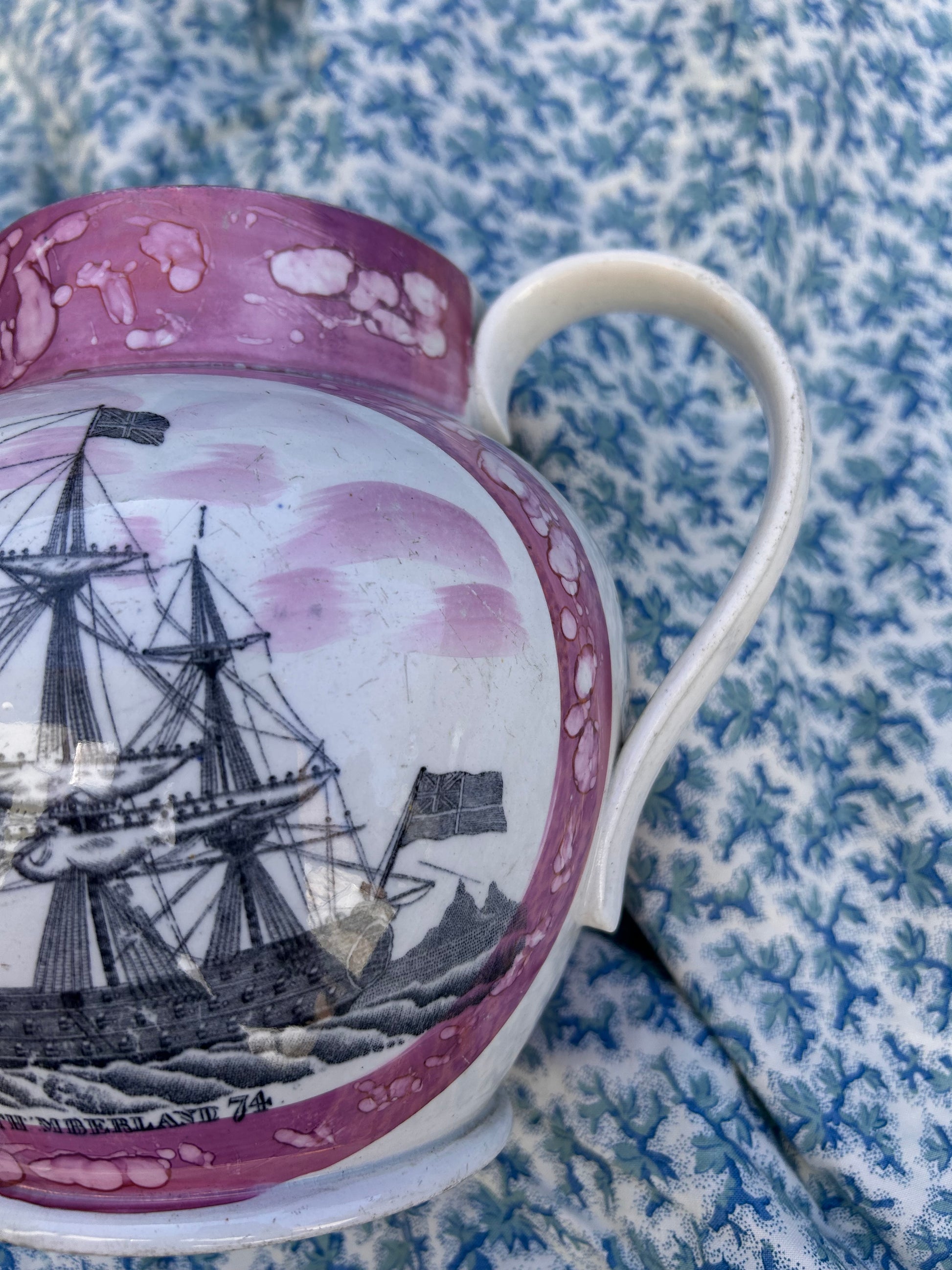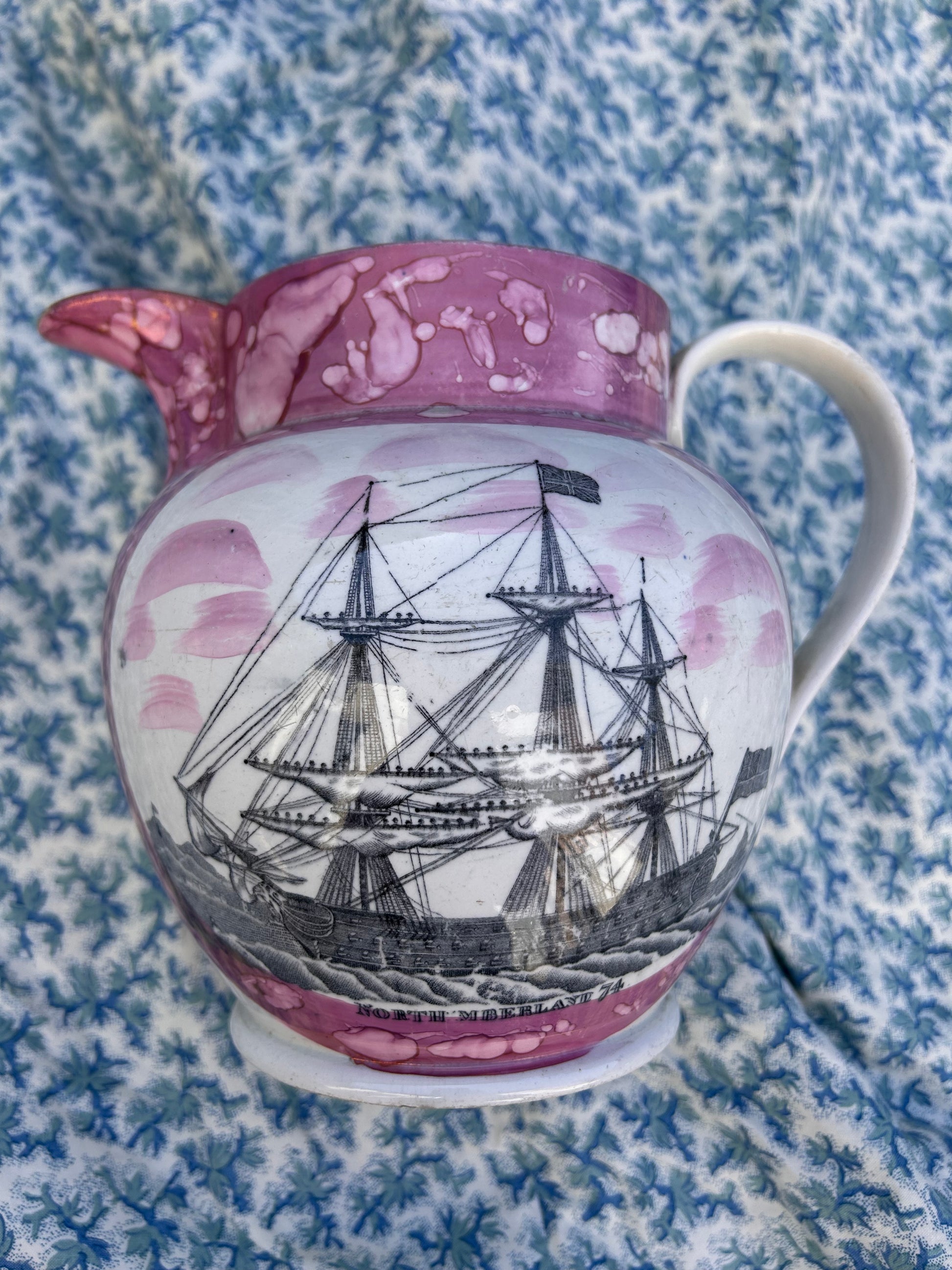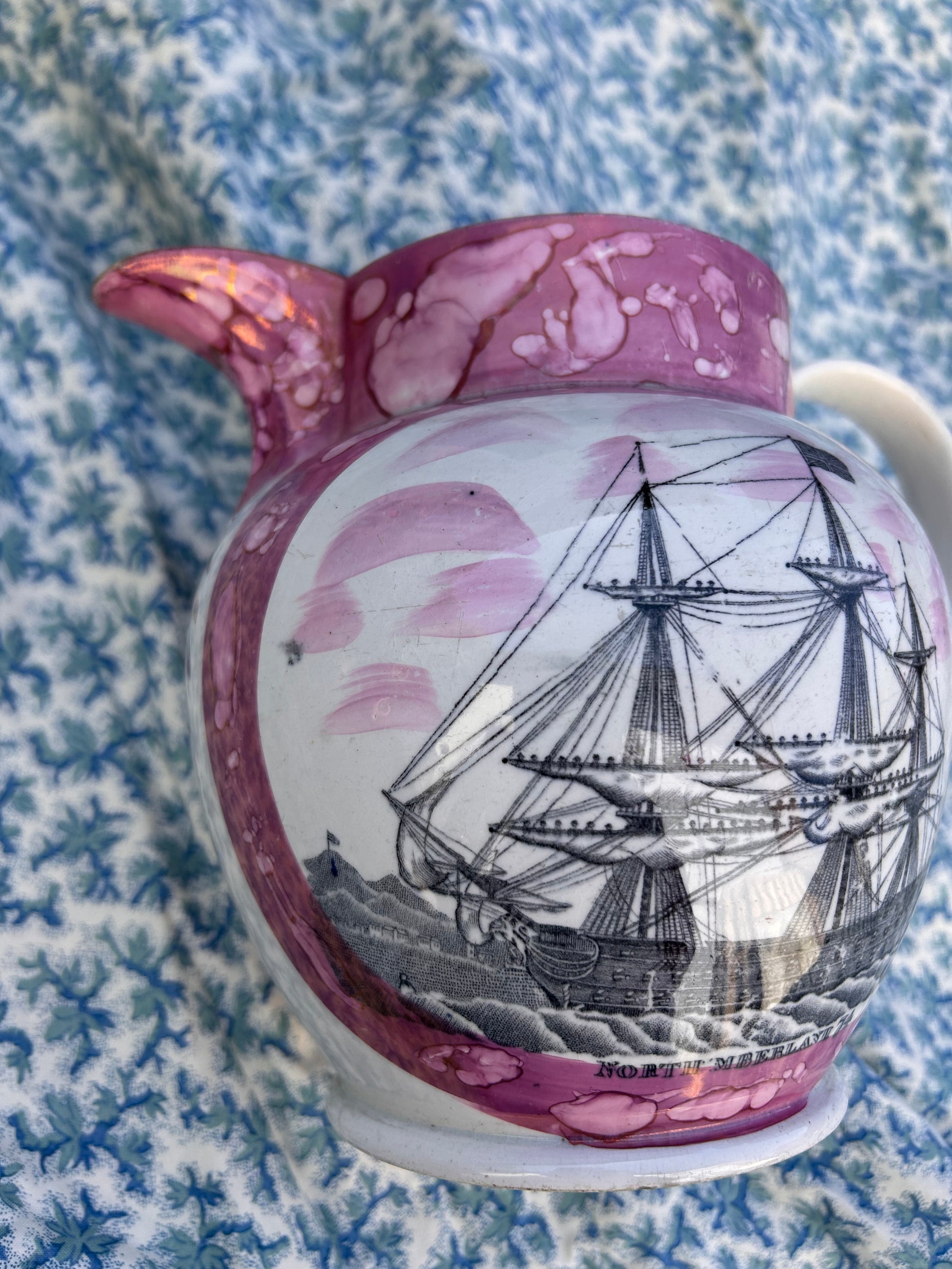 A beautiful Sunderland lustre jug. 1800’s & a poem about friendship love and truth. One chip on the spout otherwise in fabulous condition 25 cm from handle 190 to spout height is 20 cm a good big size on a kitchen dresser….
