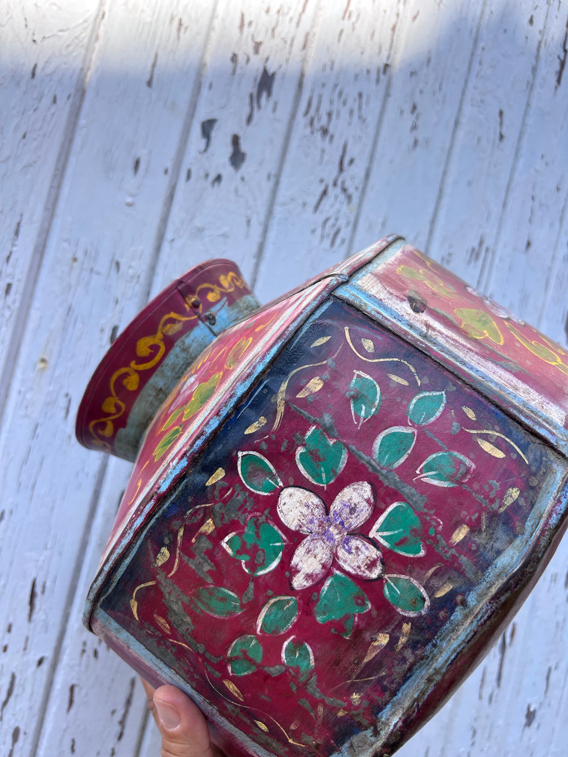 40 x 40 cm large hand painted tin pot. These look fantastic on a high shelf or decorative at the top of the dresser.