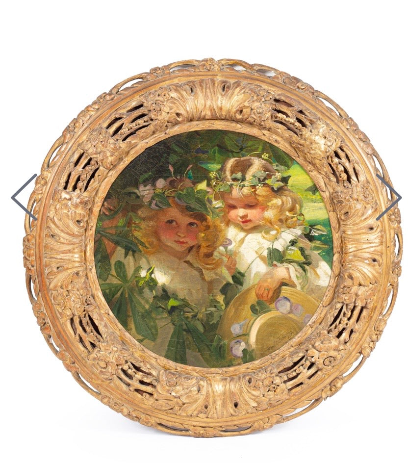 signed oil on canvas, 61cm diameterin a pierced carved frame