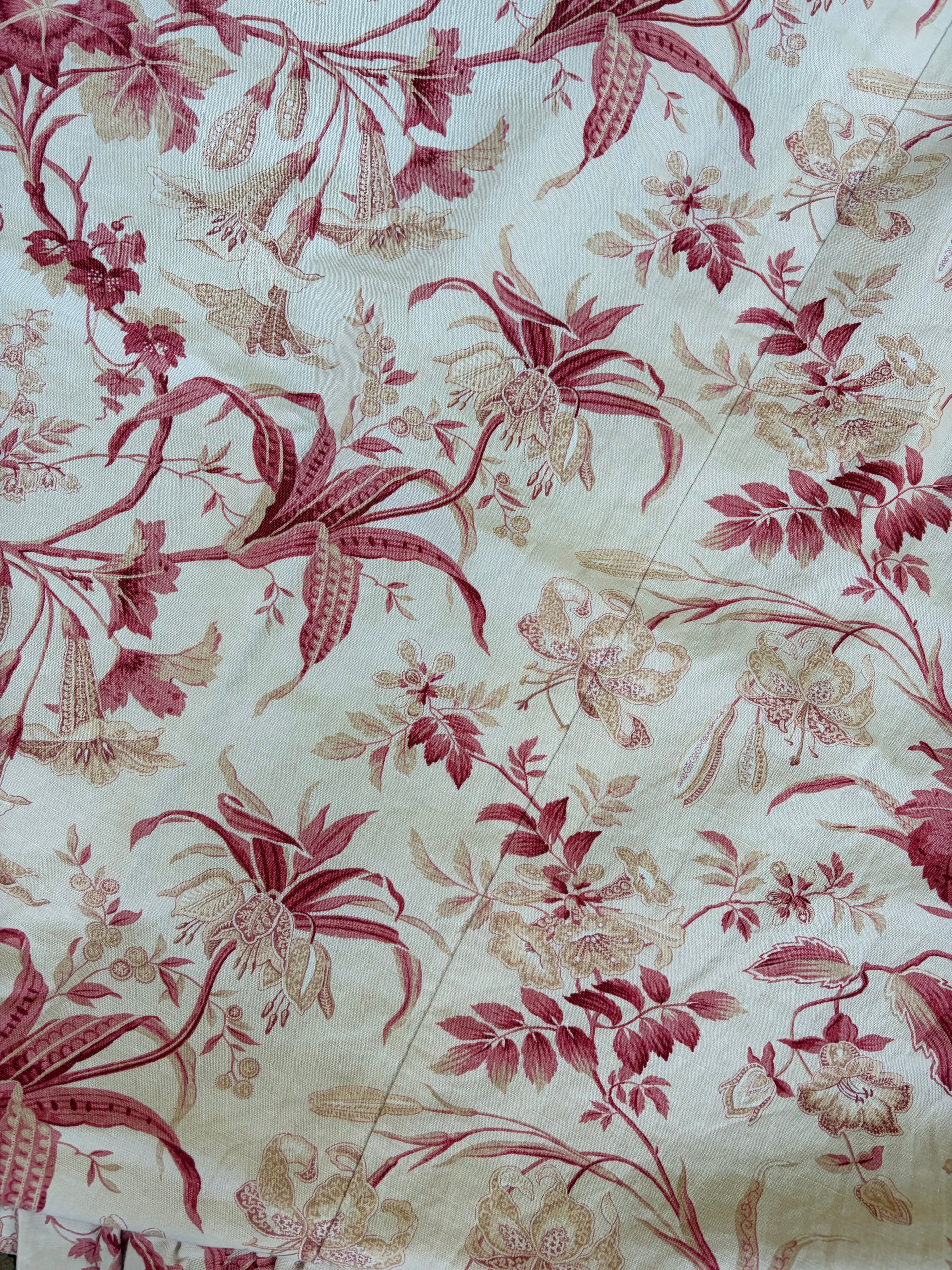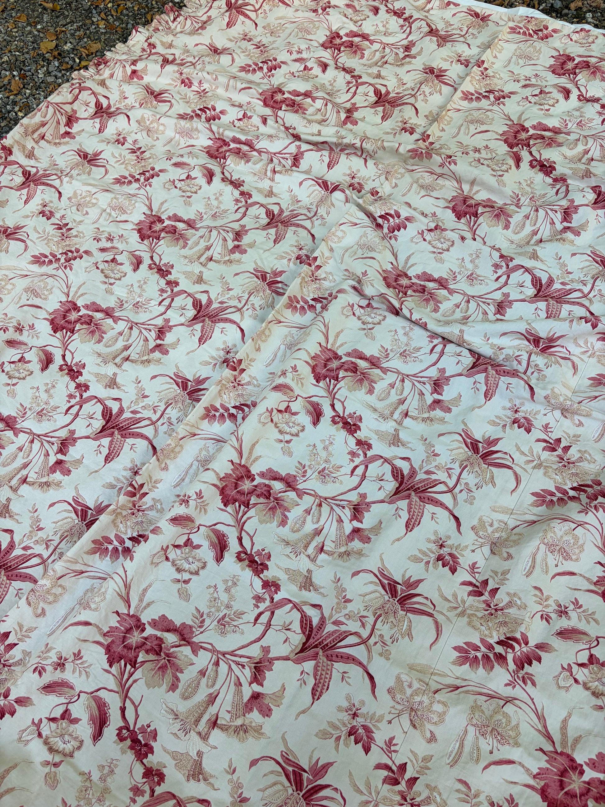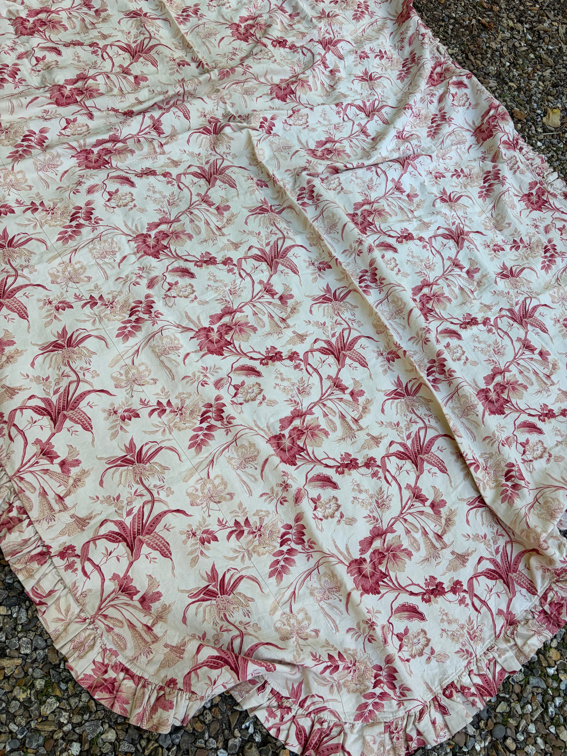 260 x 220 cm I assume this was a BED cover for a single bed because it has the frill on three sides only- But it is lined and can easily be repurposed as a tablecloth. The floral Vintage material is absolutely beautiful and the condition is perfect.