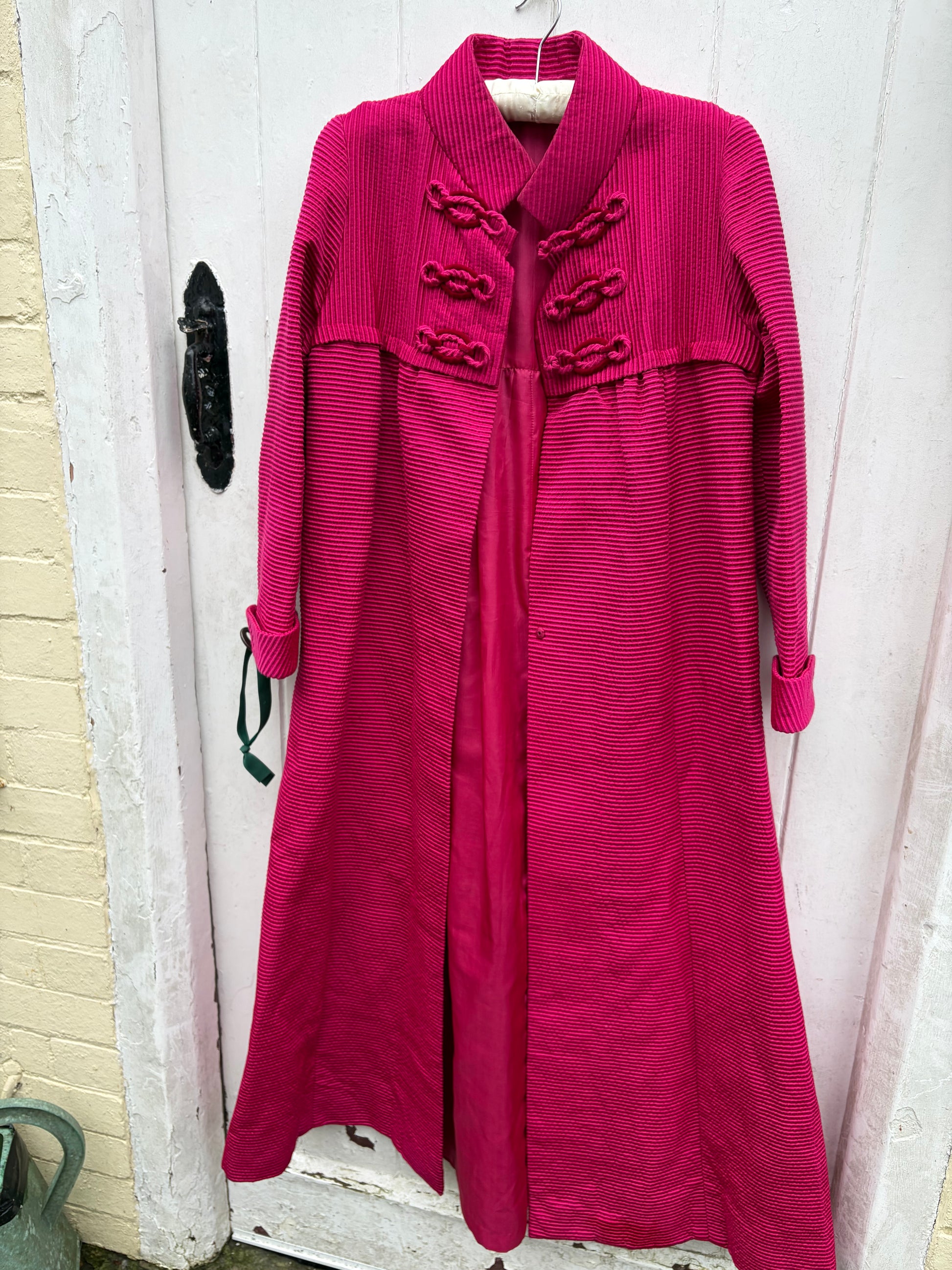 Absolutely glorious vintage silk and velvet coat. This is a size 10/12 could be worn to a wedding, It has got gold embroidery with somebody’s initials inside. A unique one off coat/dress. £85