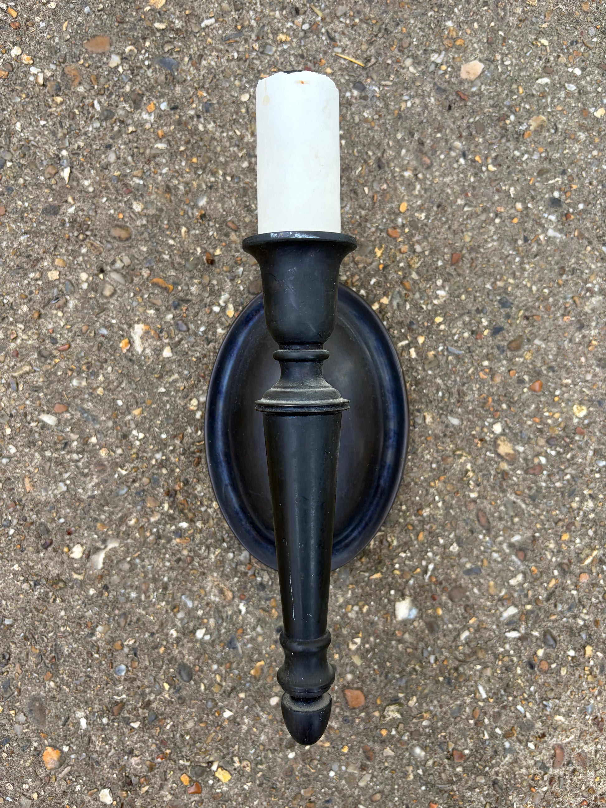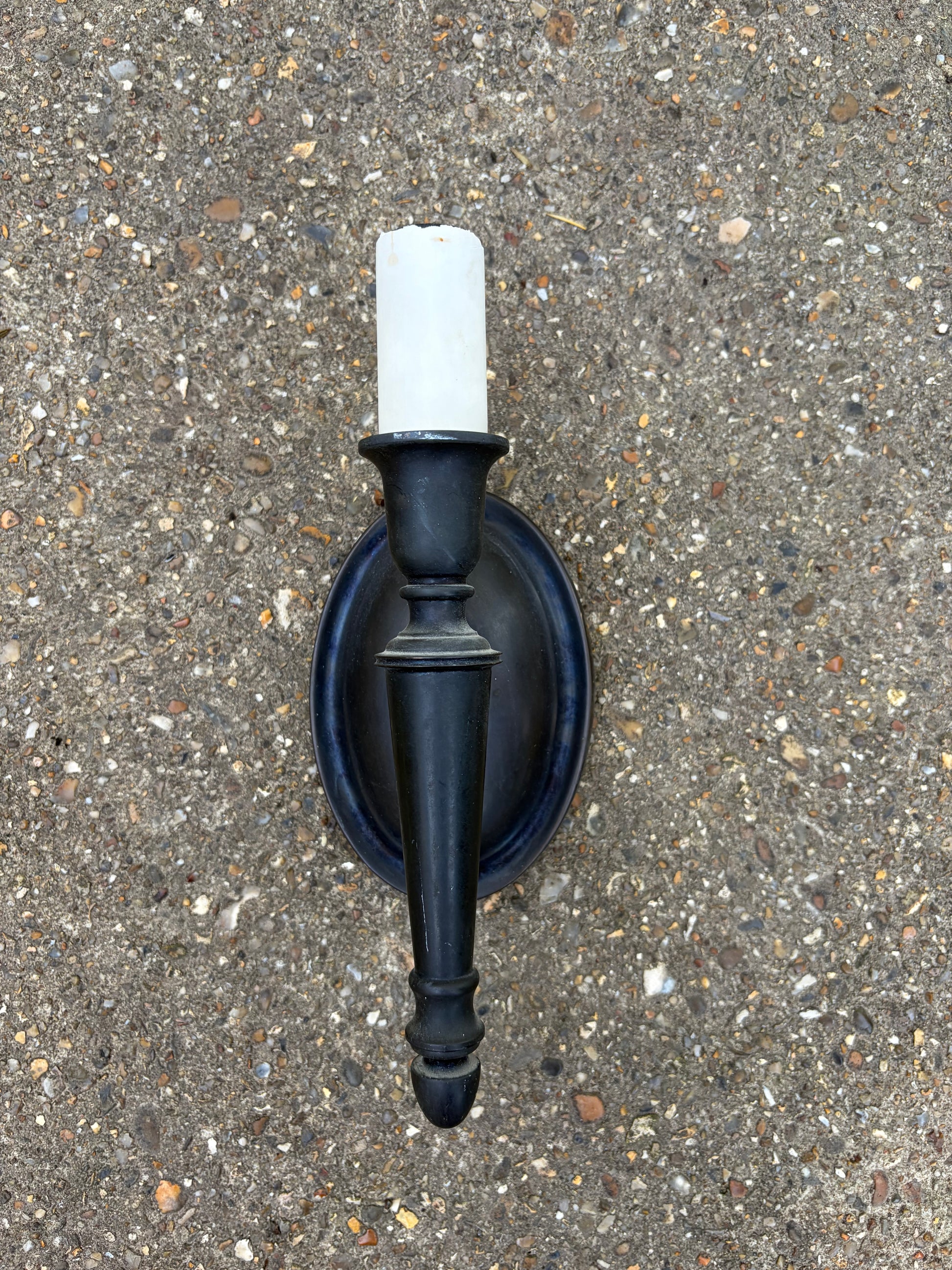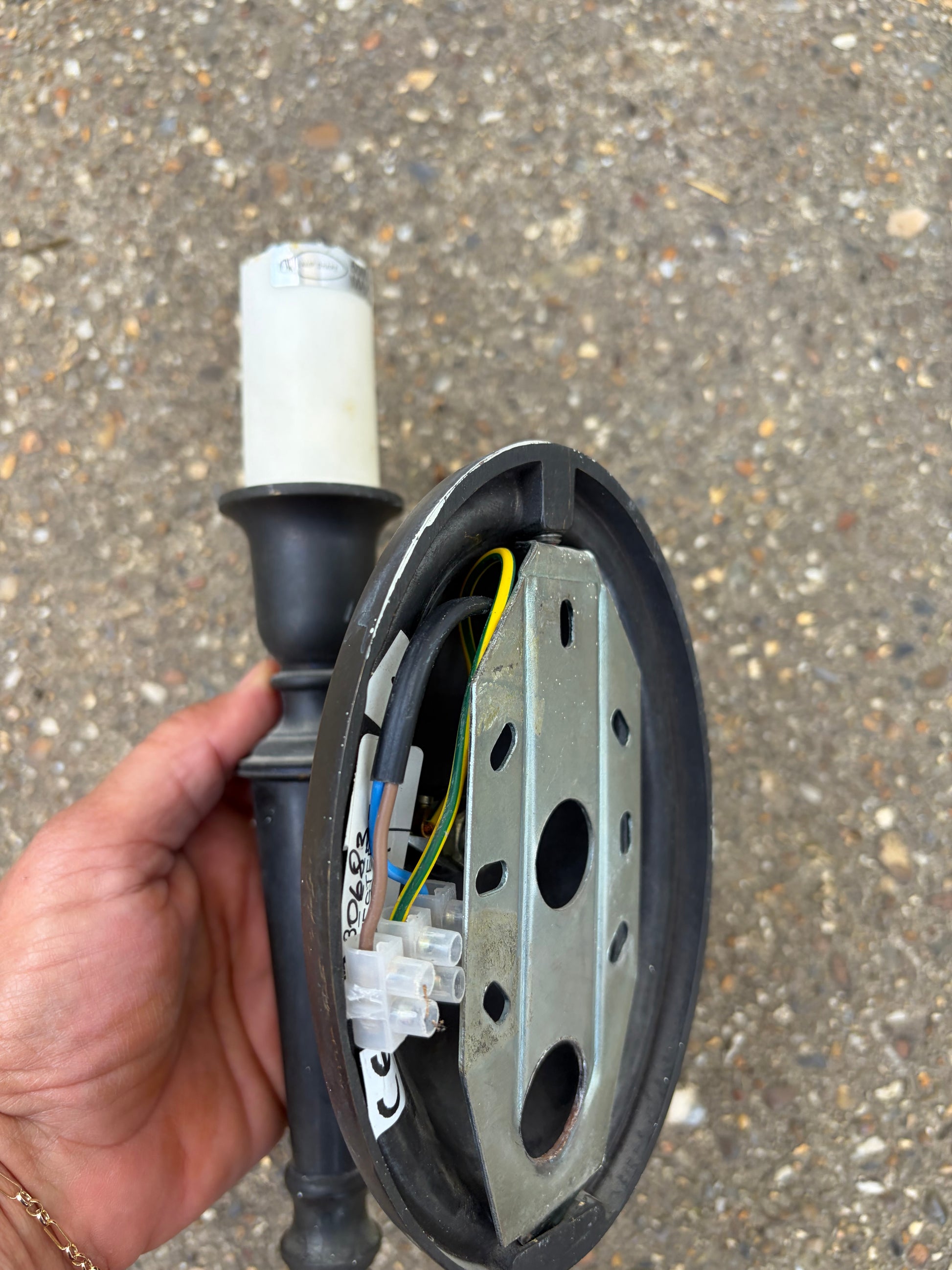 The perfect wall light for a small downstairs bathroom a single wall light with an oval back plate. This measures 26 cm in height 10 cm projection from the wall and the width of the oval black plate is 13 cm.