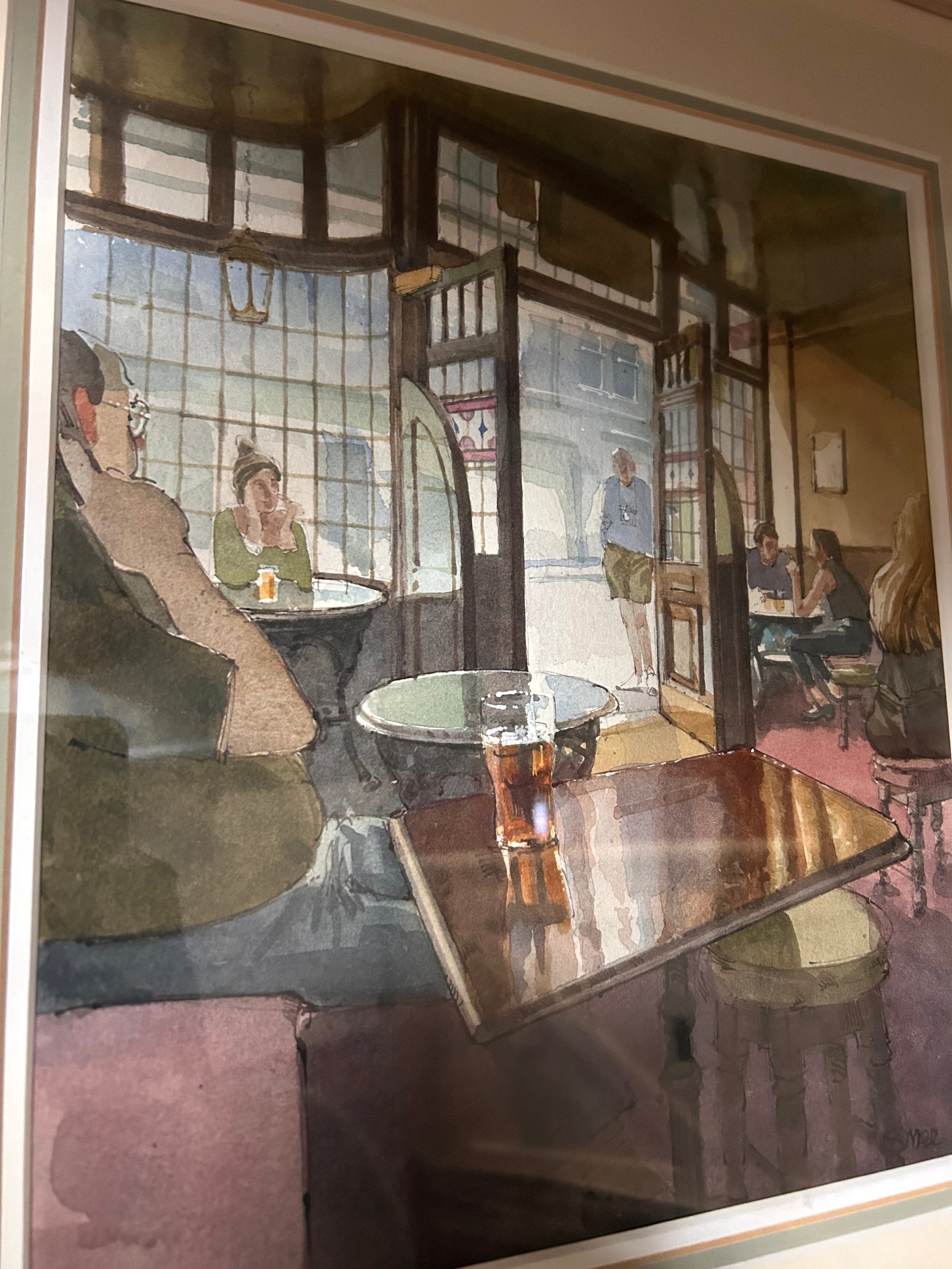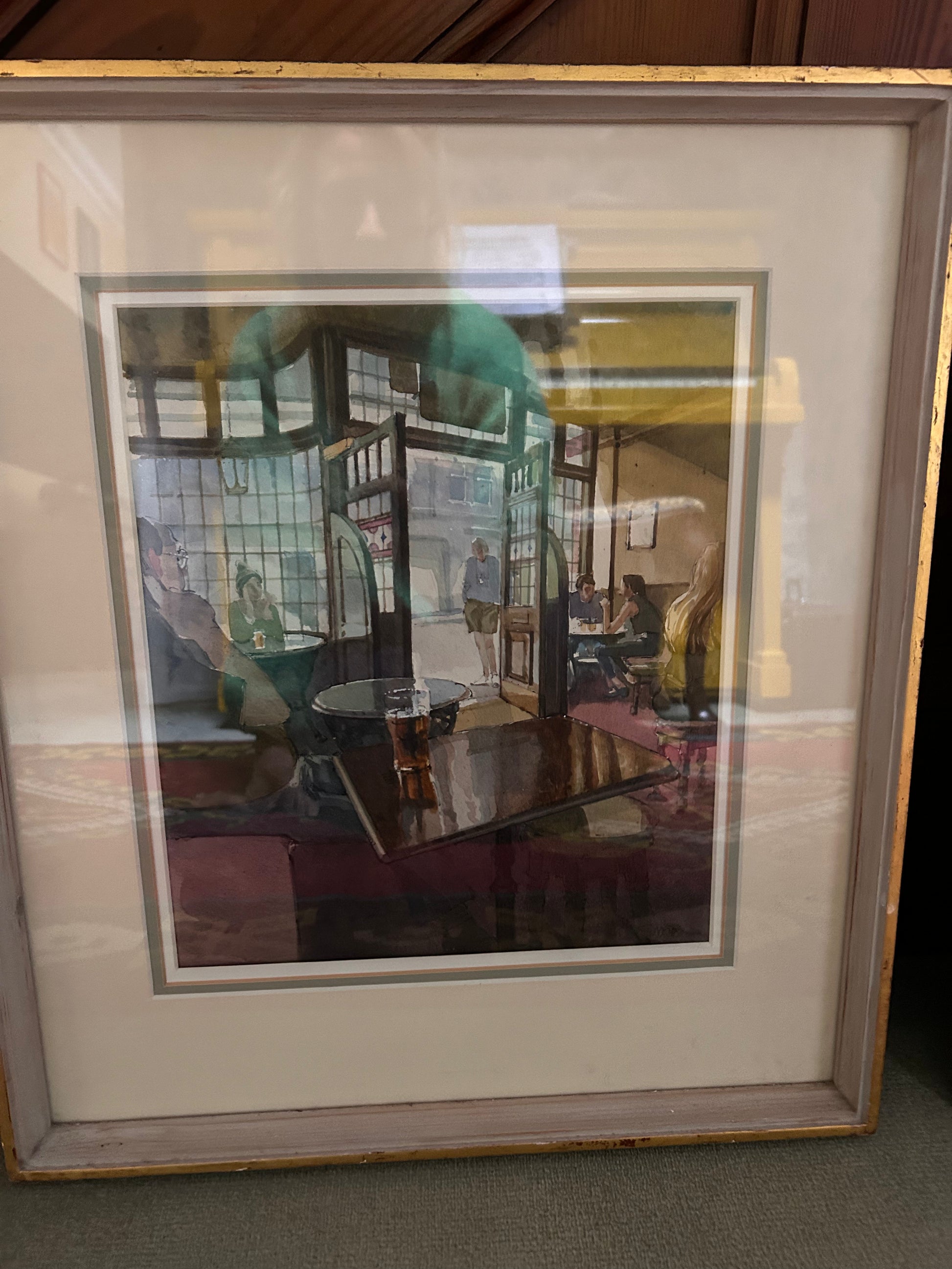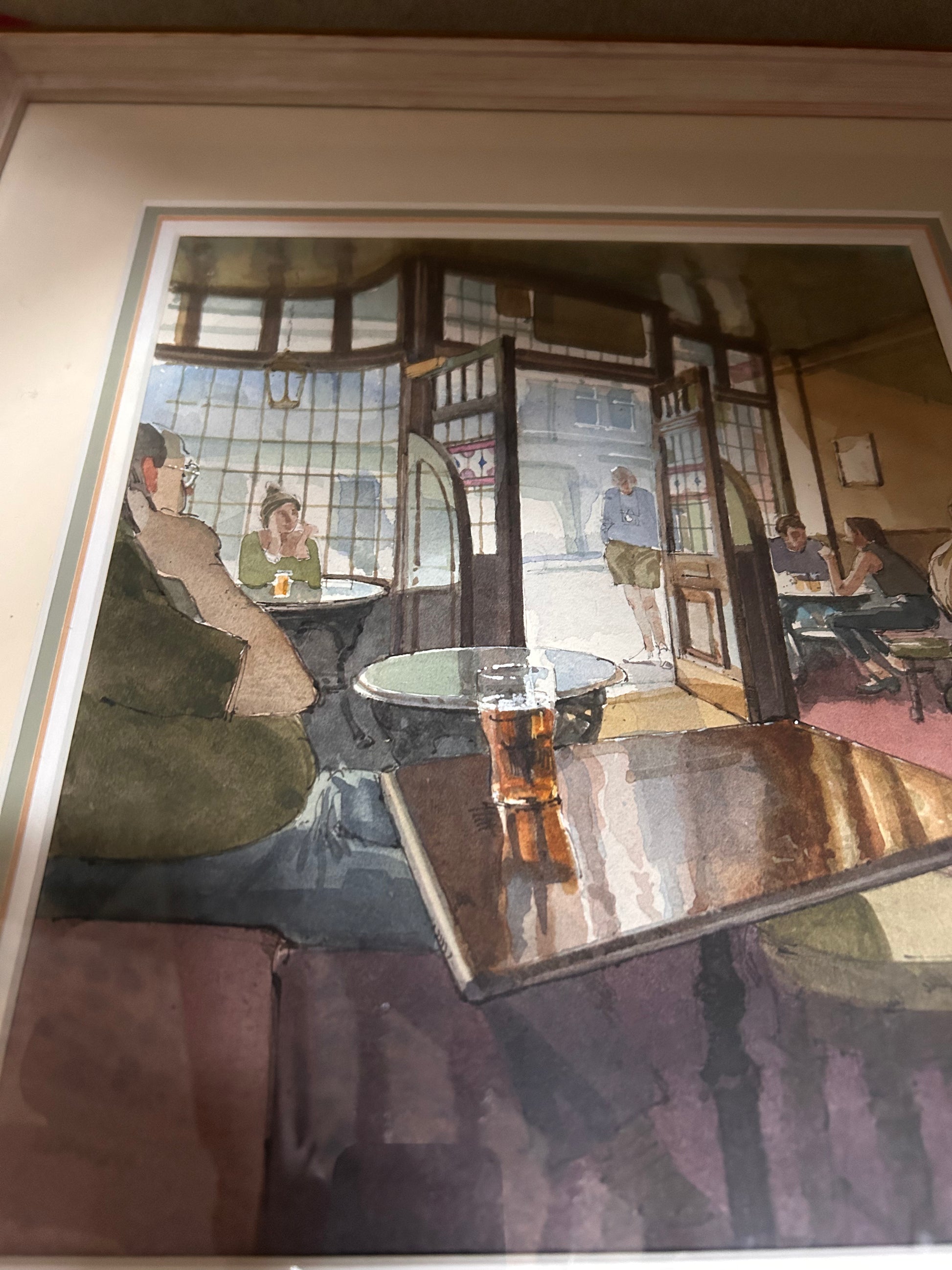 65 x 40cm watercolour in a beautiful frame. Interior of a pub.is it your local?! 🍺