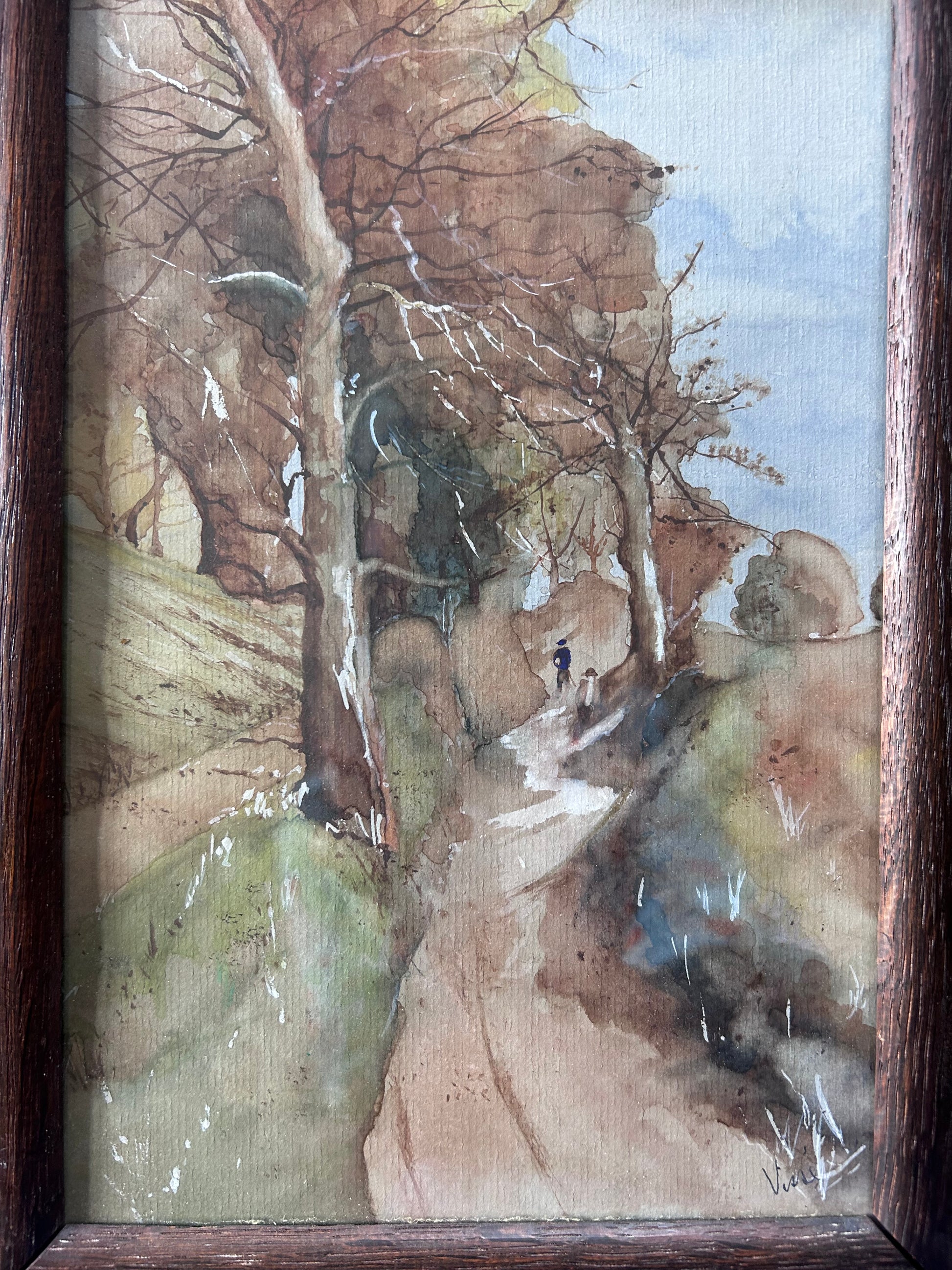 36 x 27 cm autumnal landscape. watercolour in muted colours