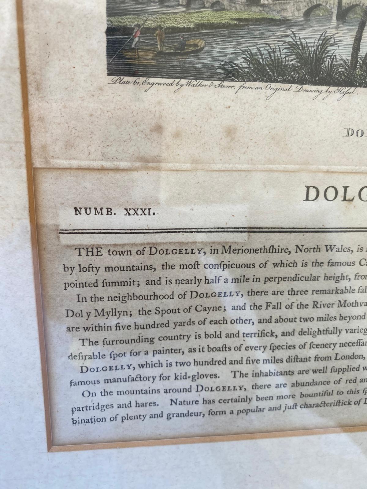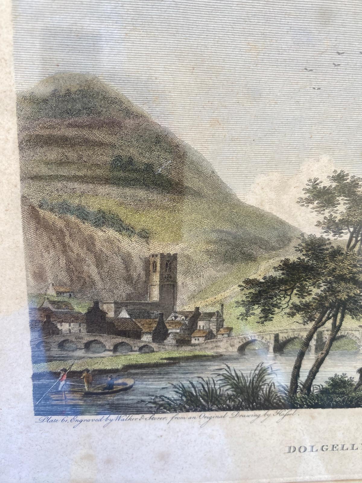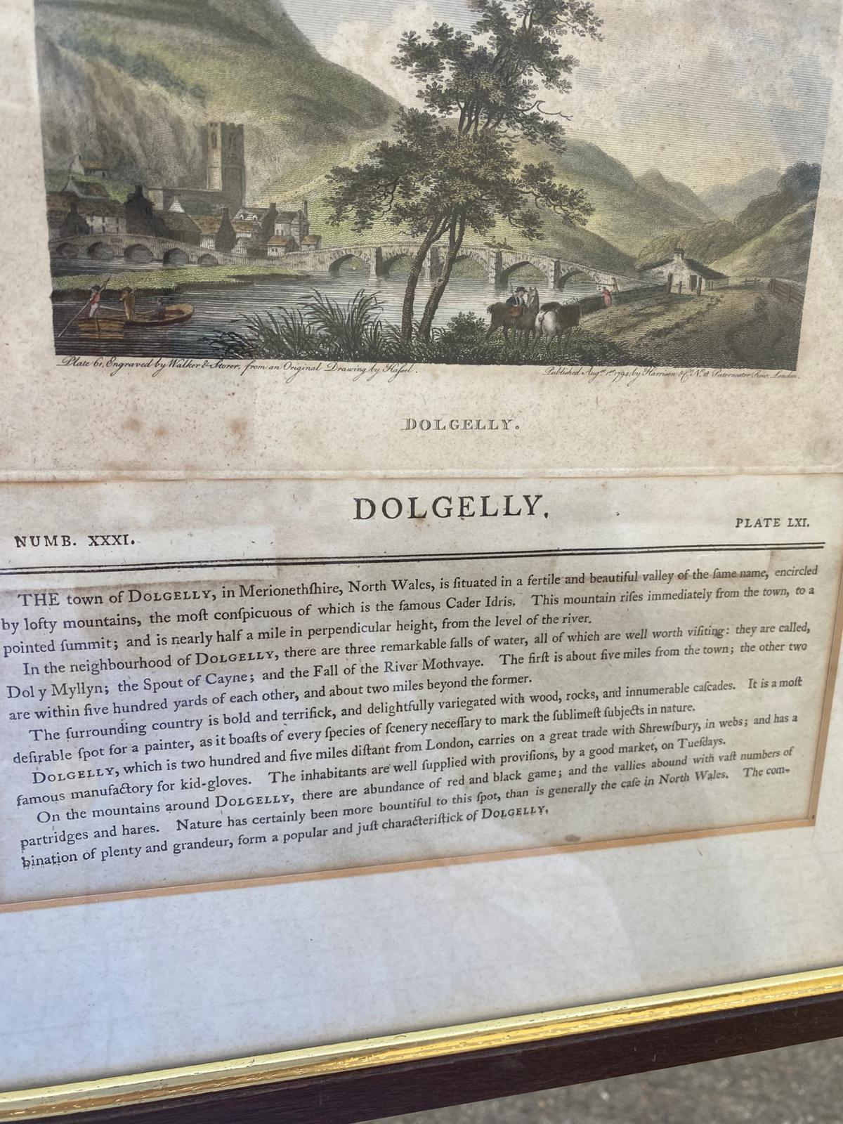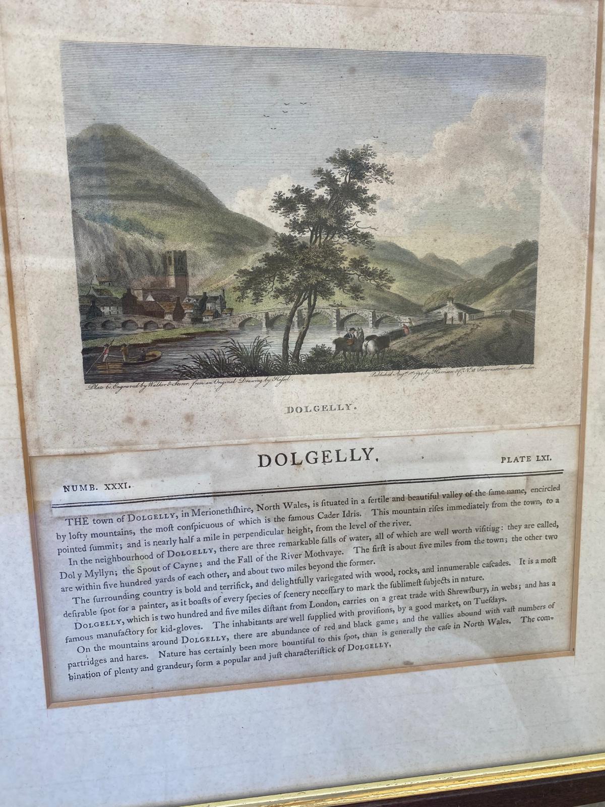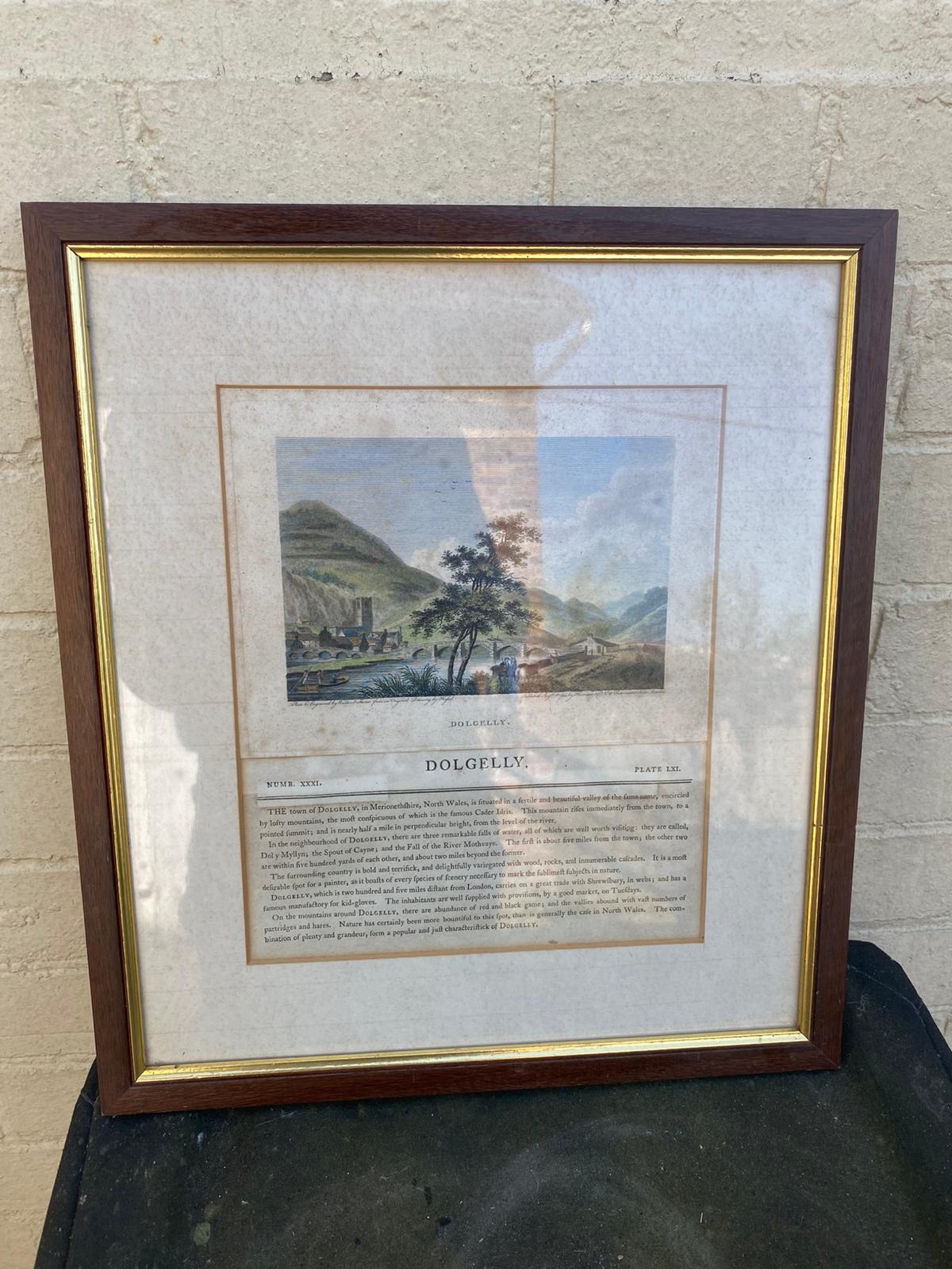An antique book illustrating and describing the Welsh town of Dolgelly. 35 x 40cm print in a frame